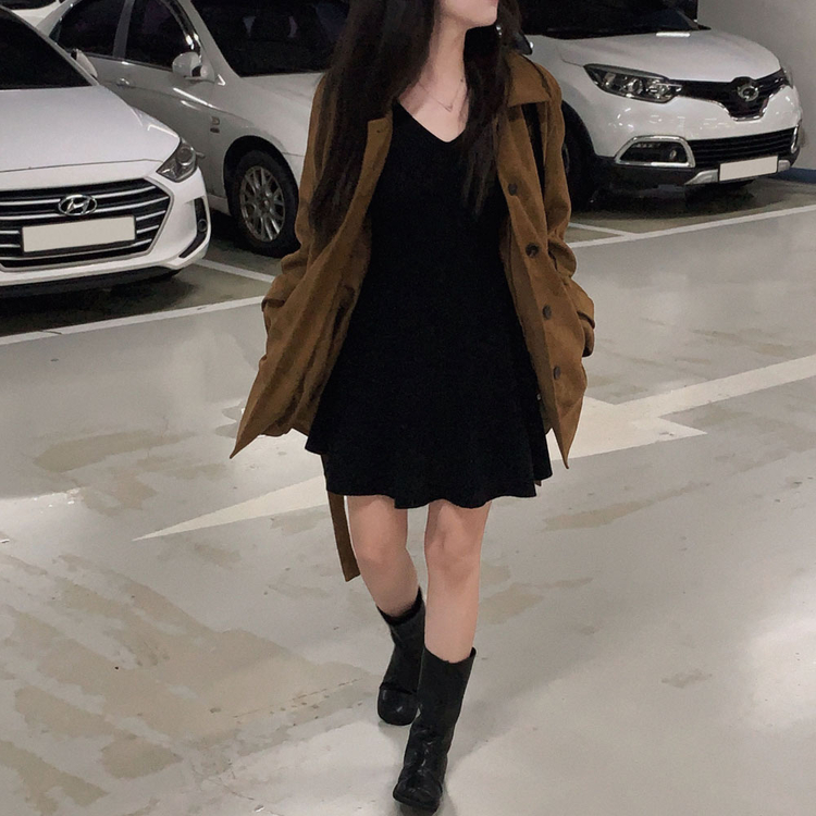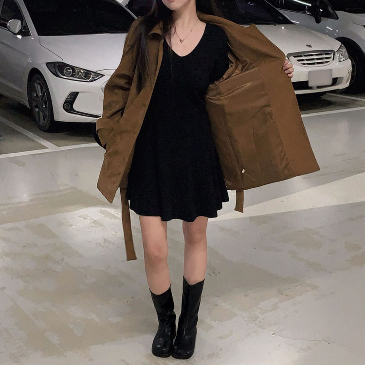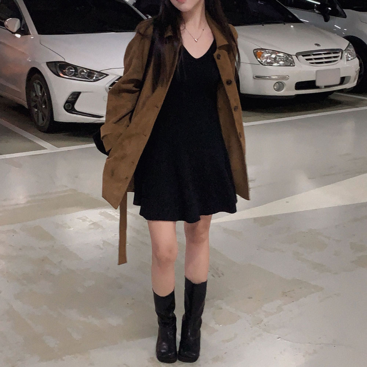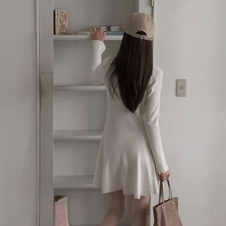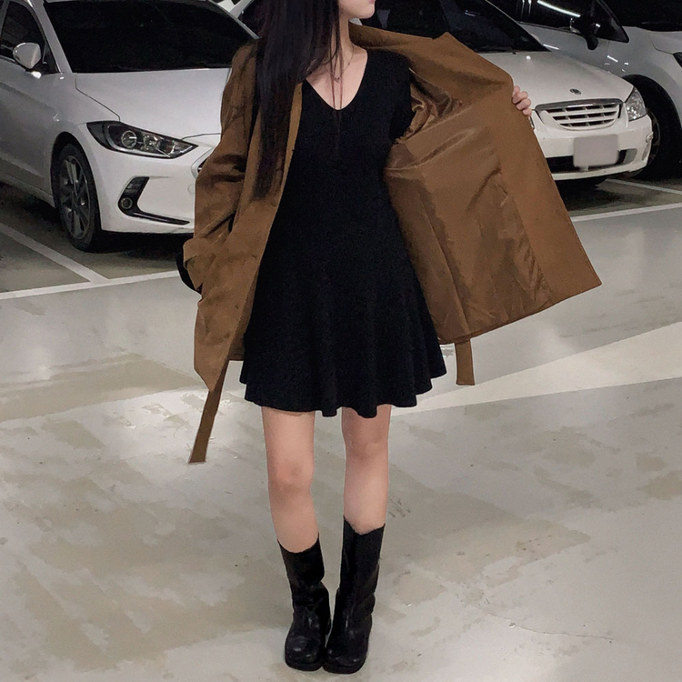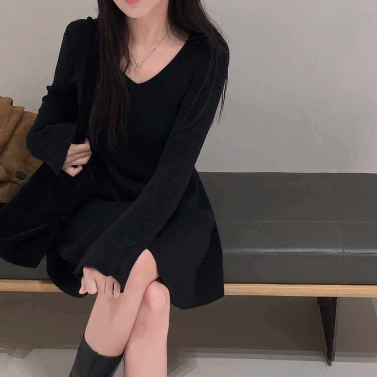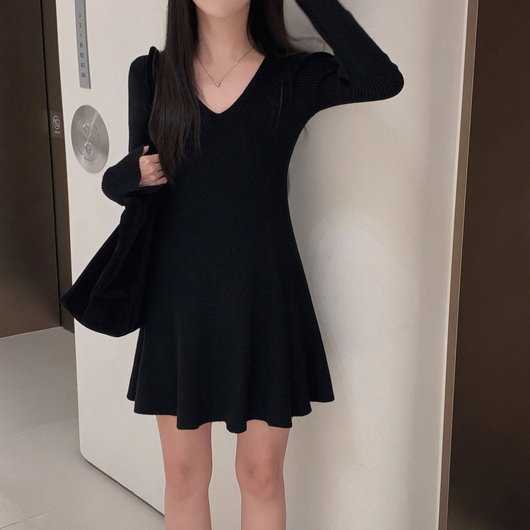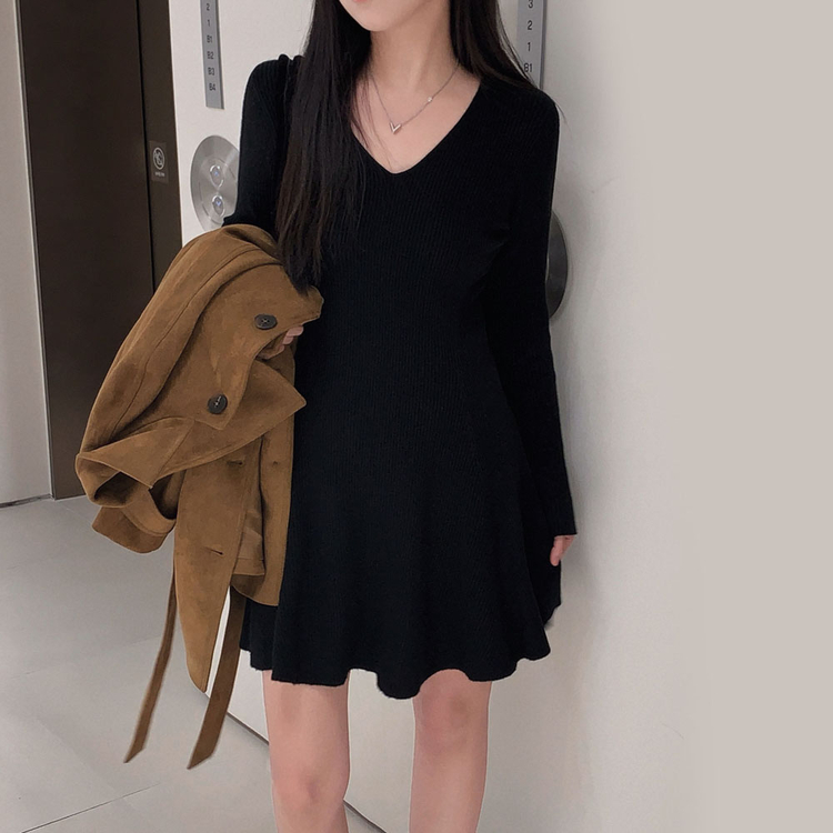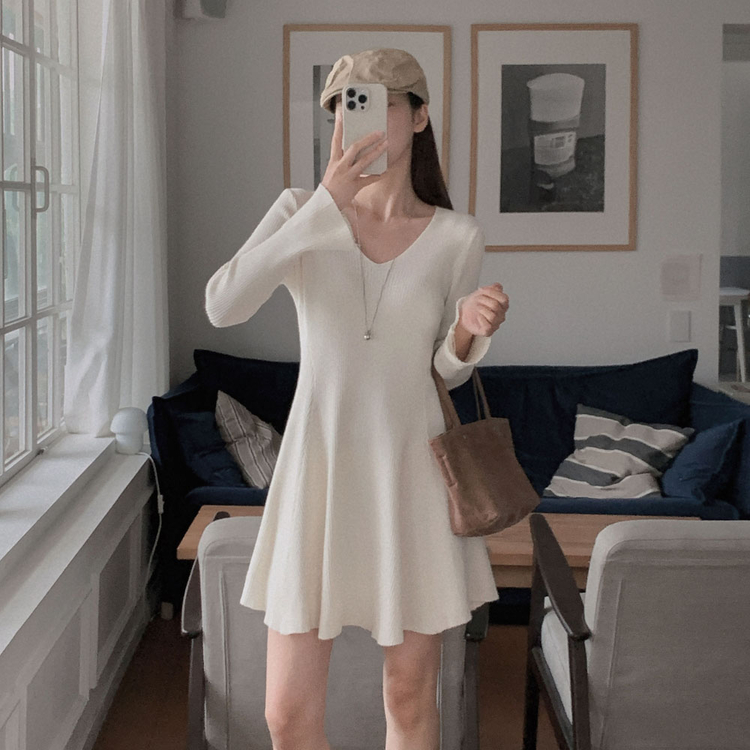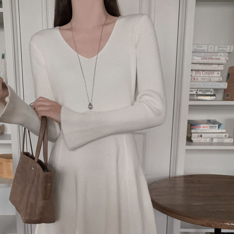 SOP30254 스위트 골지 브이넥 플레어 미디 원피스