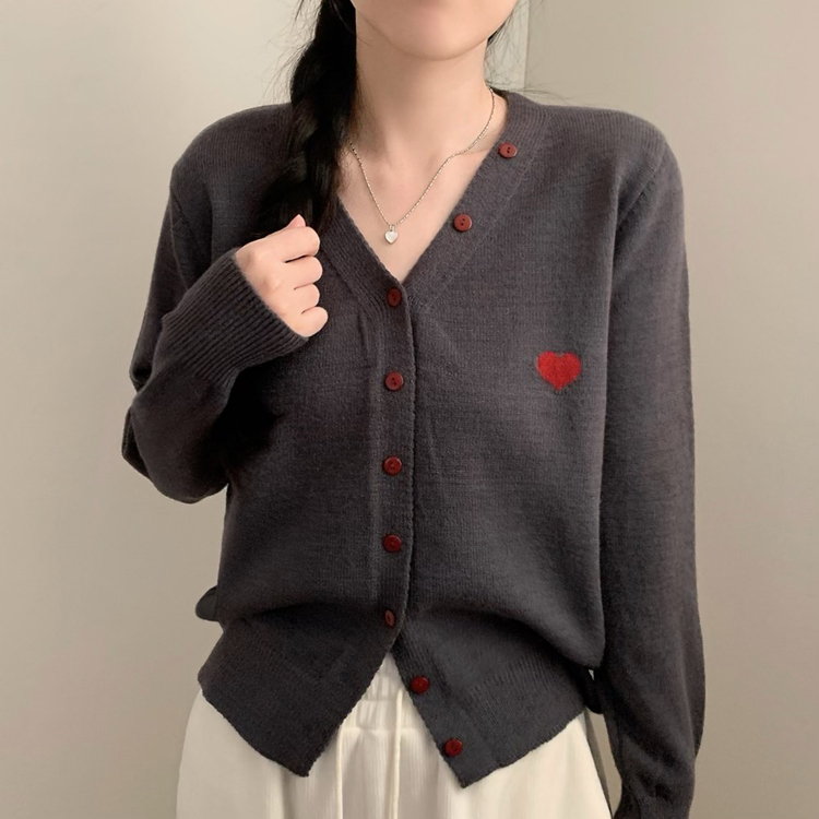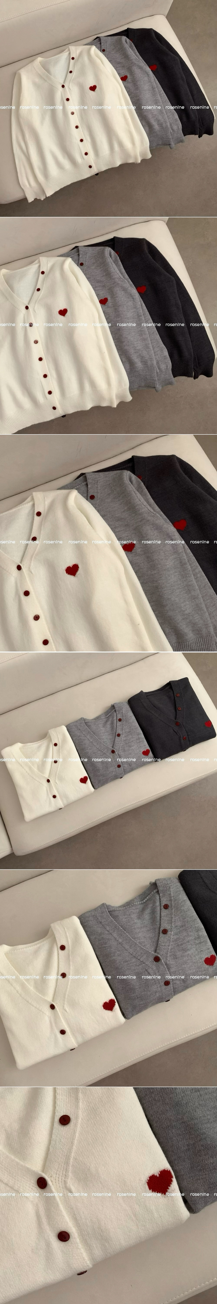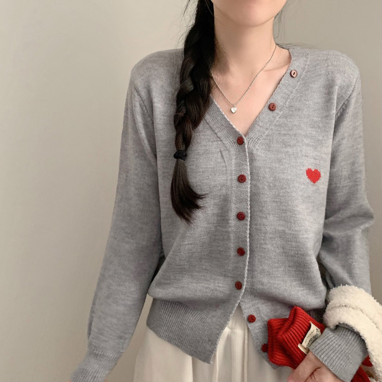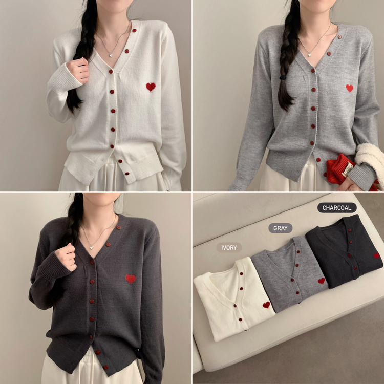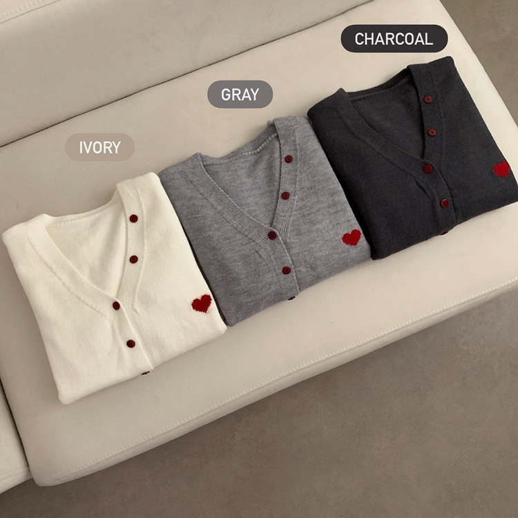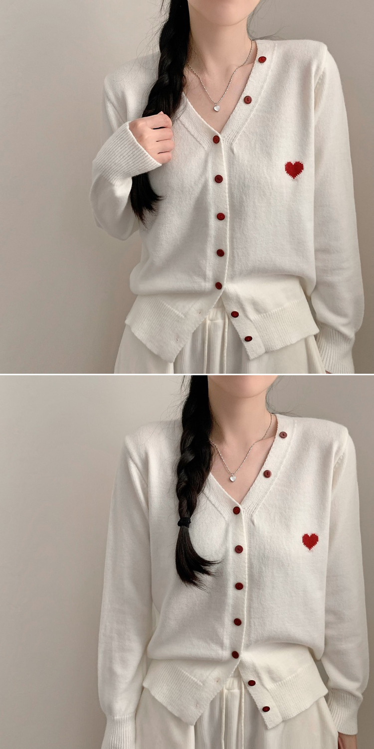 SGD29187 레드 하트 포인트 긴팔 브이넥 니트 가디건