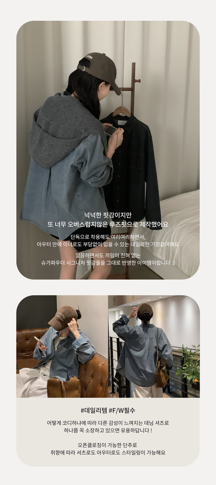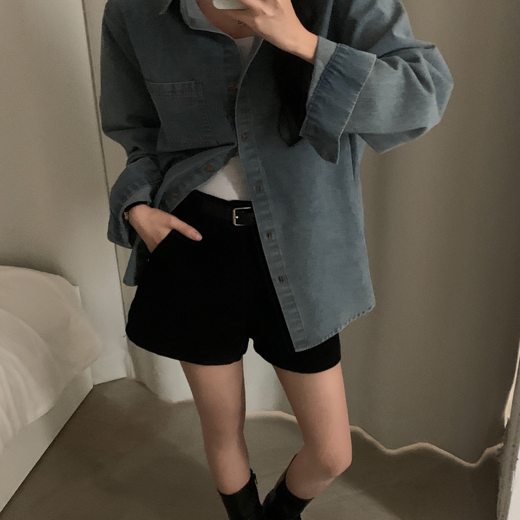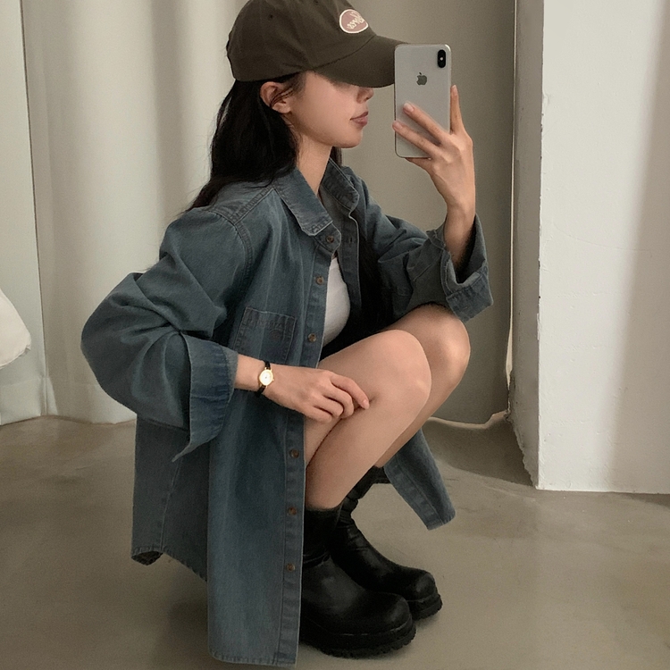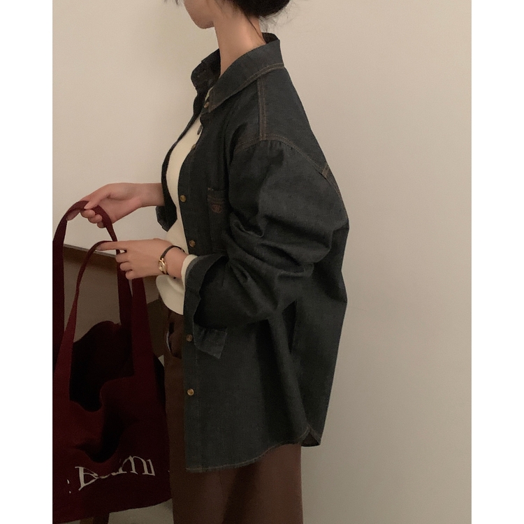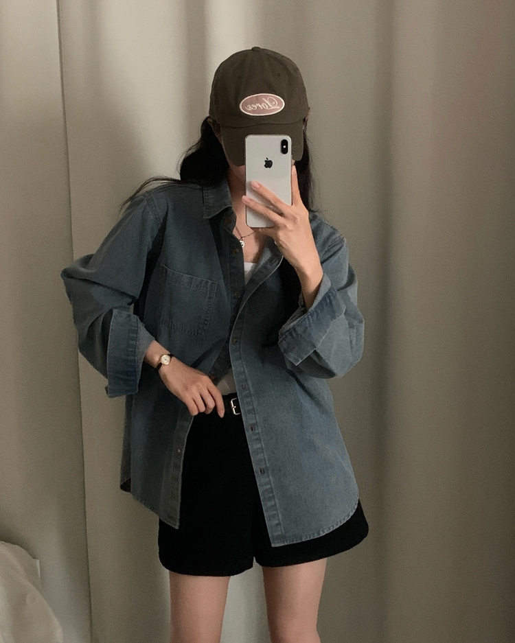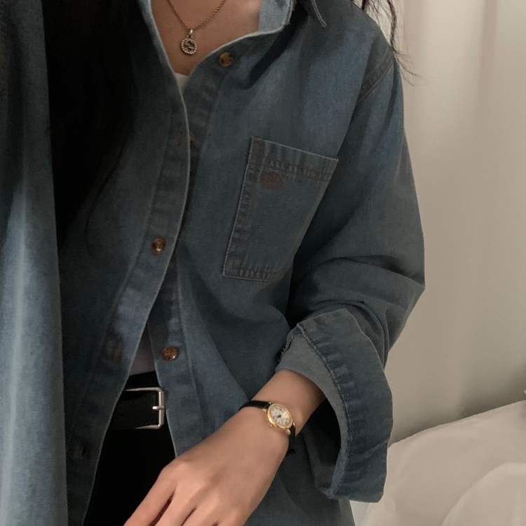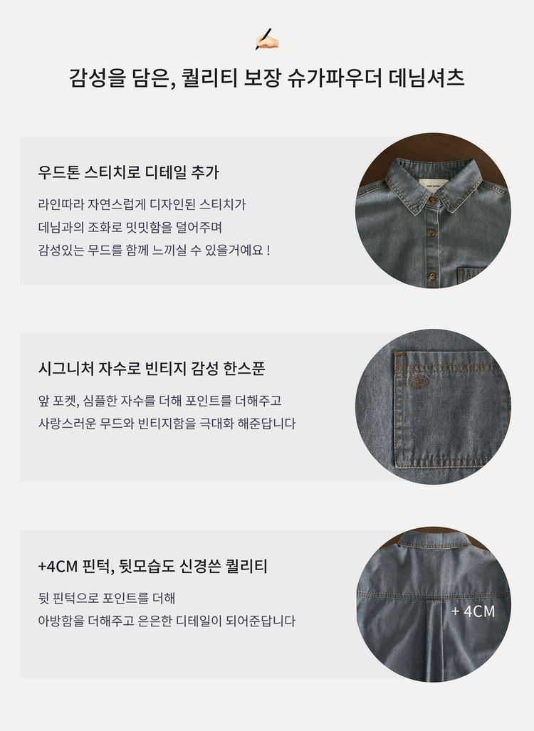 SBS30105 Made 소호 빈티지 자수 포켓 데님 카라셔츠 청남방
