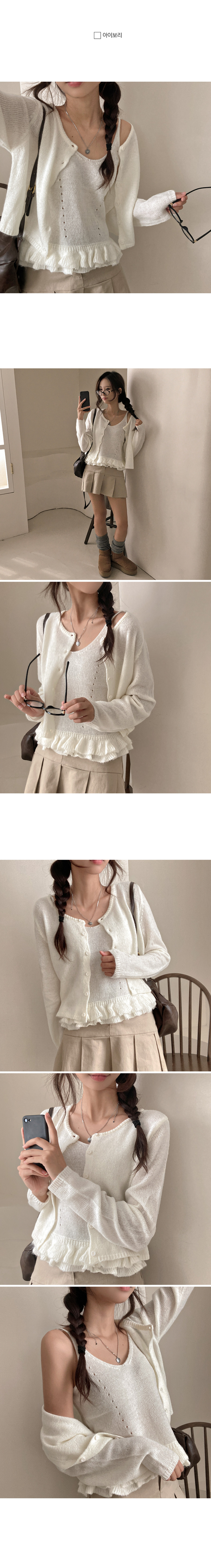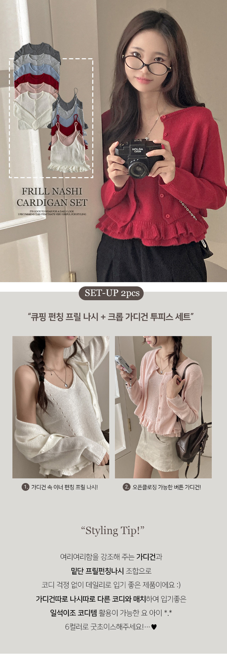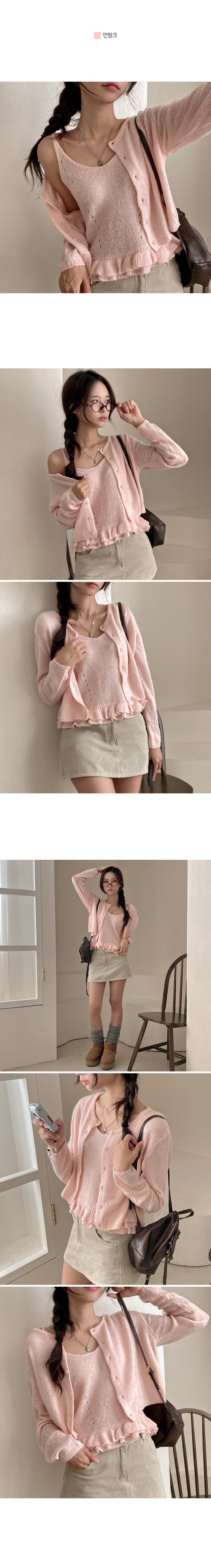 SGD29252 큐핑 펀칭 프릴 나시 크롭 가디건 투피스 세트