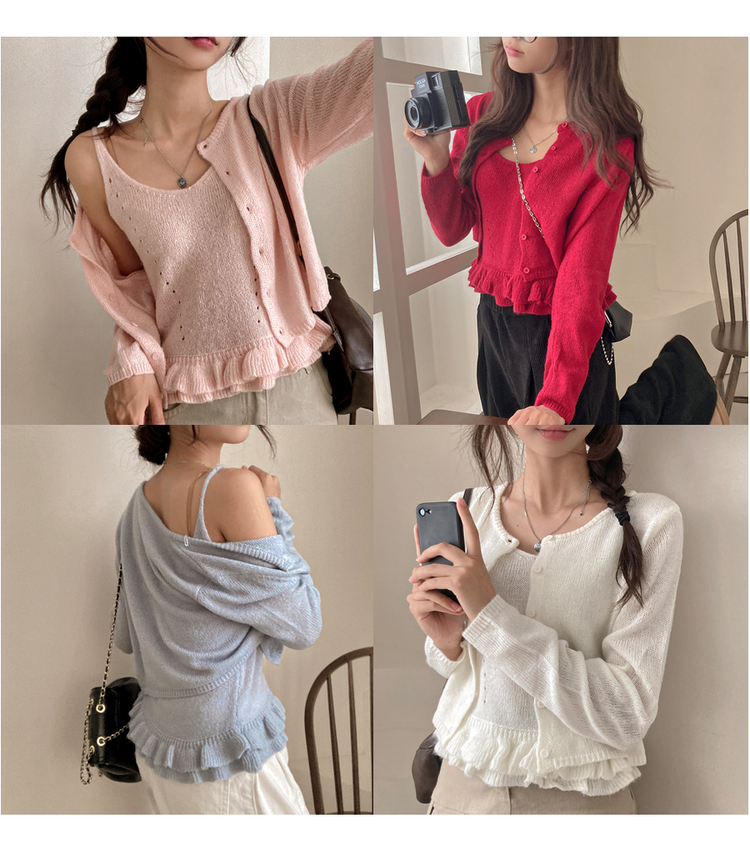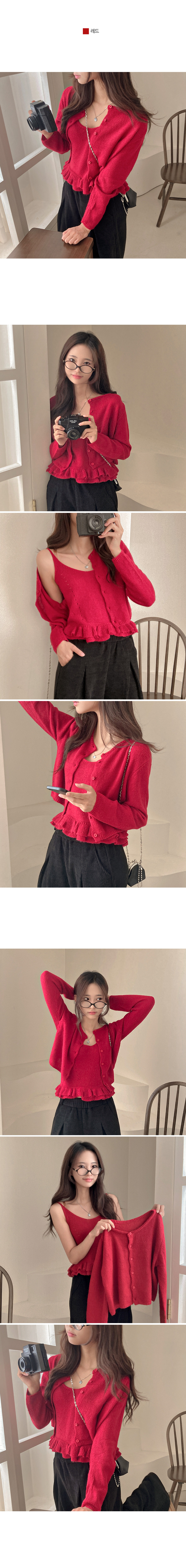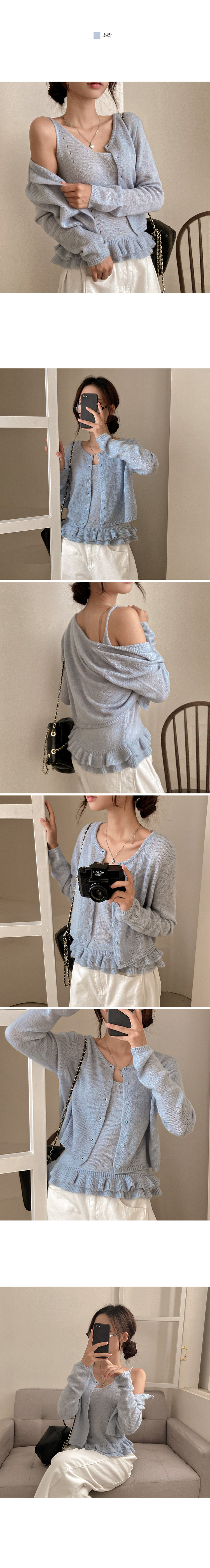 SGD29252 큐핑 펀칭 프릴 나시 크롭 가디건 투피스 세트