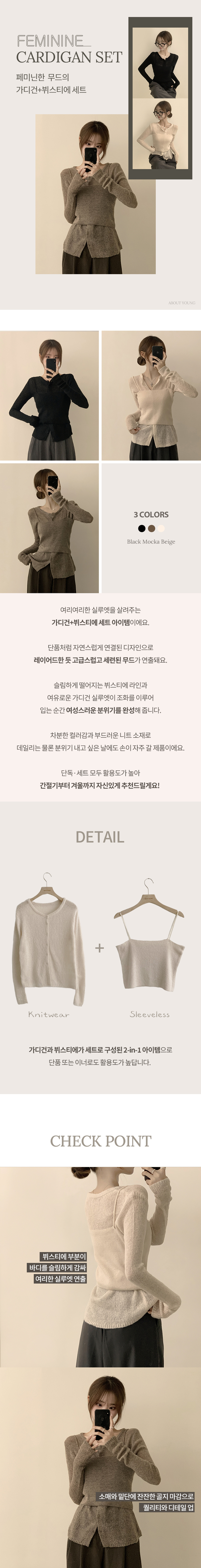 SNT32627 퀄리티 보장하는 포근 라운드 가을 버튼 뷔스티에 가디건 세트 탑세트 슬림핏 긴팔 레이어트 울 니트 상의 아우터 하객룩
