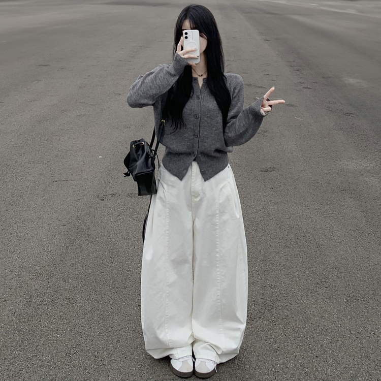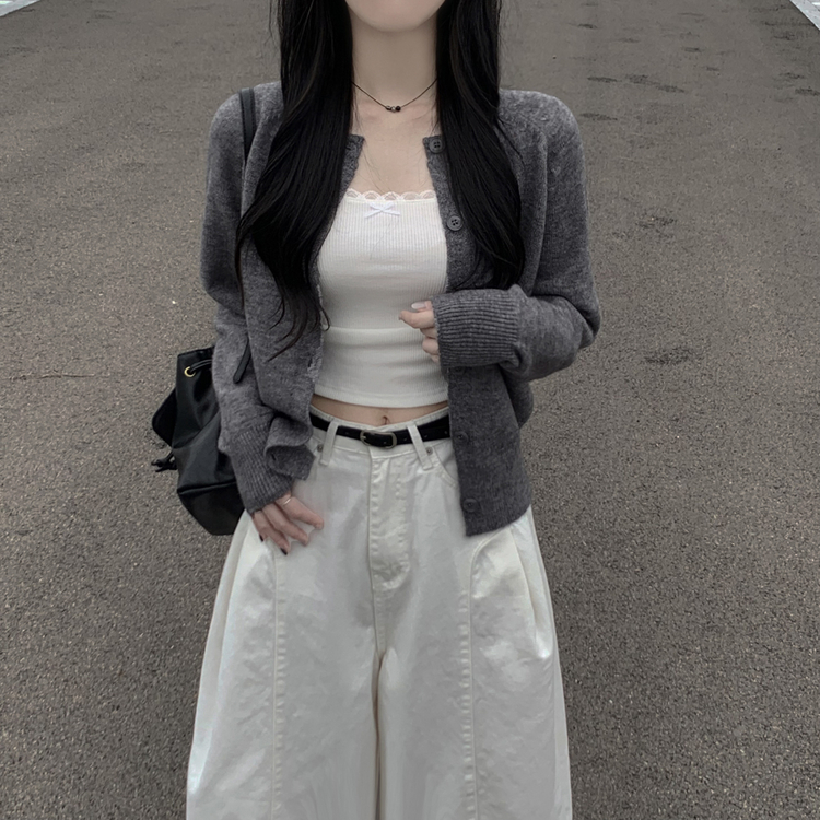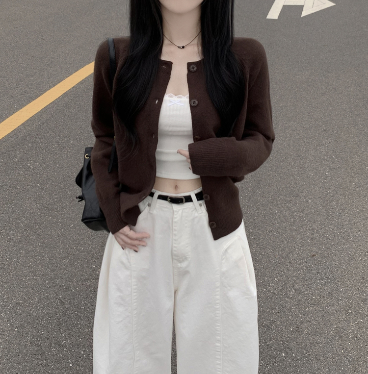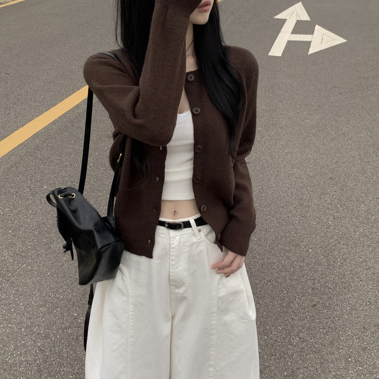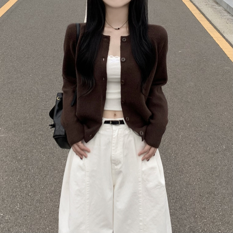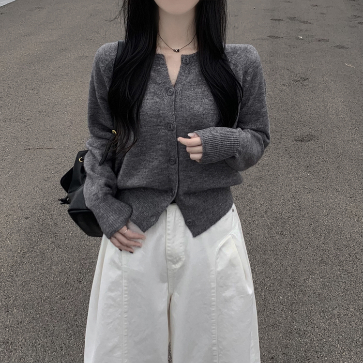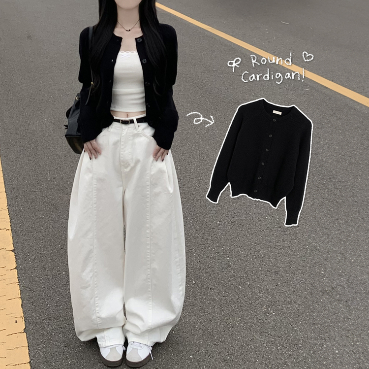 SGD29293 라운드 세미크롭 가을 겨울 니트가디건 빅사이즈