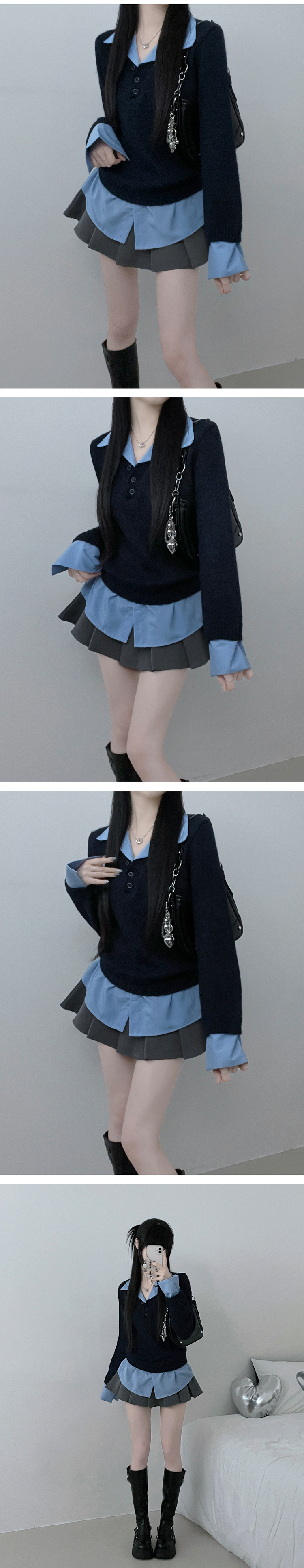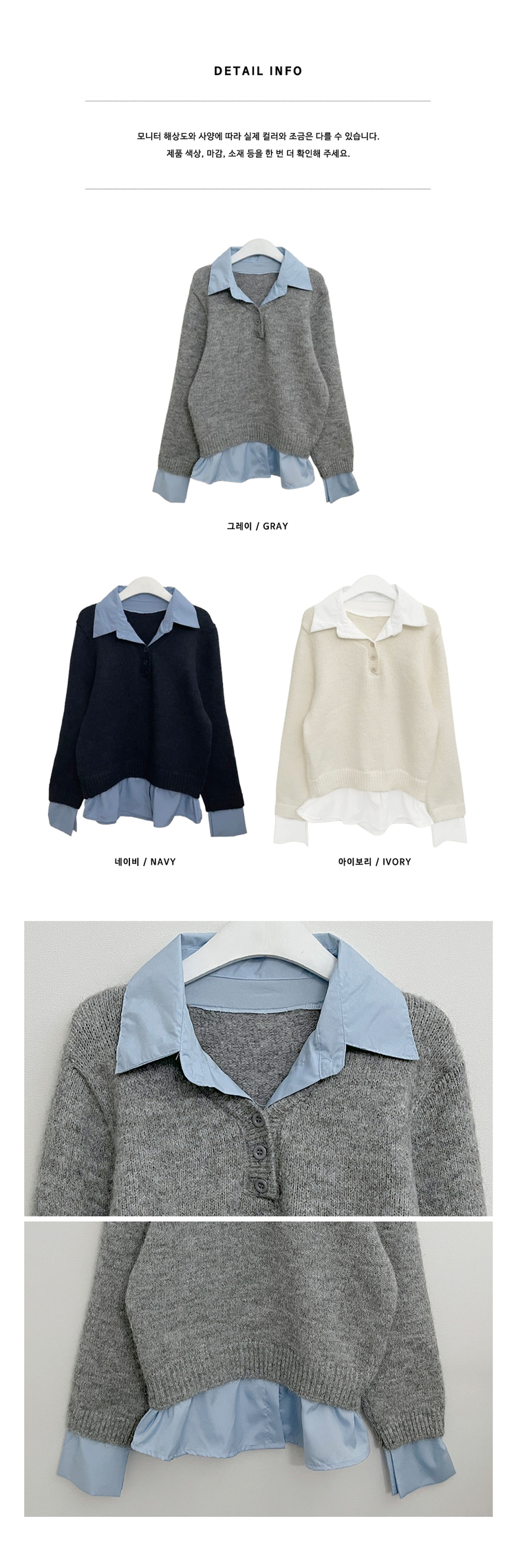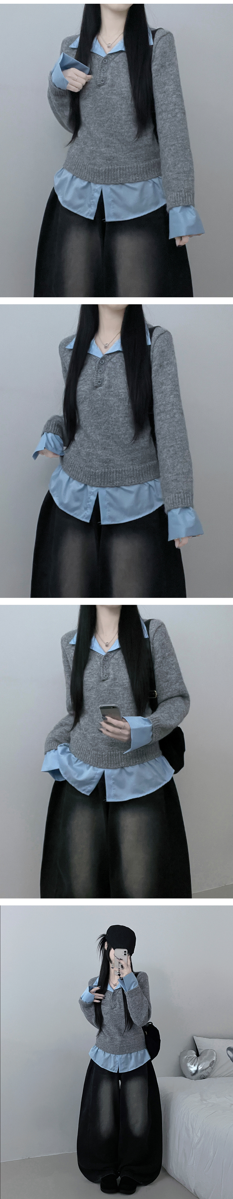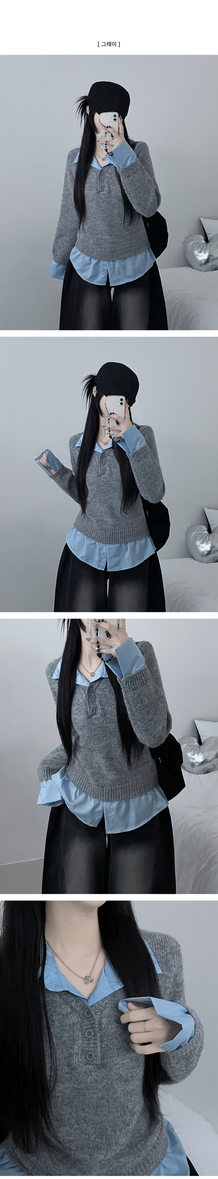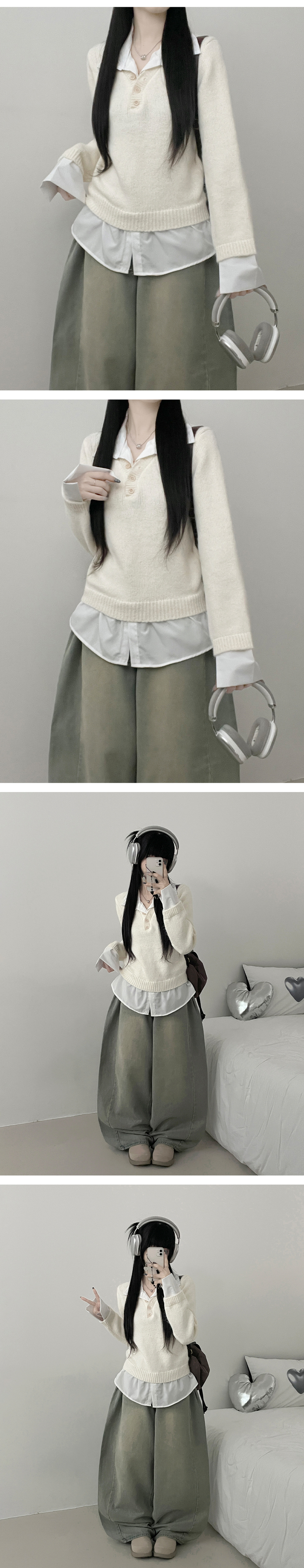 SNT32690 러프브이넥단추셔츠카라레이어드루즈핏니트