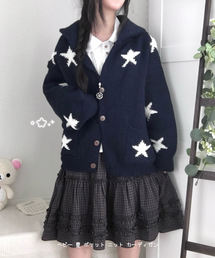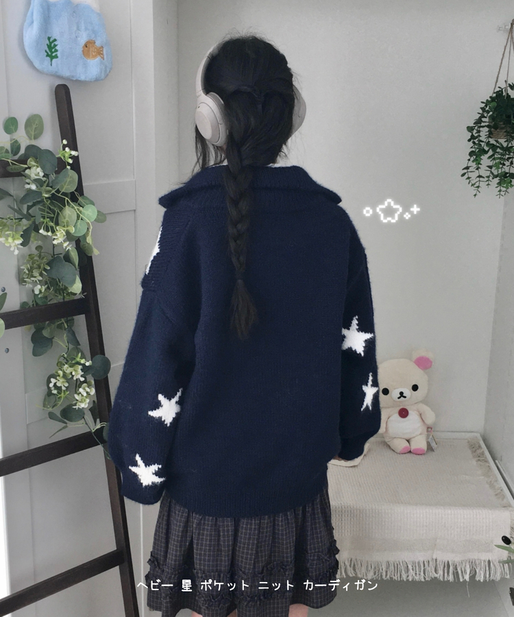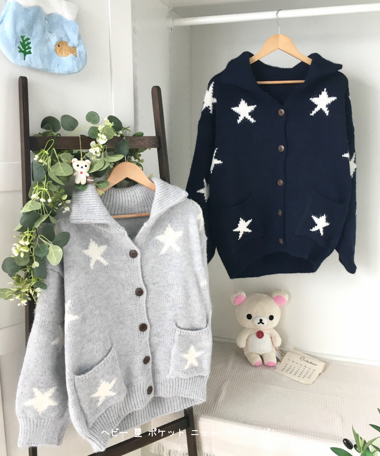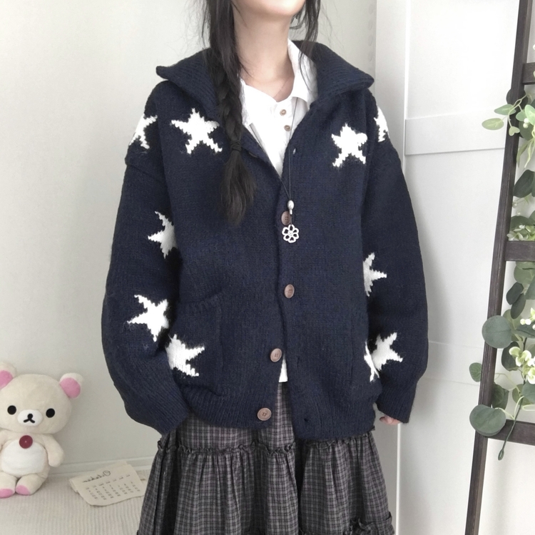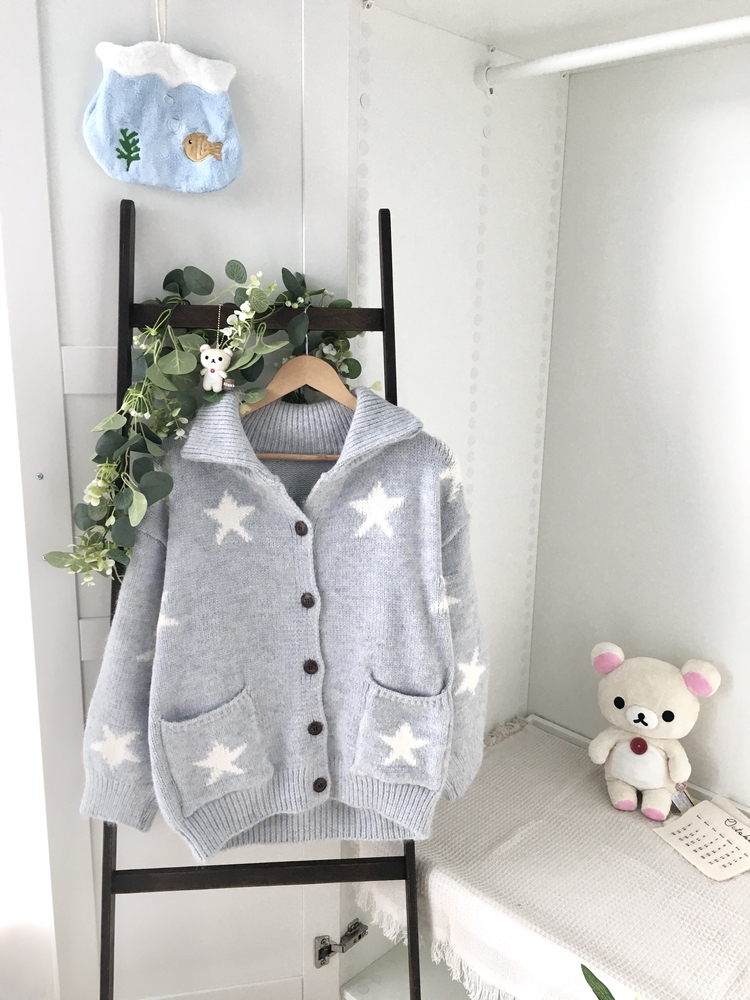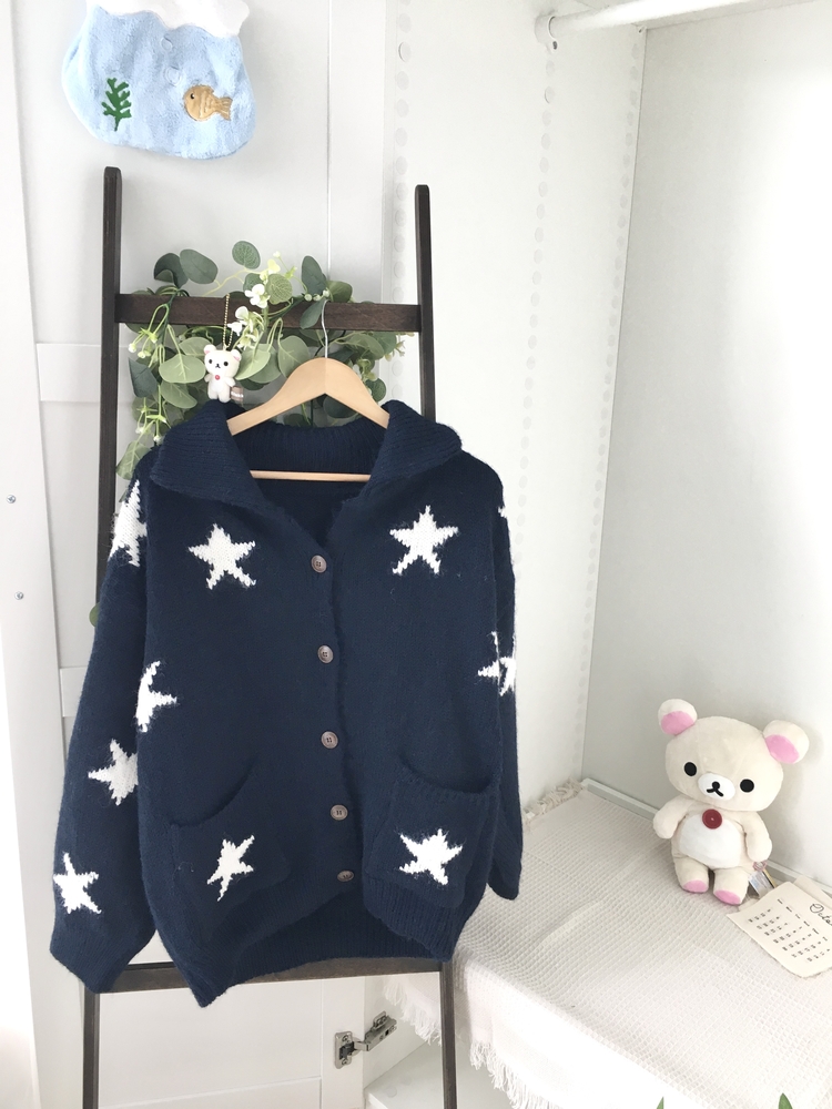 SGD29350 우드버튼 스타 키치 해비 아우터 포켓 카라 니트가디건