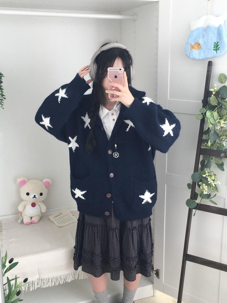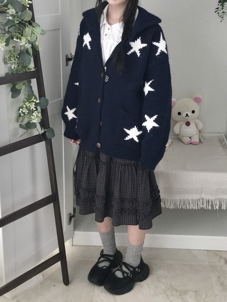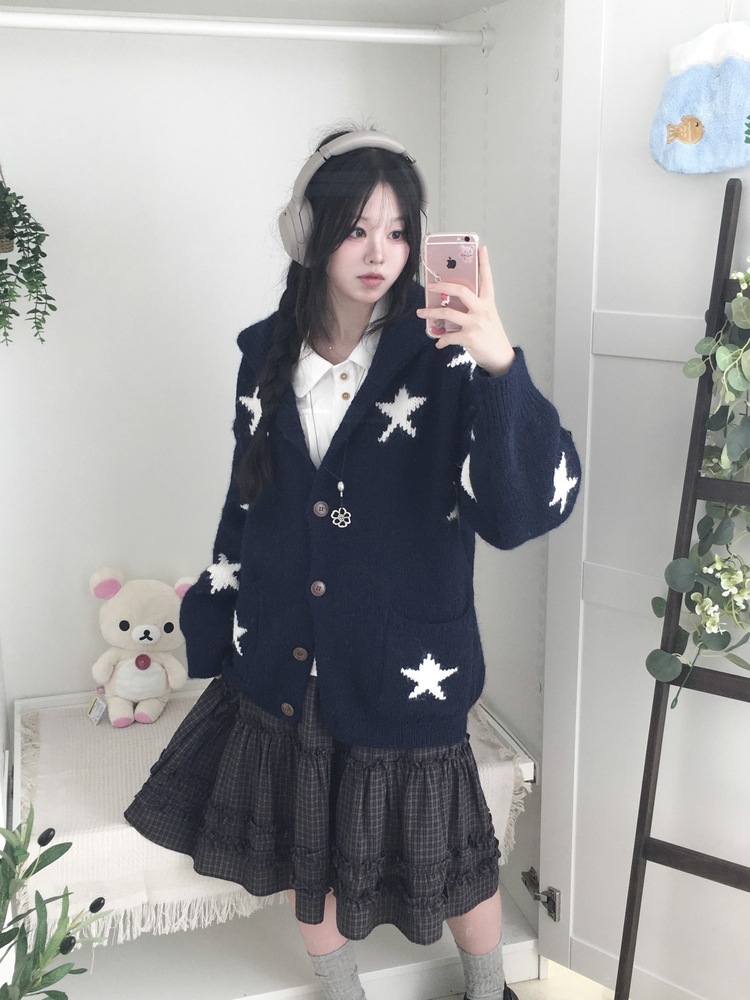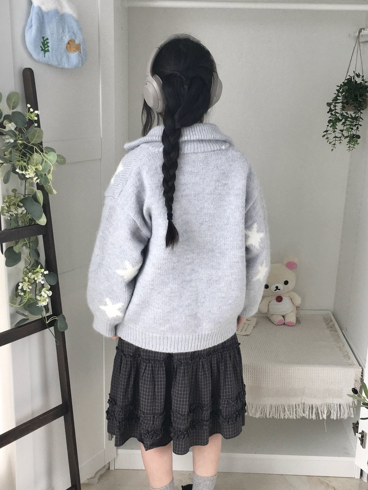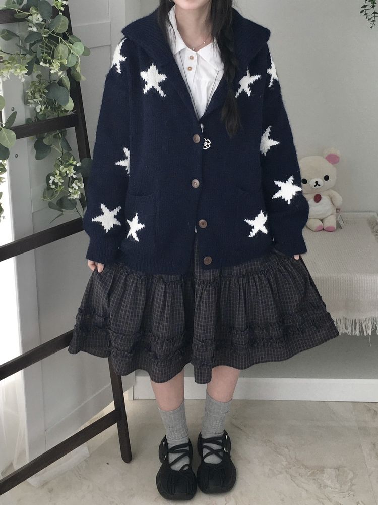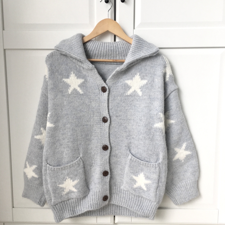 SGD29350 우드버튼 스타 키치 해비 아우터 포켓 카라 니트가디건