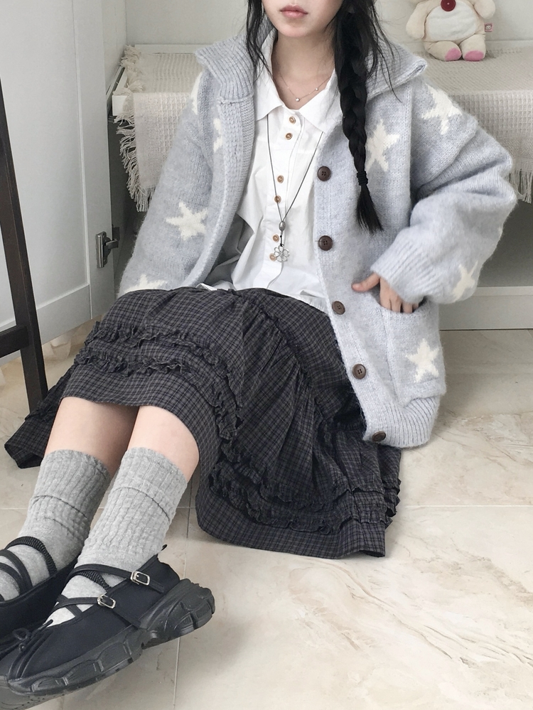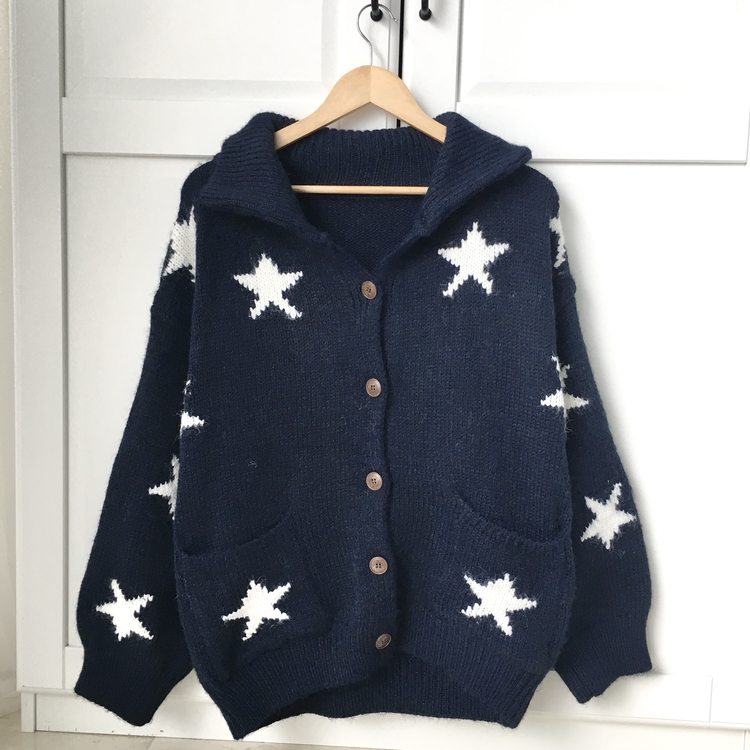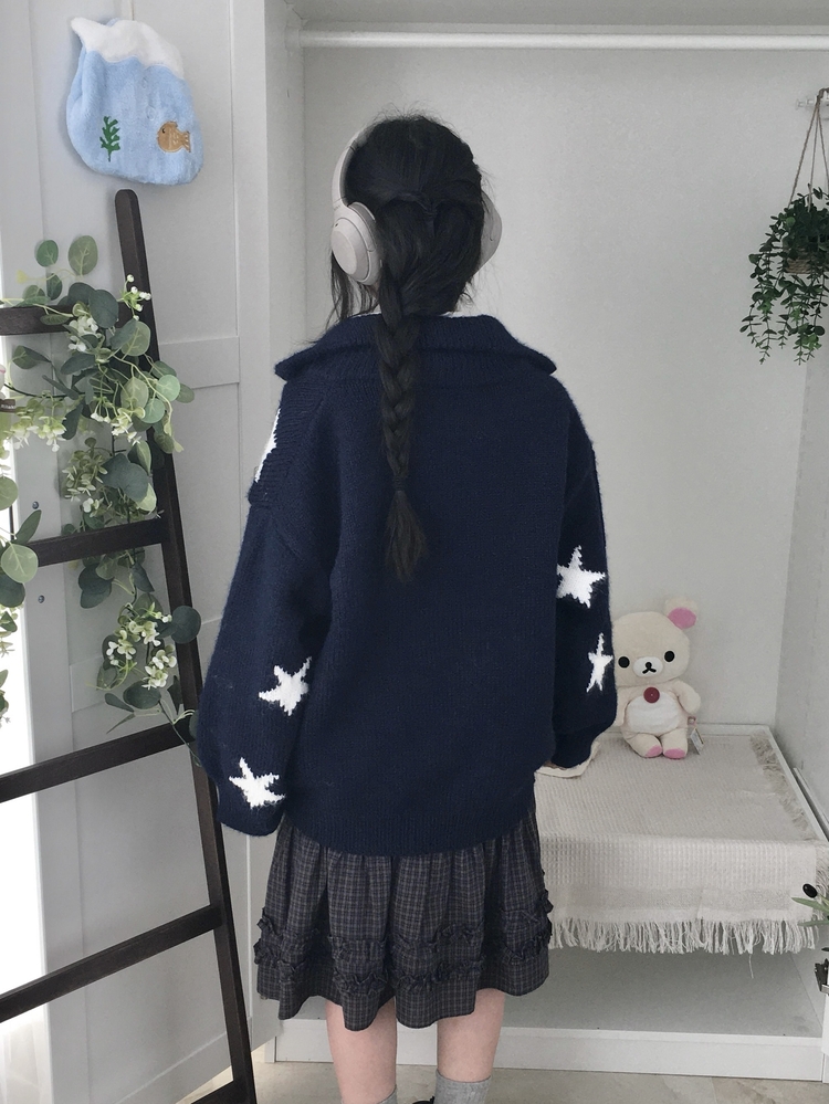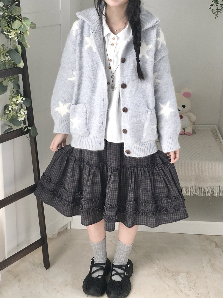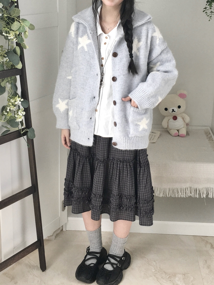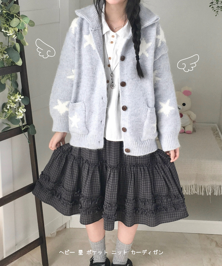 SGD29350 우드버튼 스타 키치 해비 아우터 포켓 카라 니트가디건