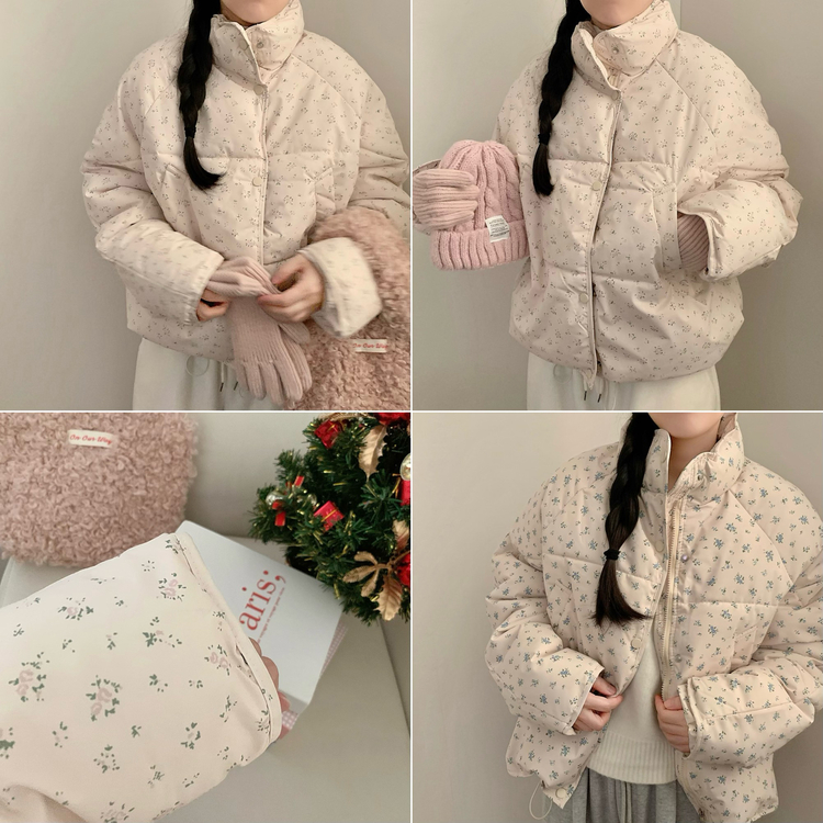 SJP18154 러블리 빈티지 잔꽃 패턴 플라워 모리걸 크롭 패딩