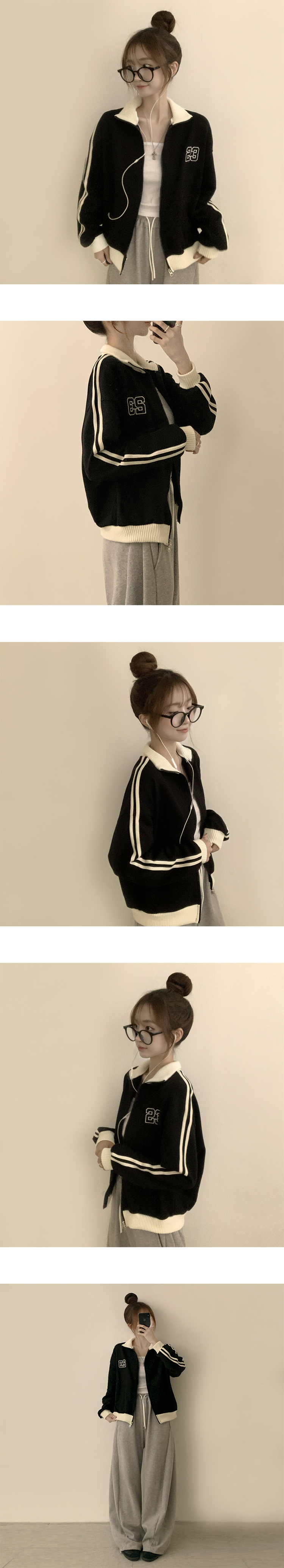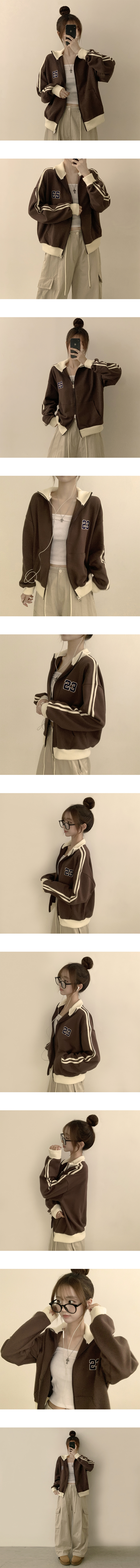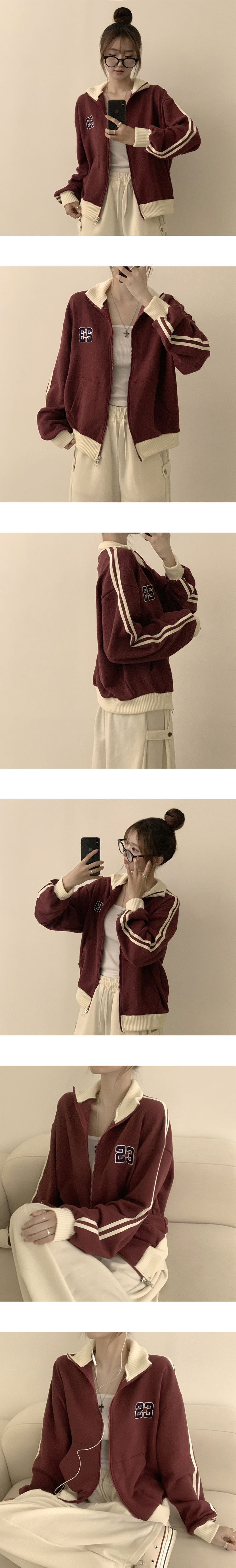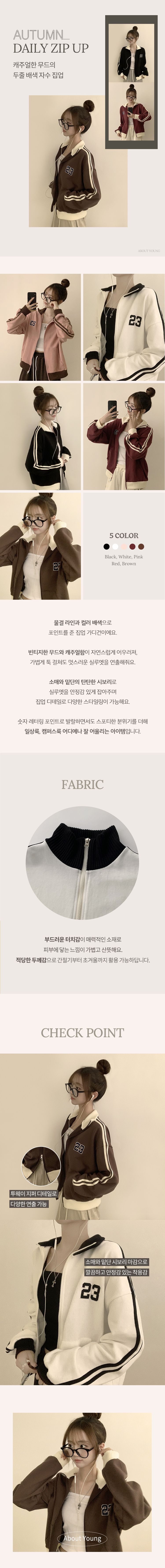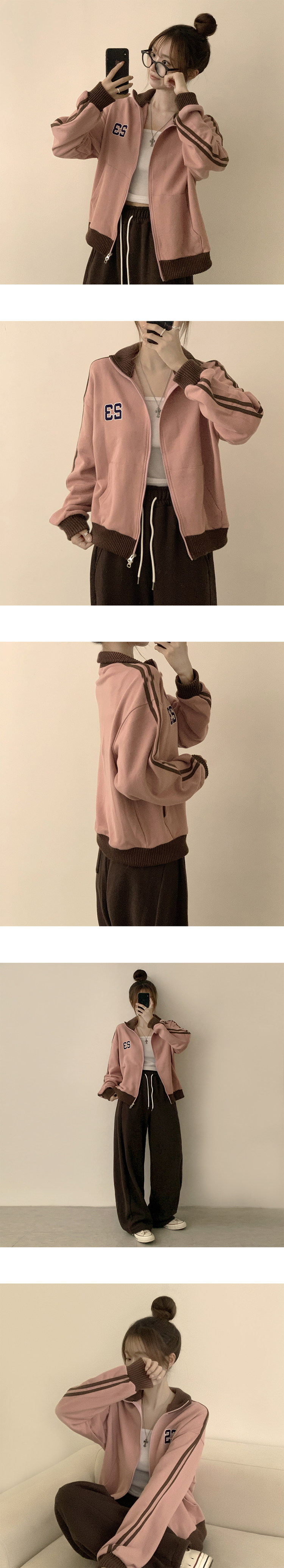 SJP18178 꾸안꾸 무드의 자수 두줄 배색 가을 긴팔 오버핏 집업 겨울 아우터 트레이닝 져지 하이넥 맨투맨 5color