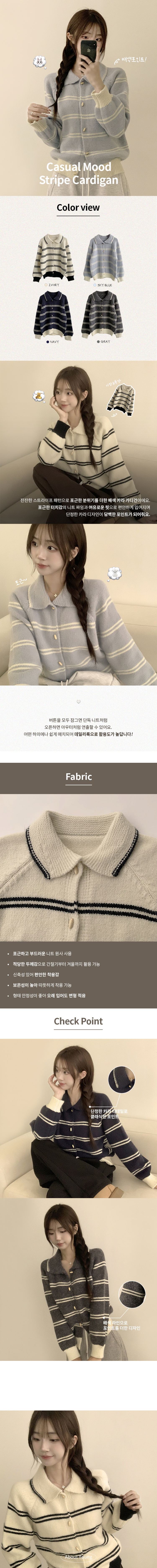 SGD29420 실물보장 귀여운 무드의 미미 라인 오버핏 스트라이프 가을 긴팔 니트 가디건
