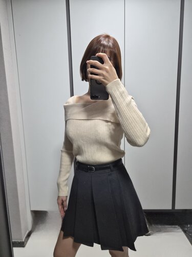 SNT32940 nt5191 (여리한쇄골라인/여성스러움UP) 오브텐 슬림 골지 언발 오프숄더 니트