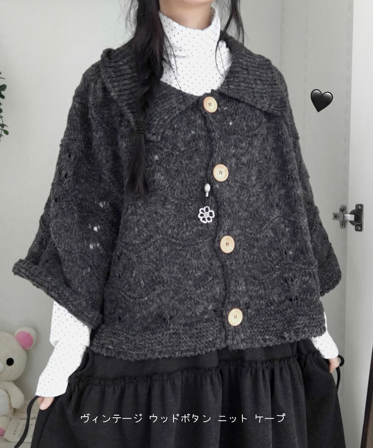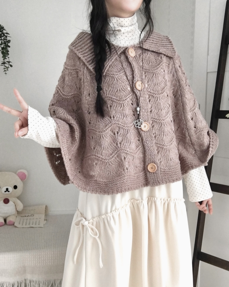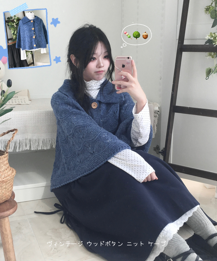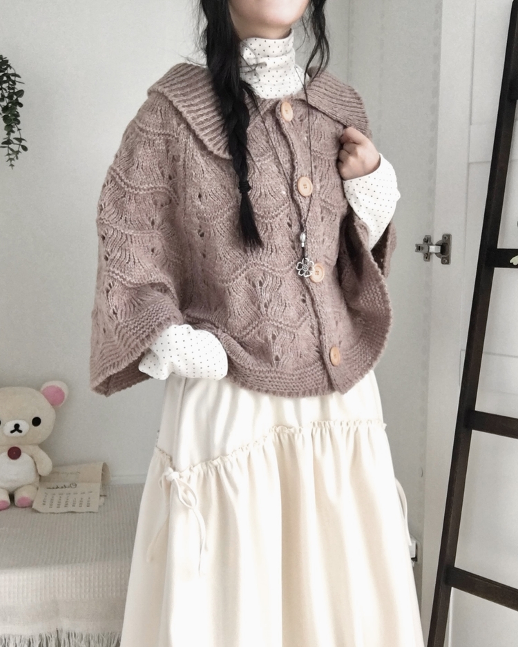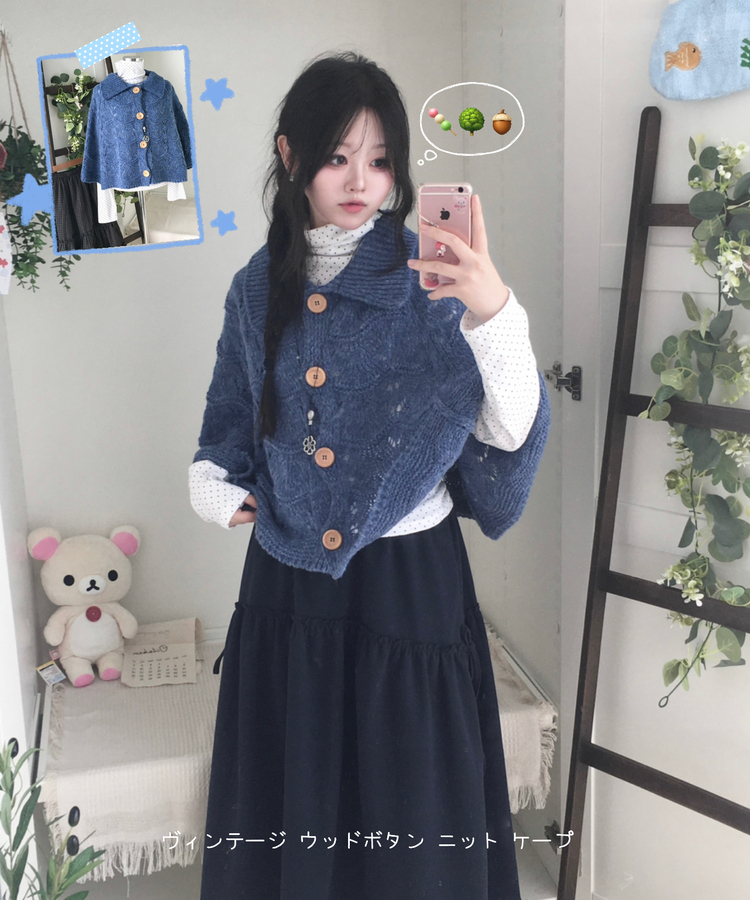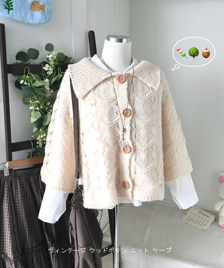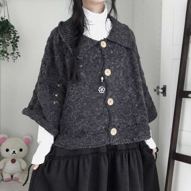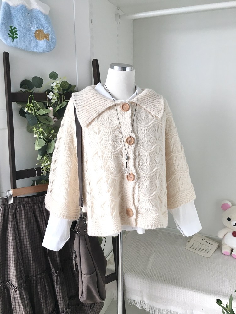 SGD29439 달빛천사 빈티지 대장 모리걸 우드버튼 판초 카라 케이프 망토