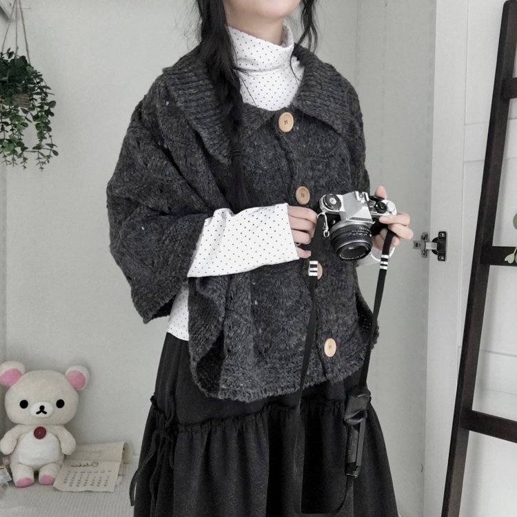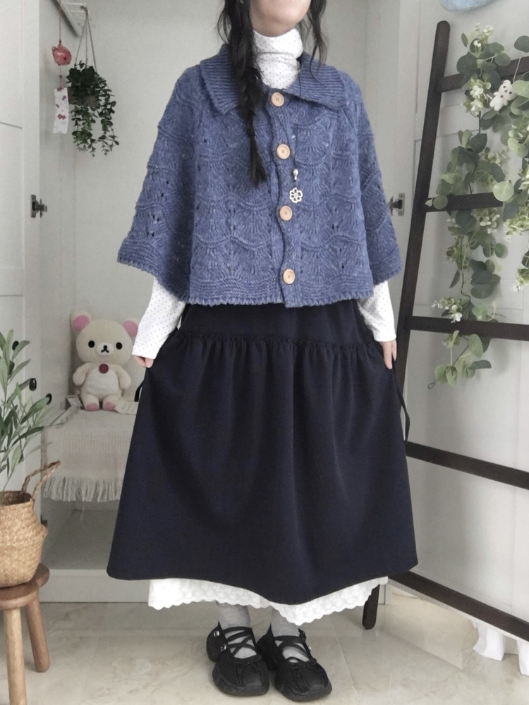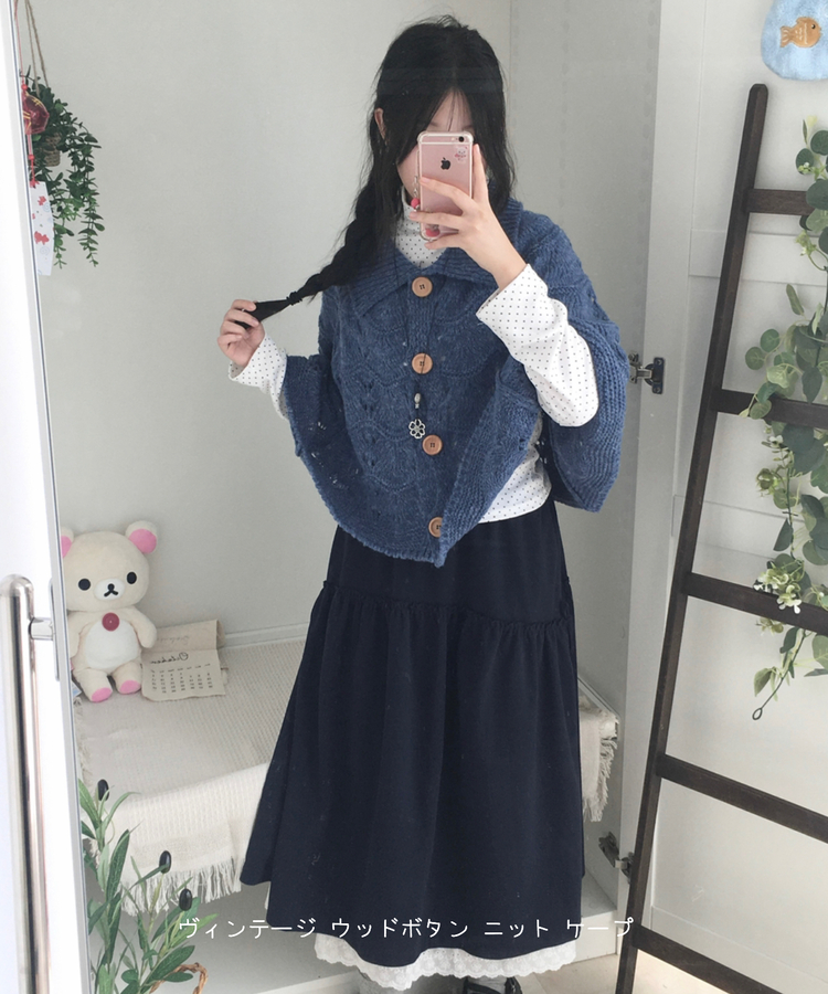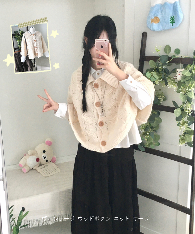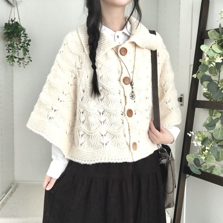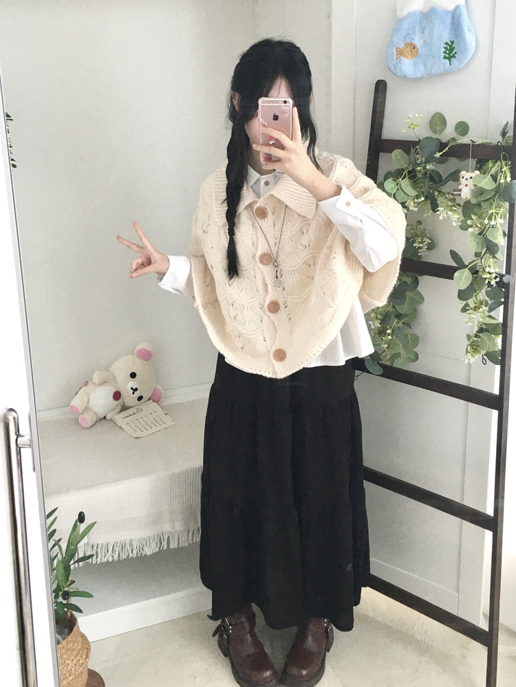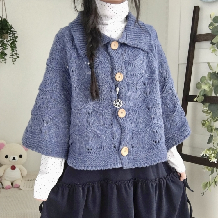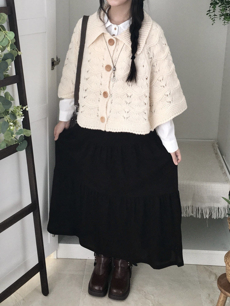 SGD29439 달빛천사 빈티지 대장 모리걸 우드버튼 판초 카라 케이프 망토