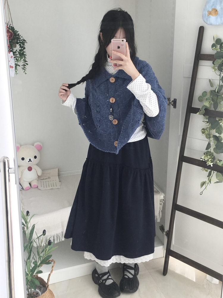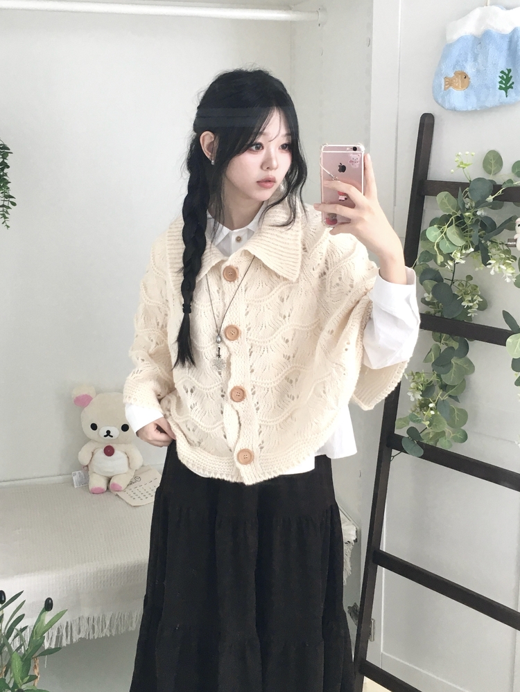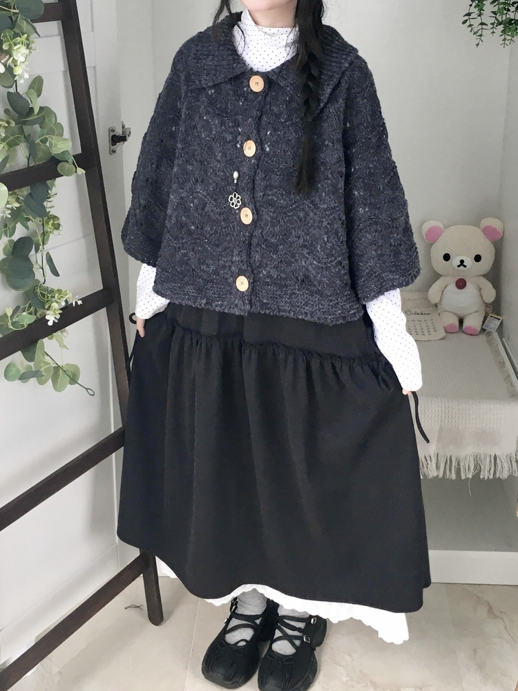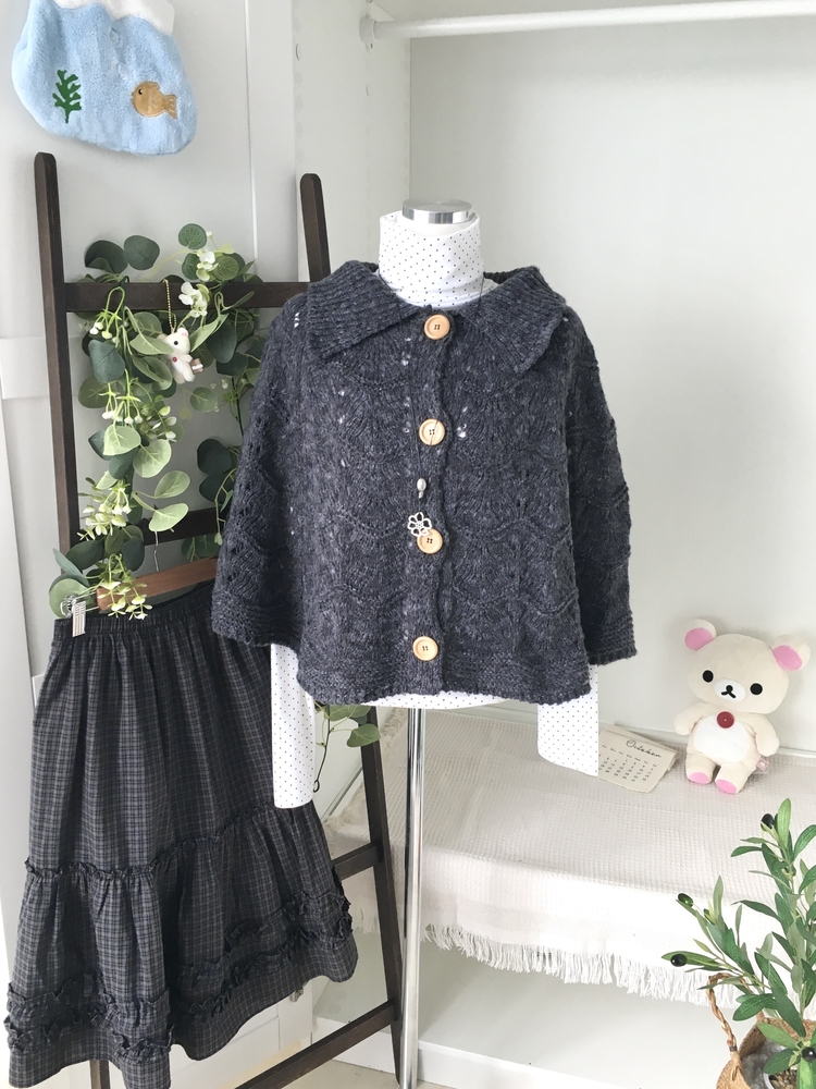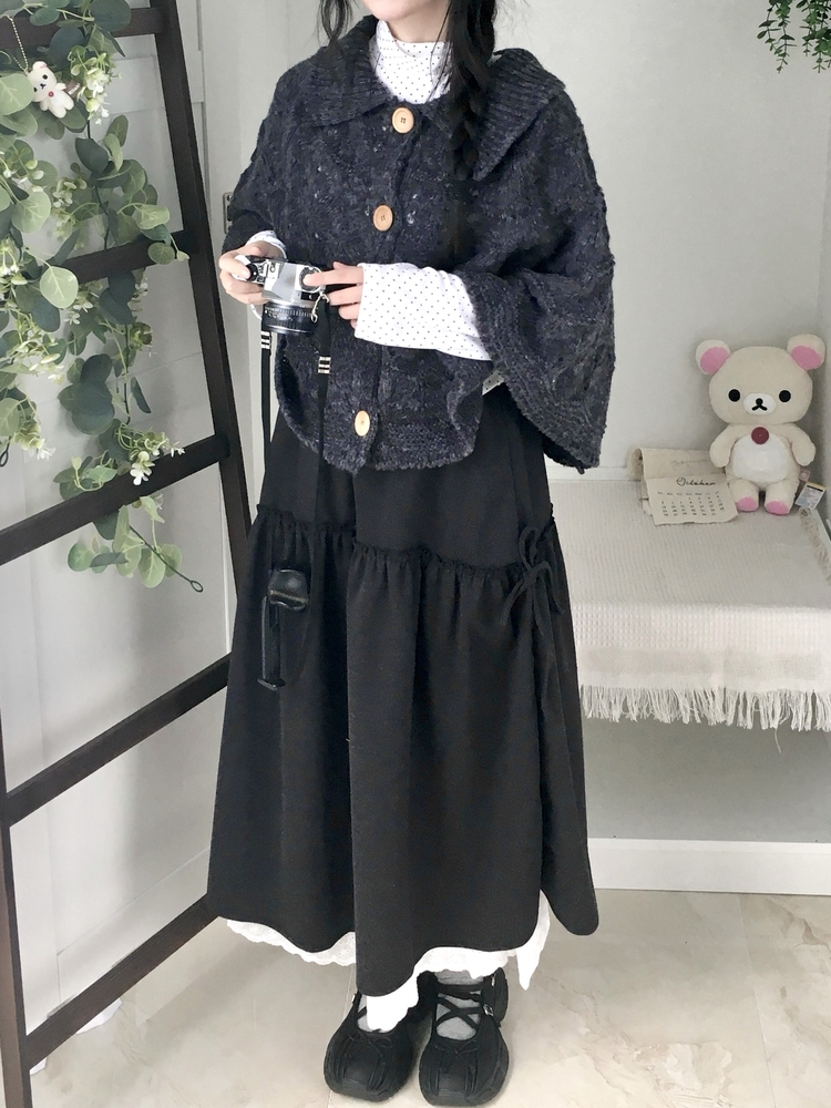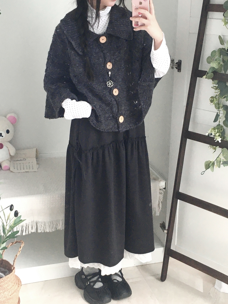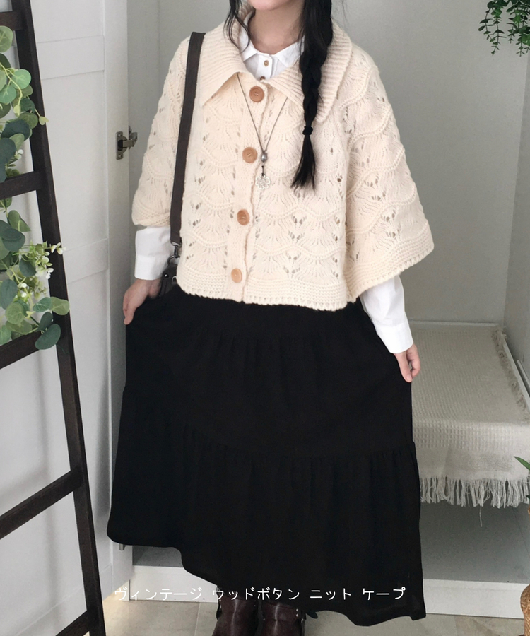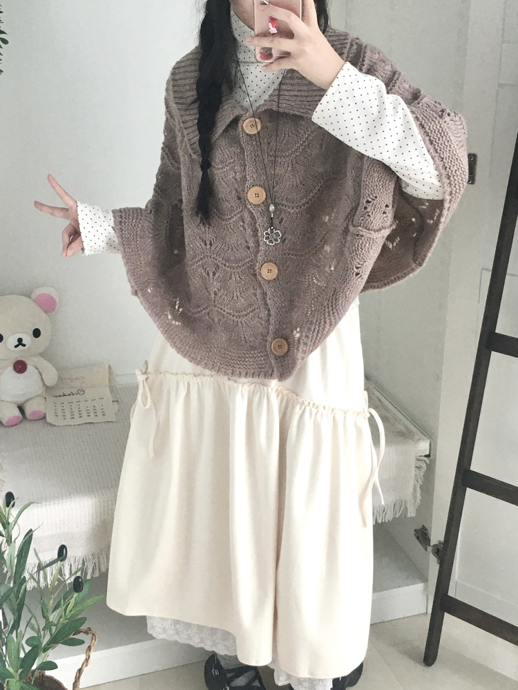 SGD29439 달빛천사 빈티지 대장 모리걸 우드버튼 판초 카라 케이프 망토