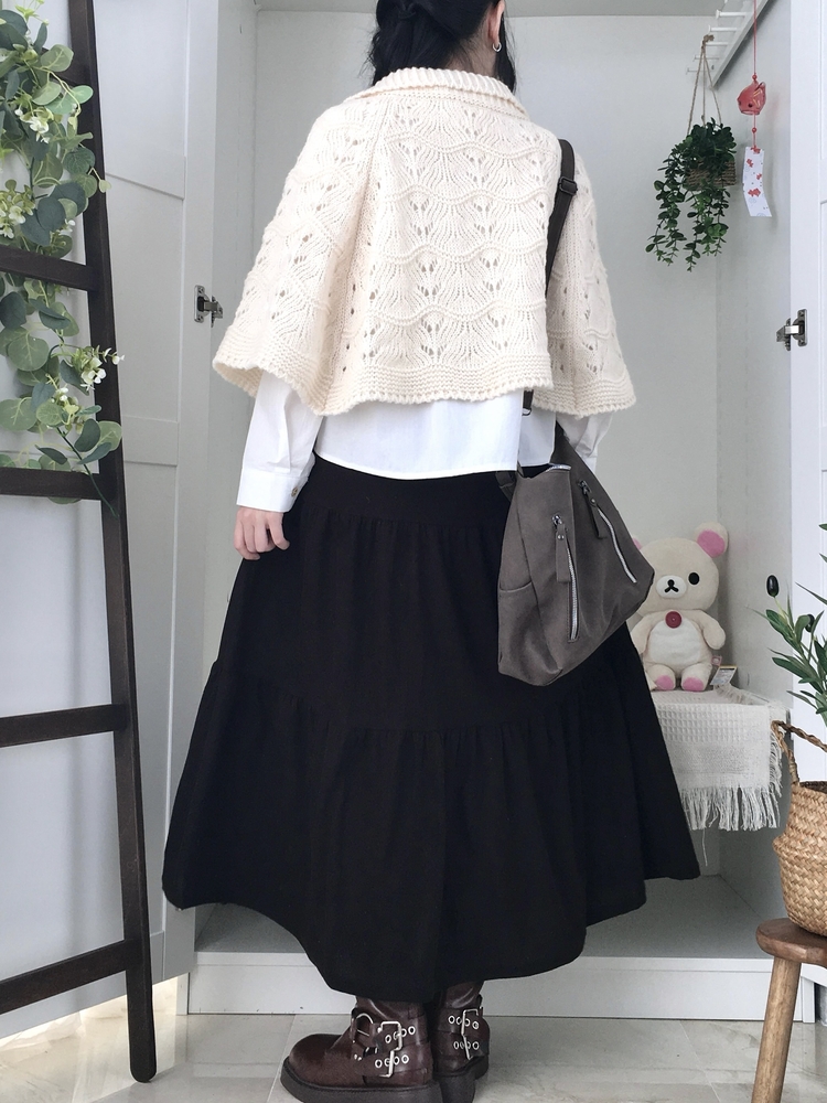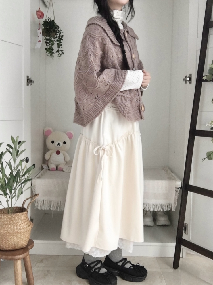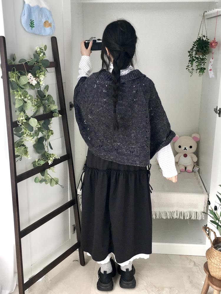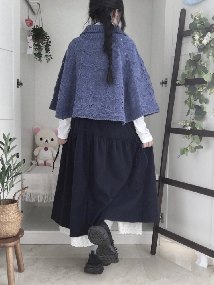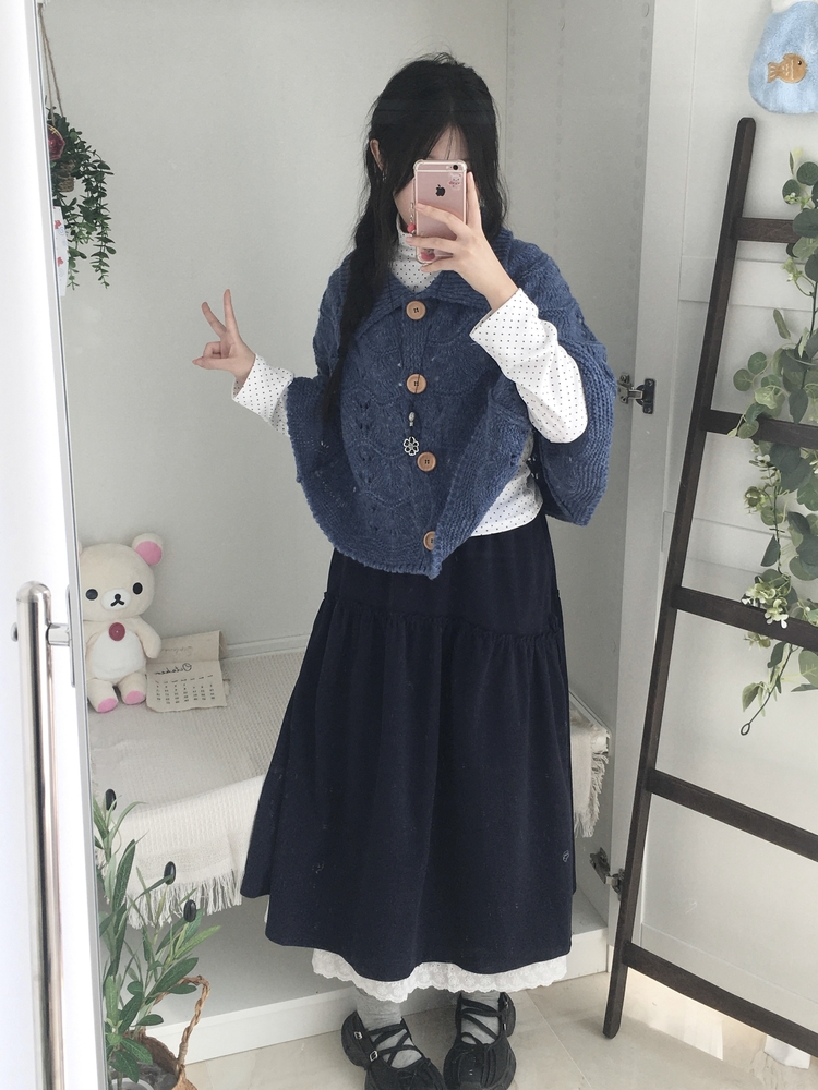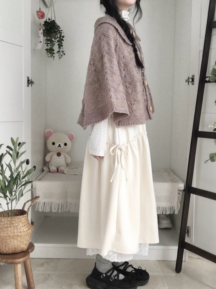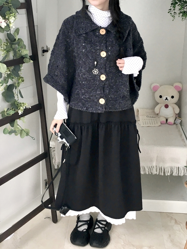 SGD29439 달빛천사 빈티지 대장 모리걸 우드버튼 판초 카라 케이프 망토