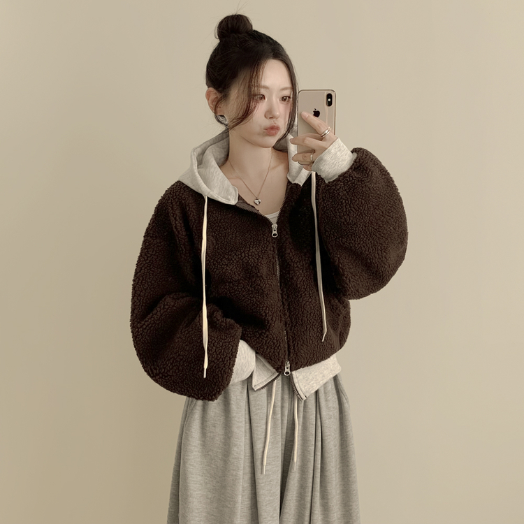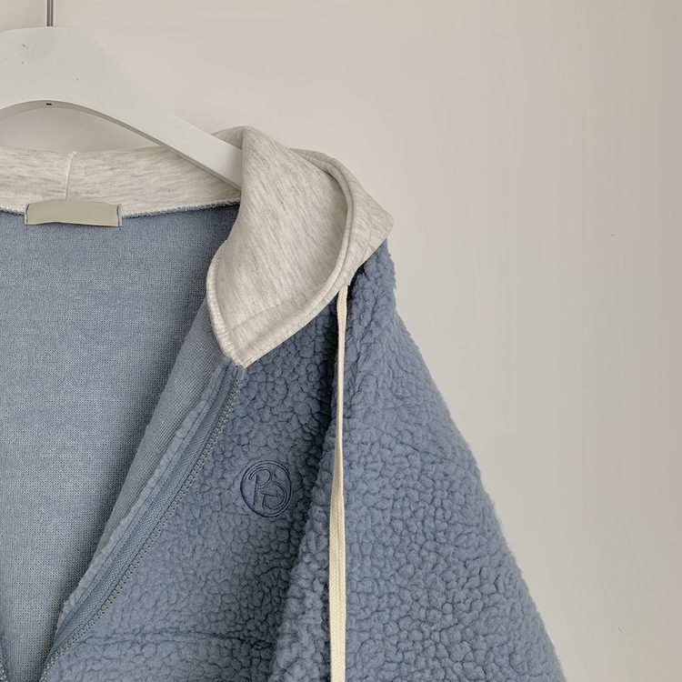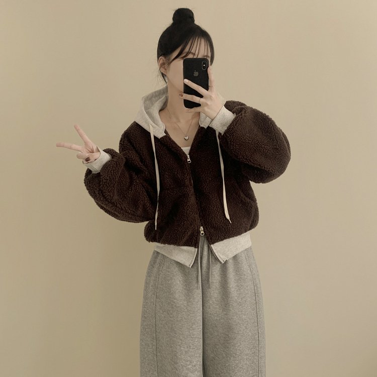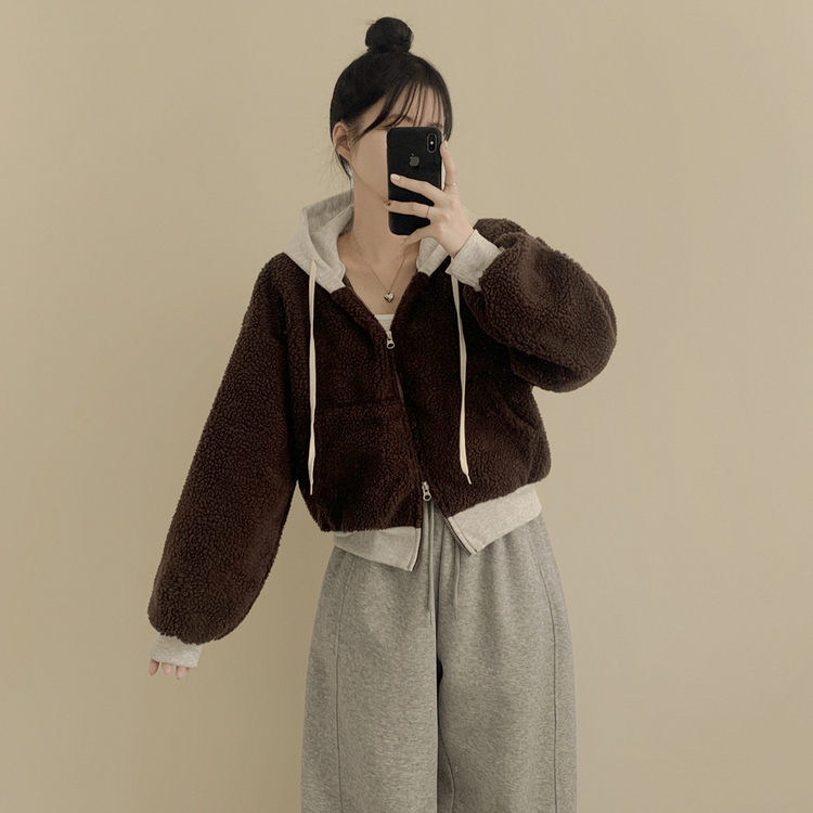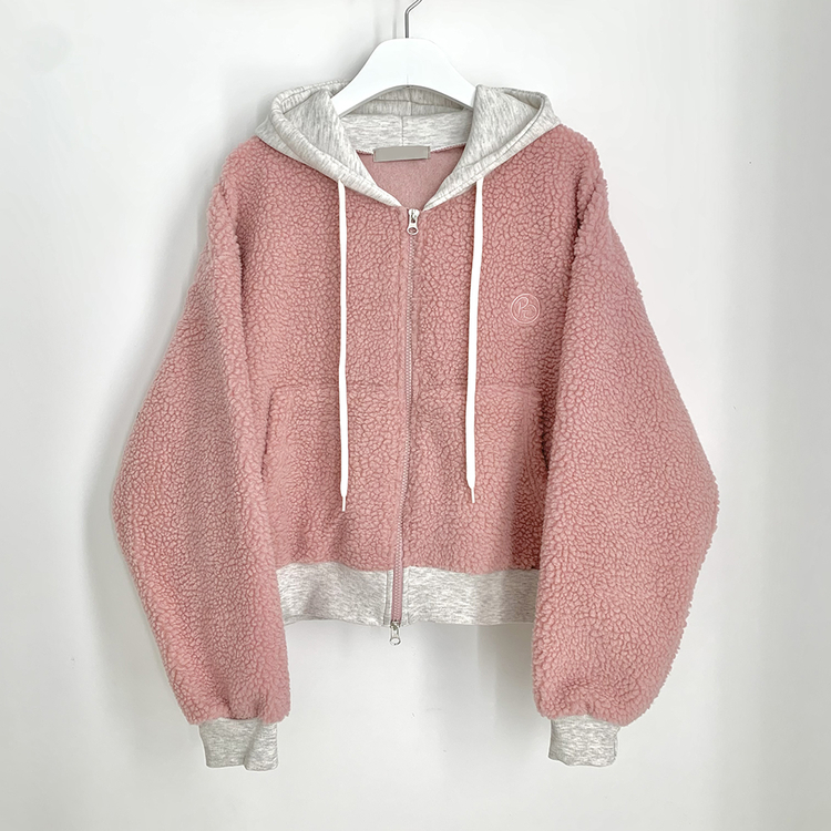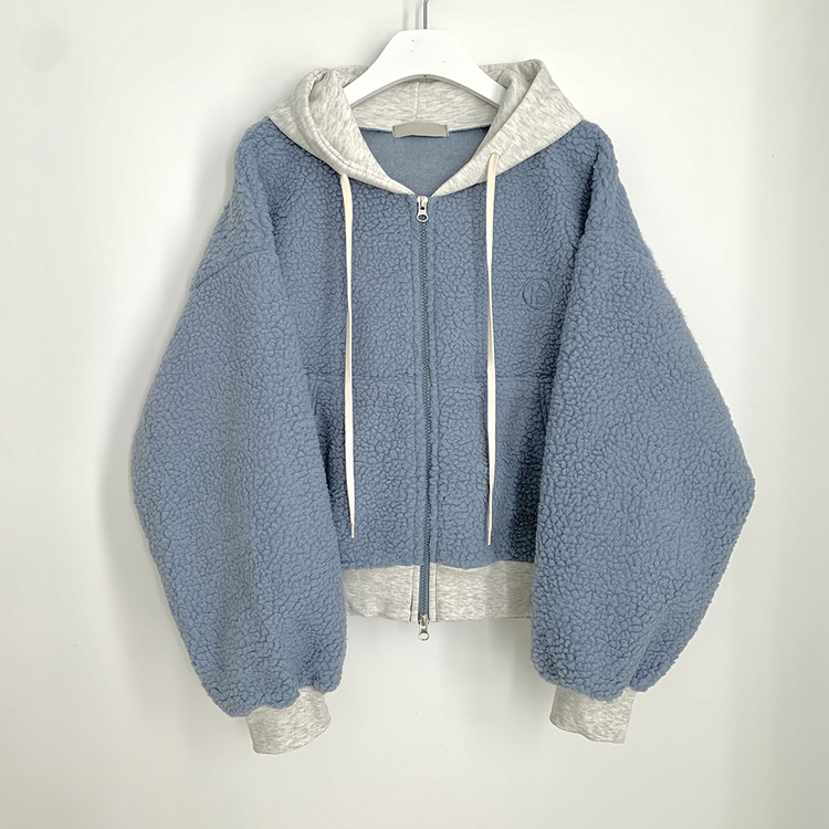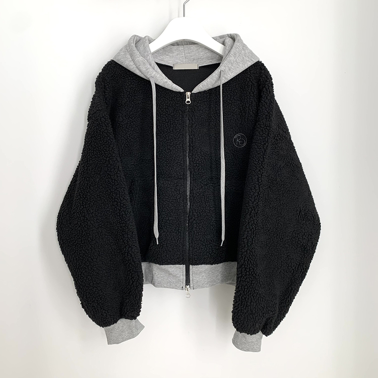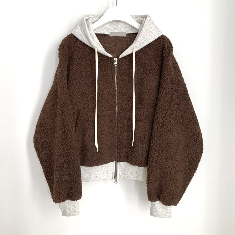 SJP18209 양털 뽀글이 배색 투웨이 스트링 오버핏 덤블 크롭 후드집업 점퍼