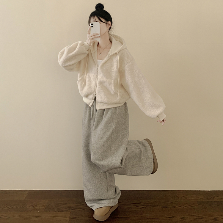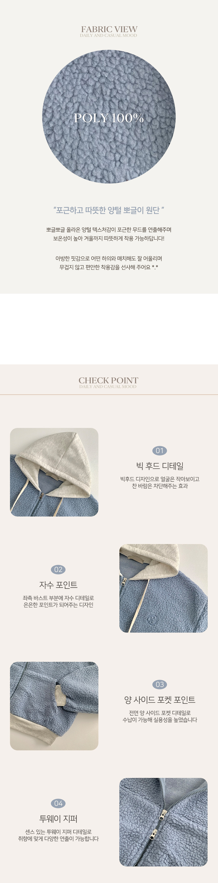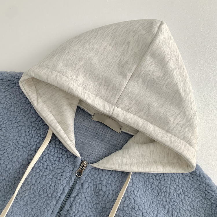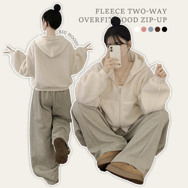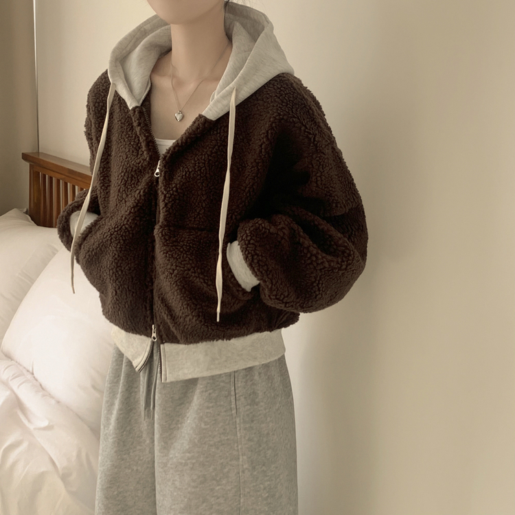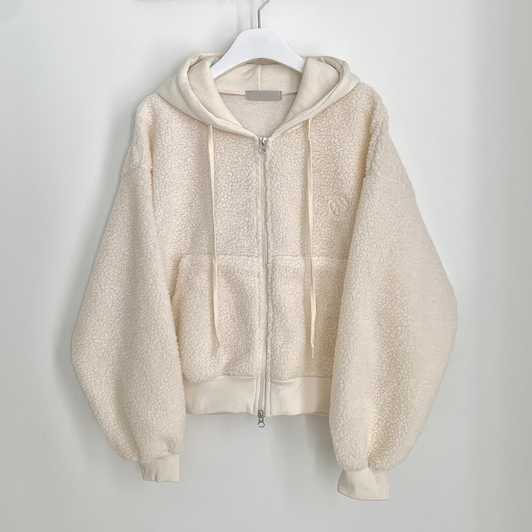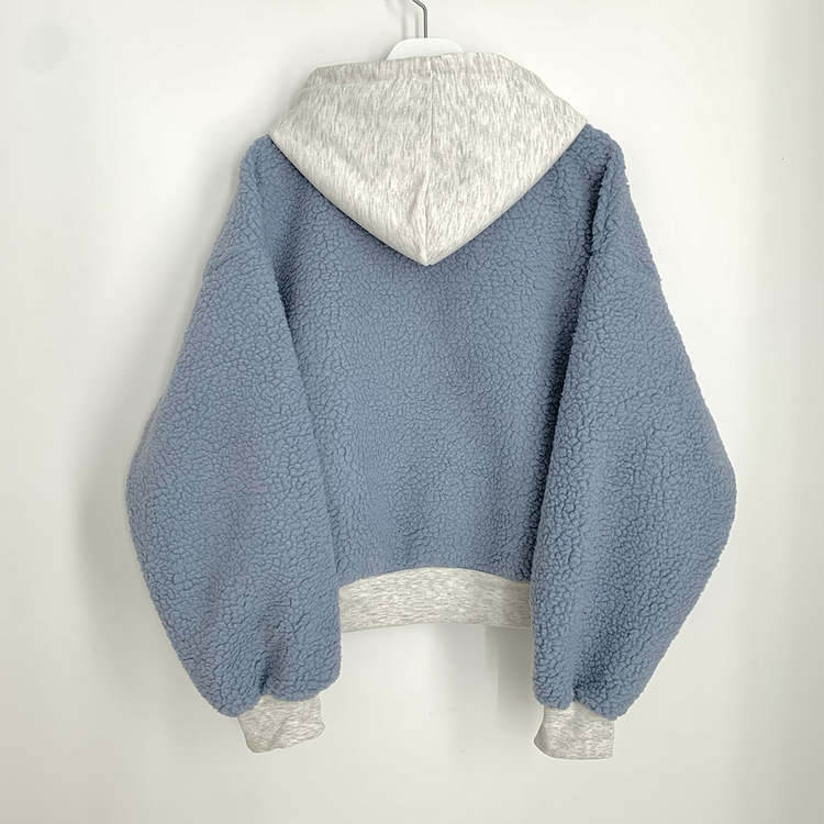 SJP18209 양털 뽀글이 배색 투웨이 스트링 오버핏 덤블 크롭 후드집업 점퍼