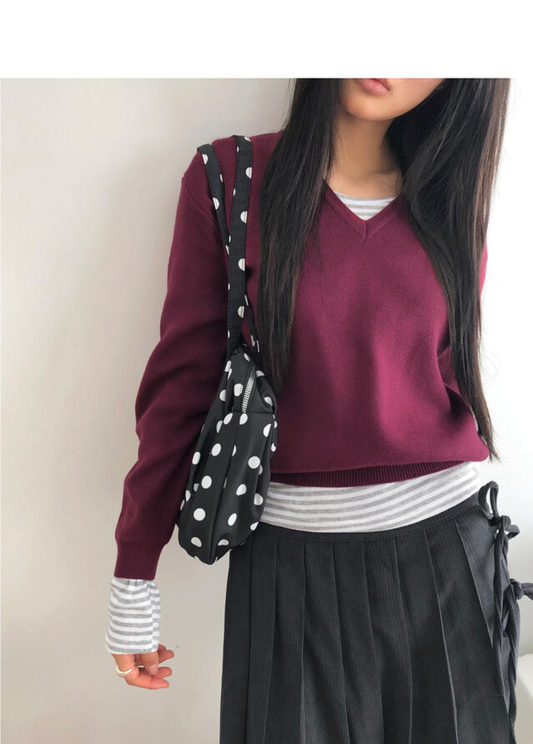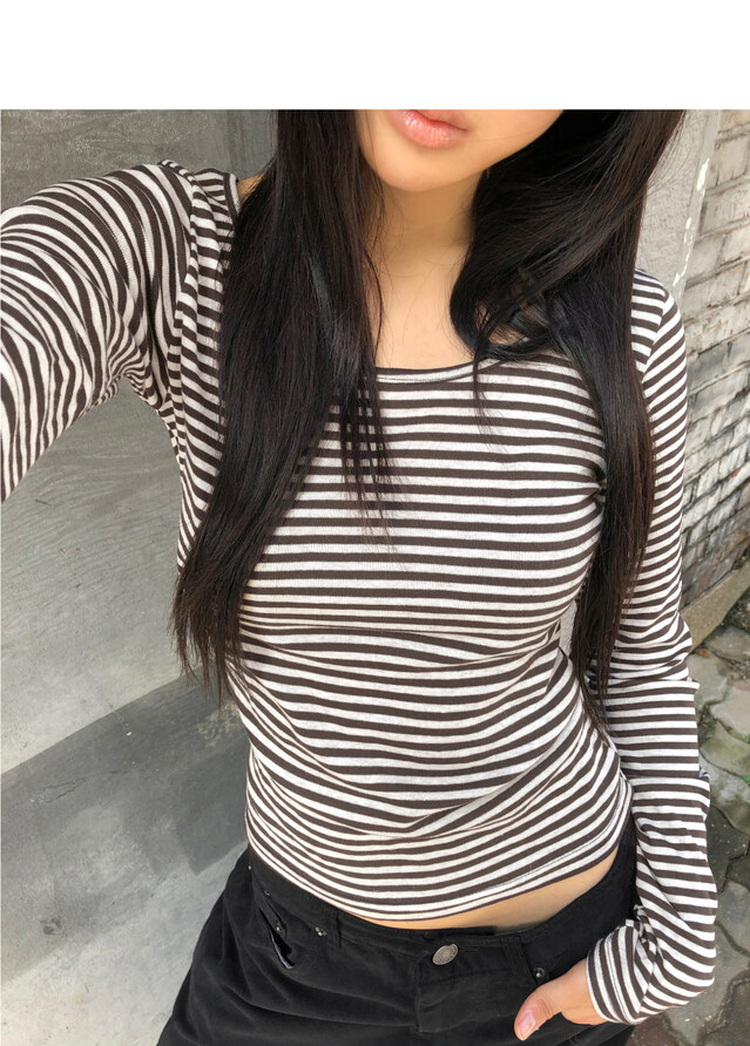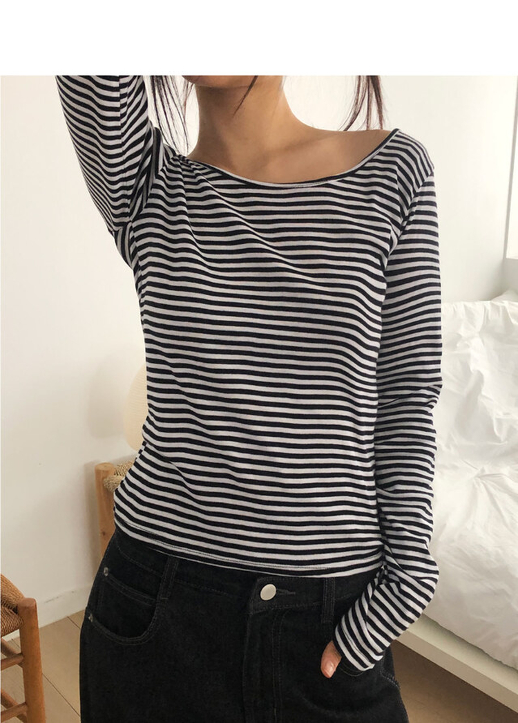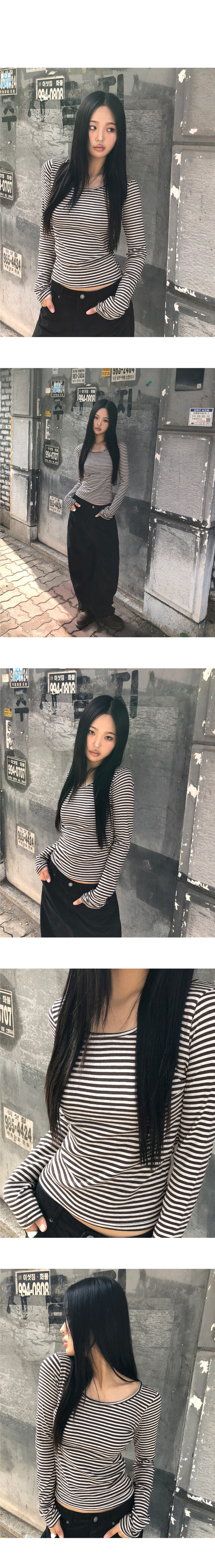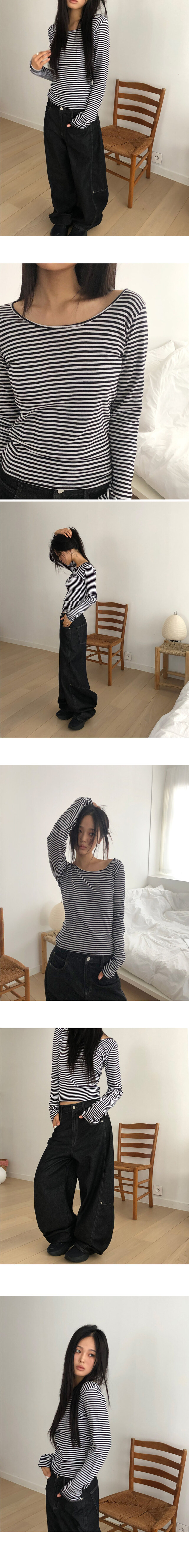 STS73133 이본 스트라이프 라운드넥 슬림핏 긴팔 티셔츠