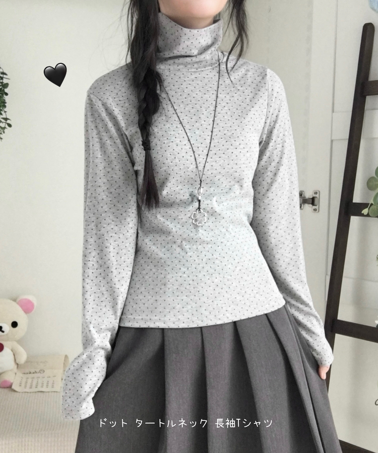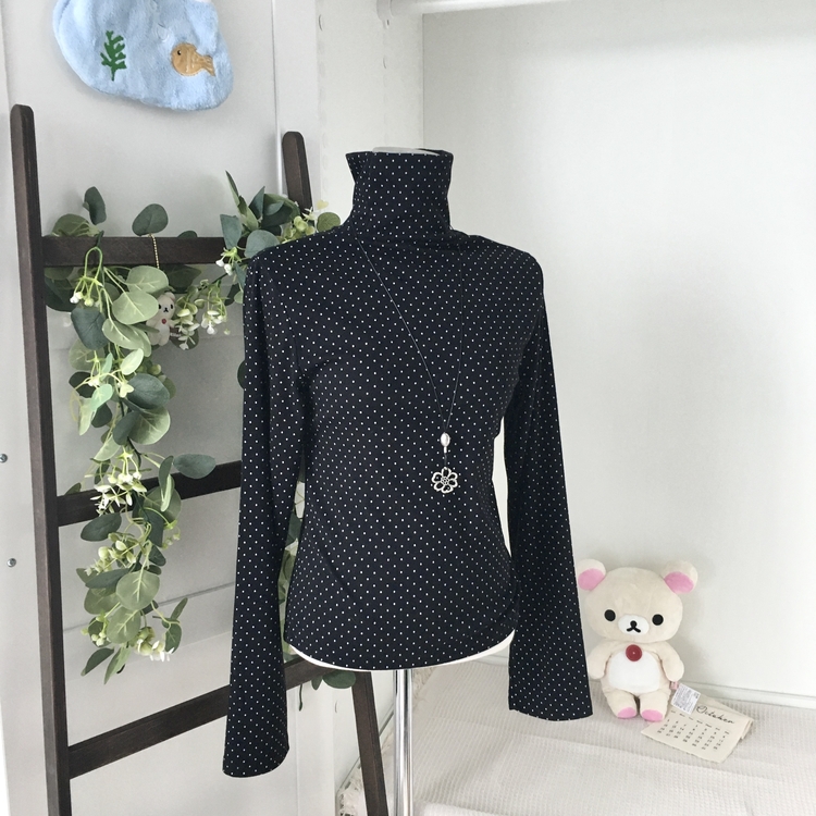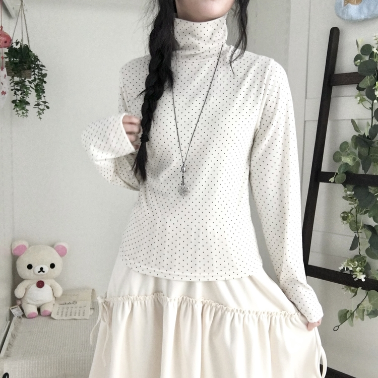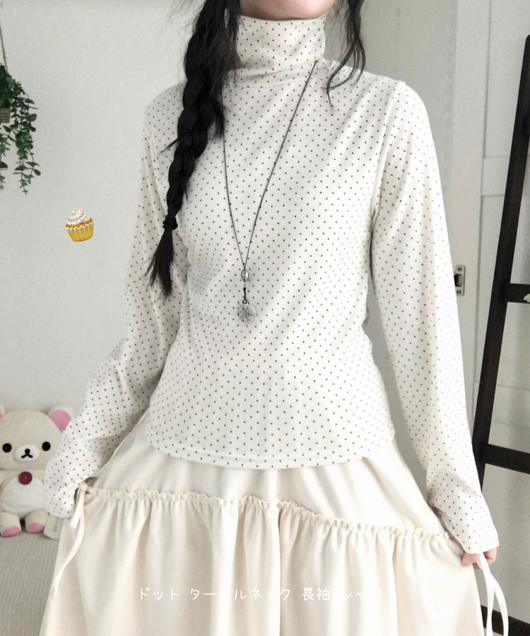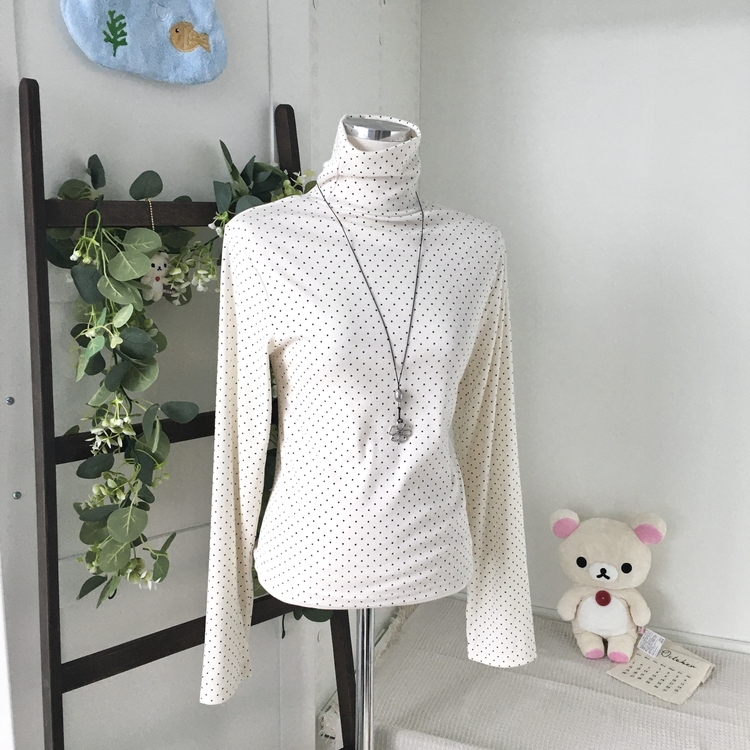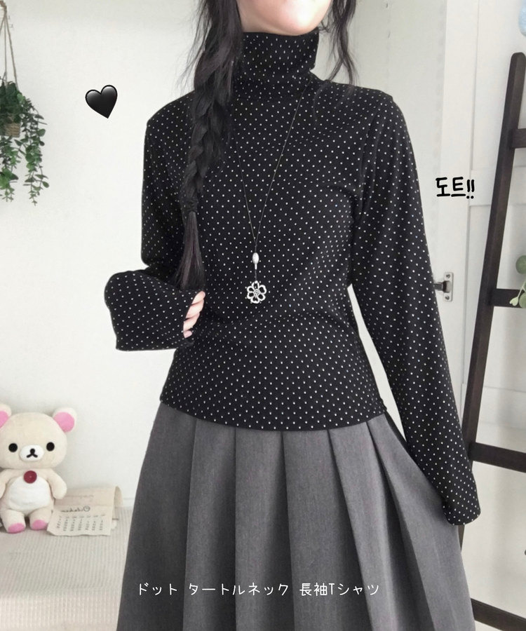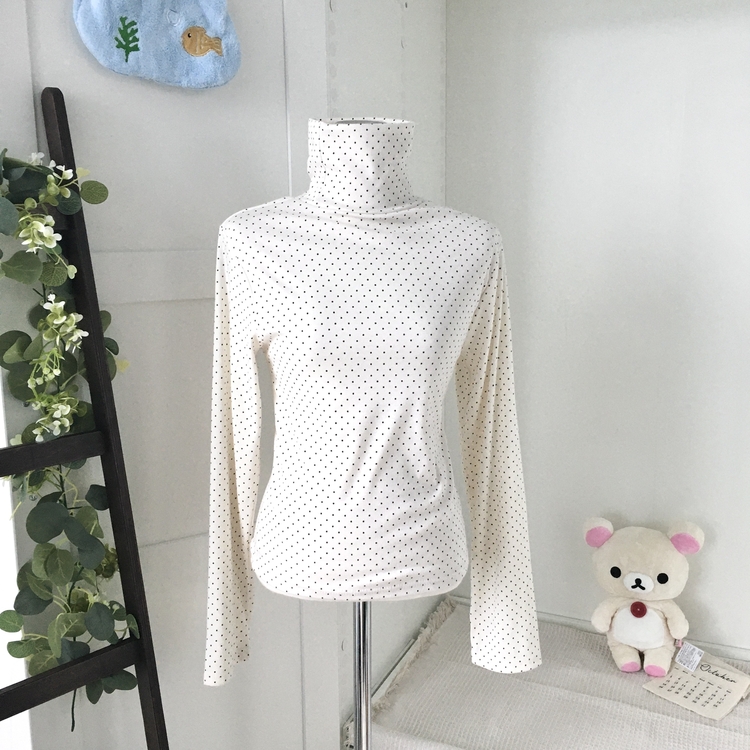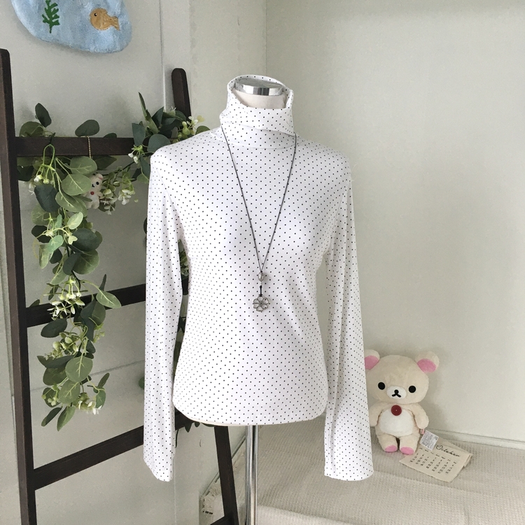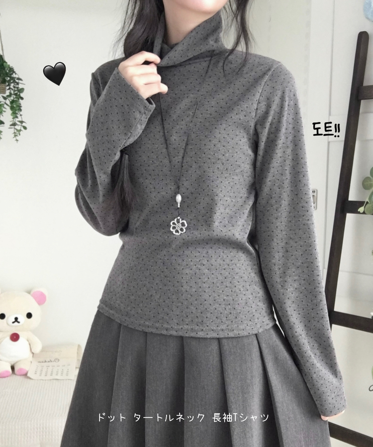 STS73141 국내제작 완전 부드러운 낙낙핏 부들부들 도트 목폴라 긴팔 티셔츠