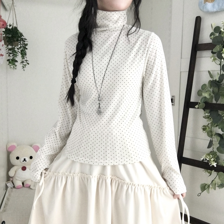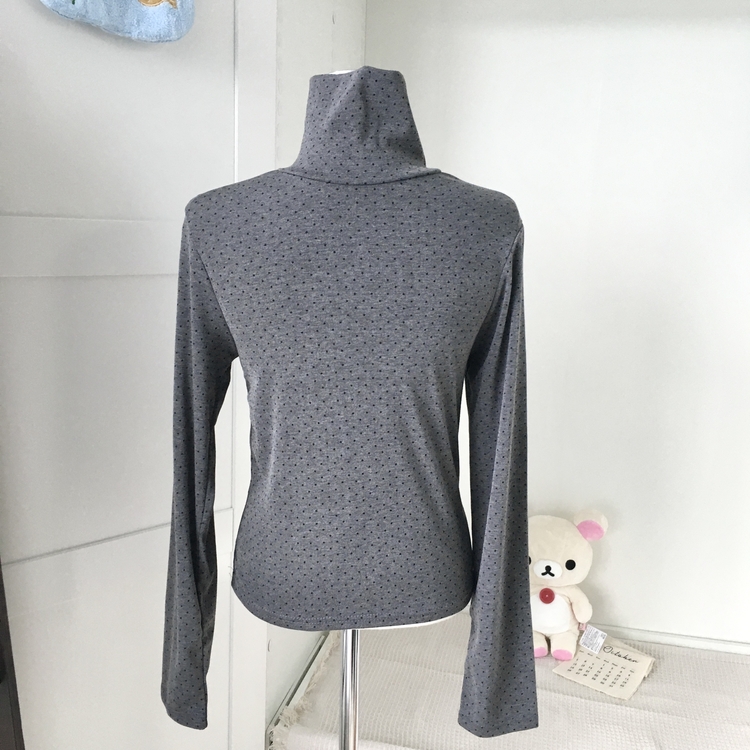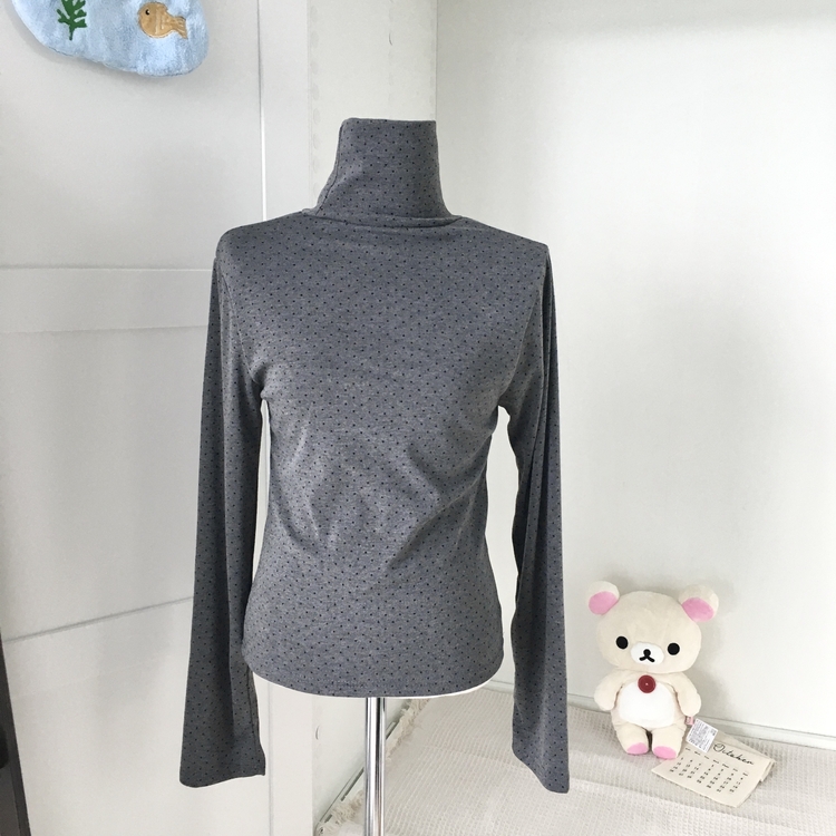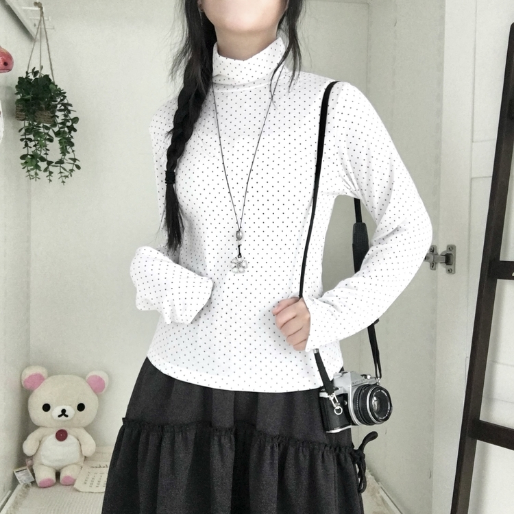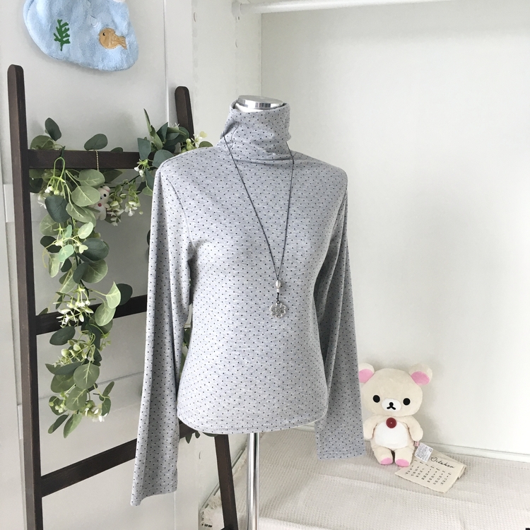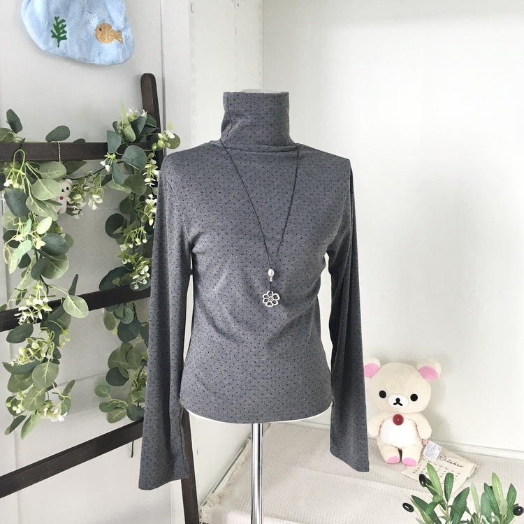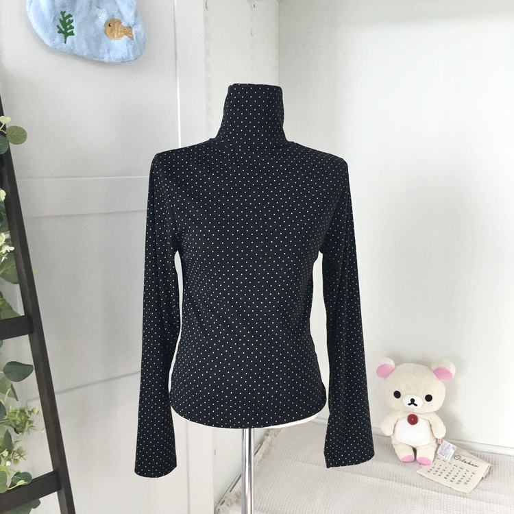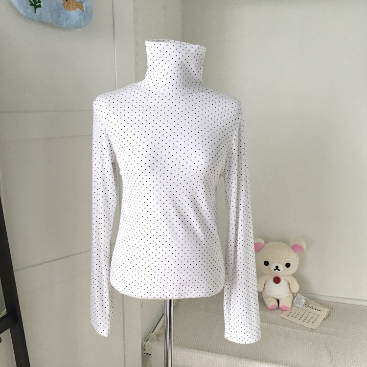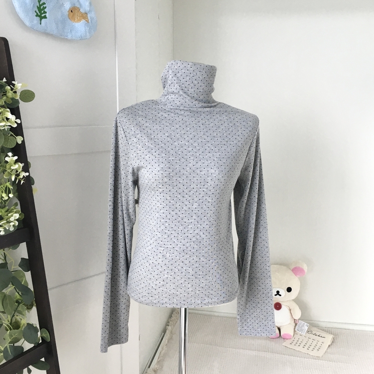 STS73141 국내제작 완전 부드러운 낙낙핏 부들부들 도트 목폴라 긴팔 티셔츠