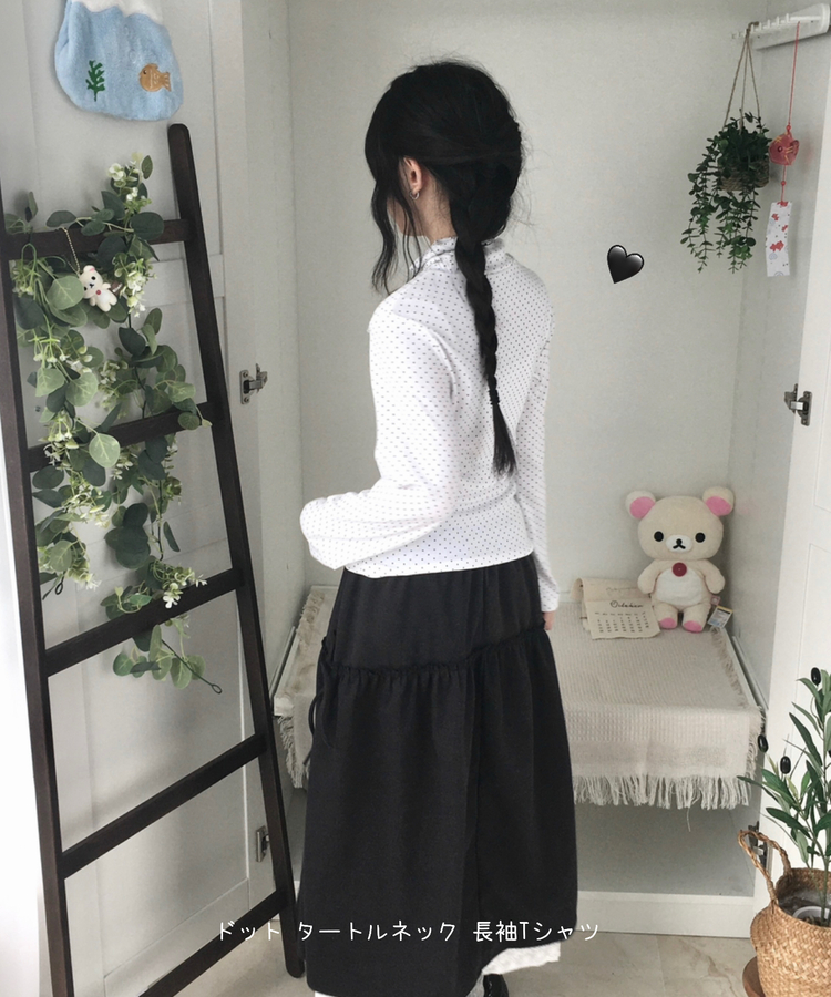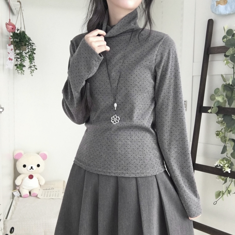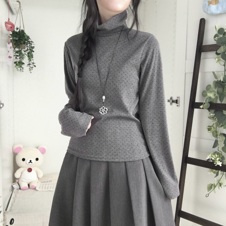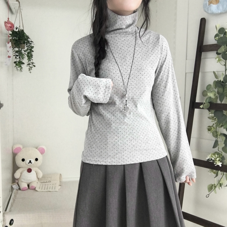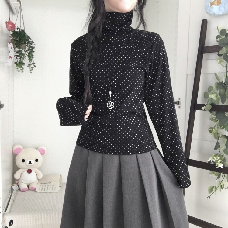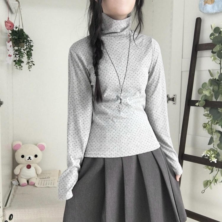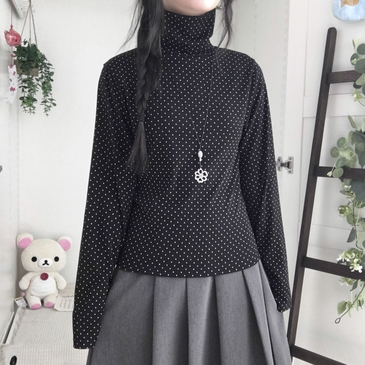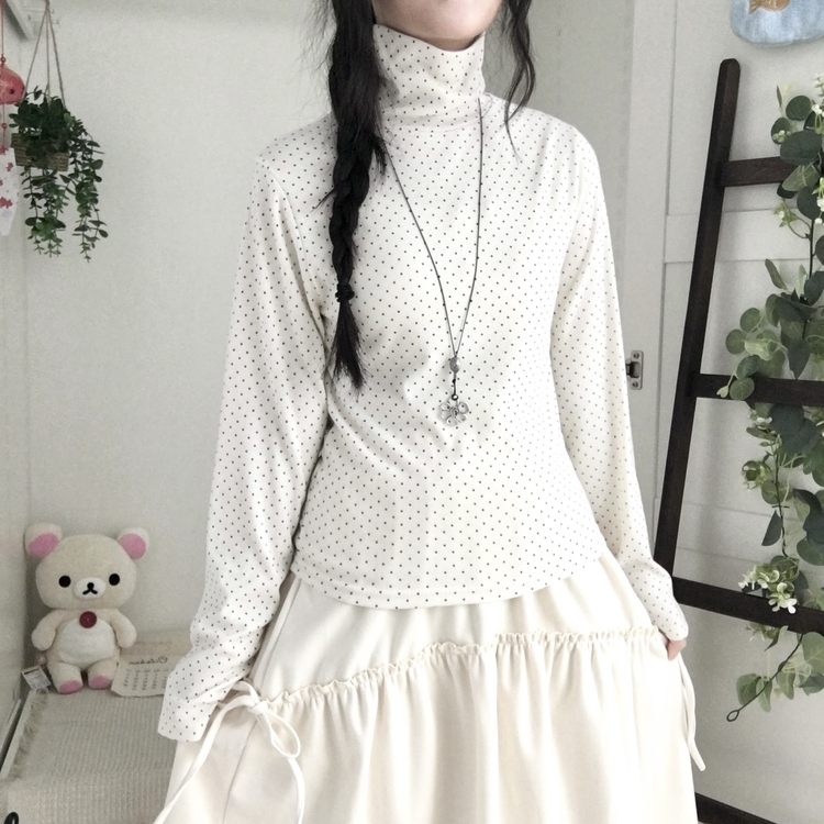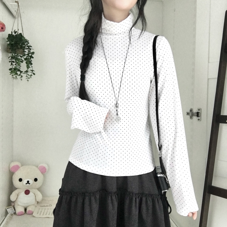 STS73141 국내제작 완전 부드러운 낙낙핏 부들부들 도트 목폴라 긴팔 티셔츠
