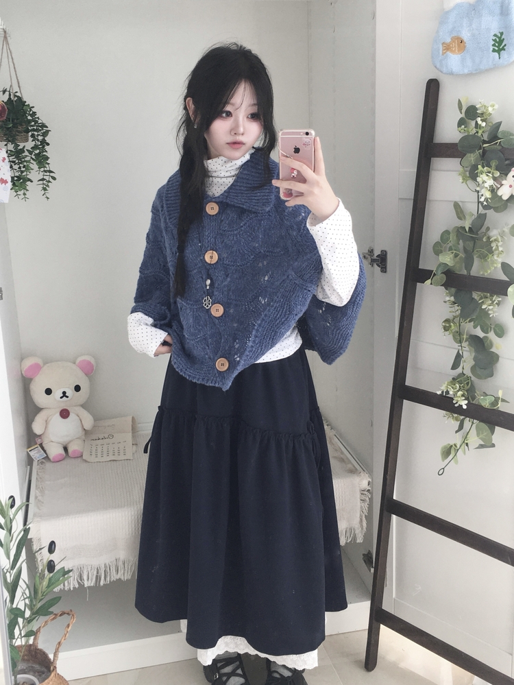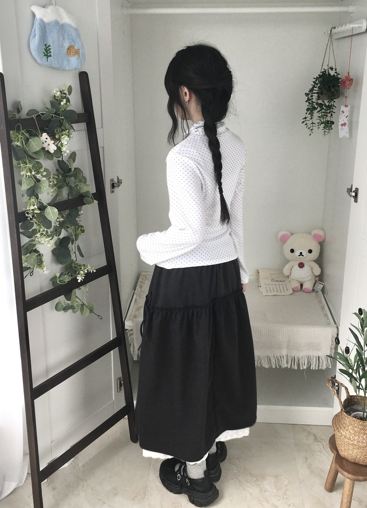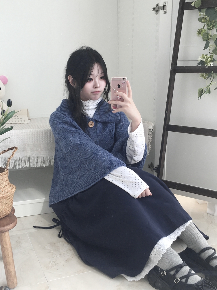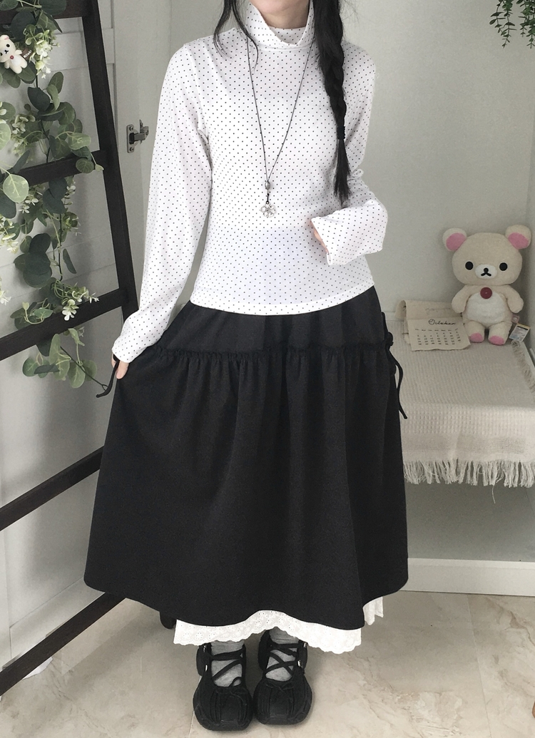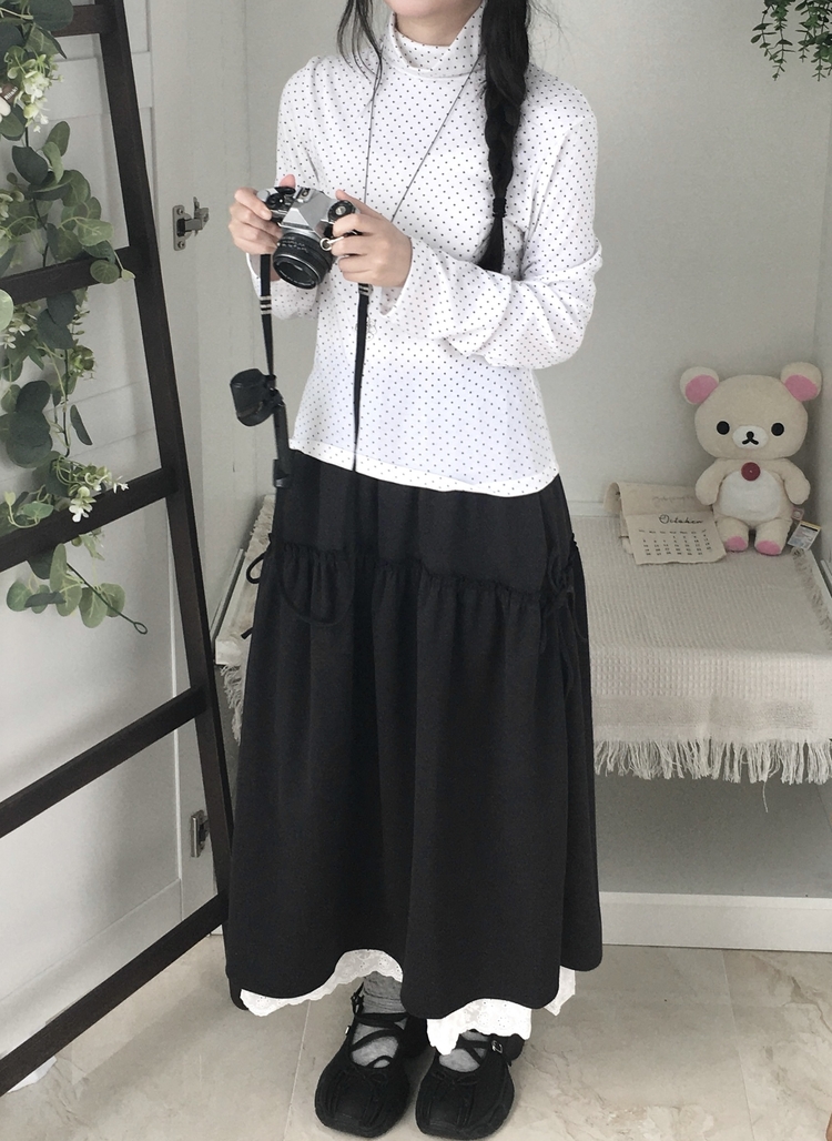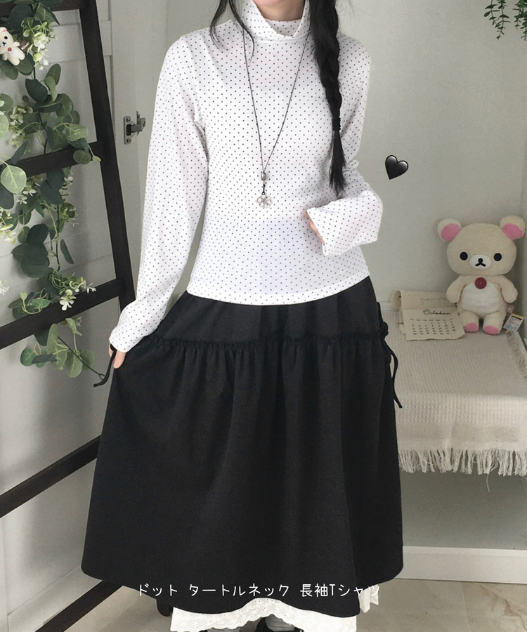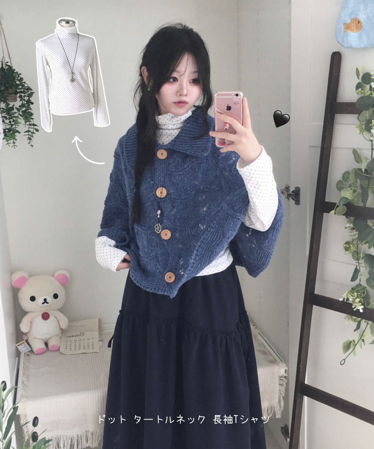 STS73141 국내제작 완전 부드러운 낙낙핏 부들부들 도트 목폴라 긴팔 티셔츠