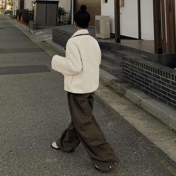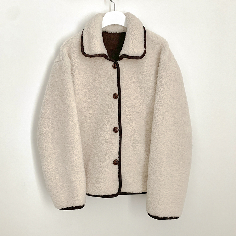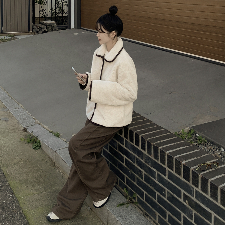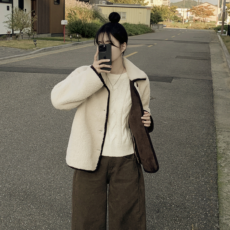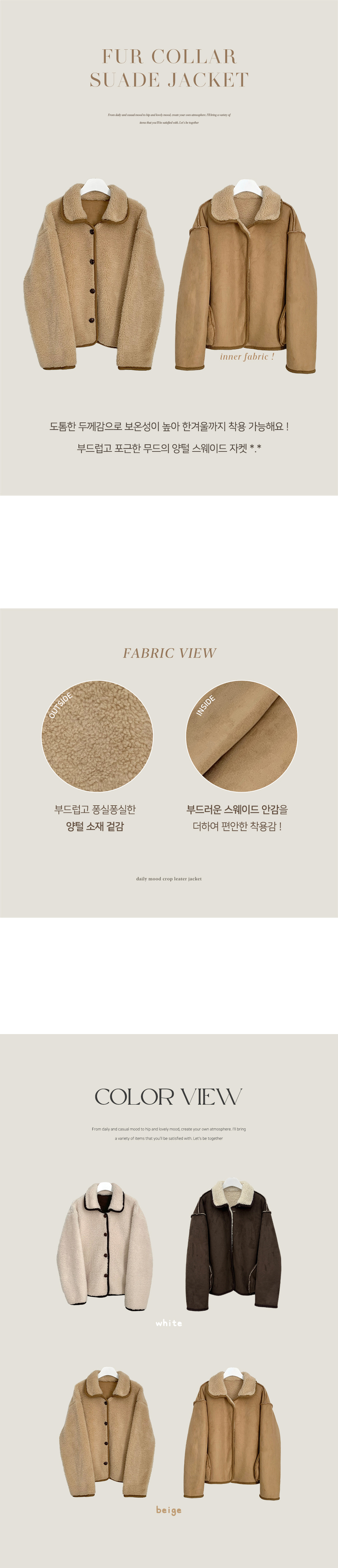 SJK14689 양털 뽀글이 배색 아방핏 스웨이드 무스탕 퍼자켓 후리스 점퍼