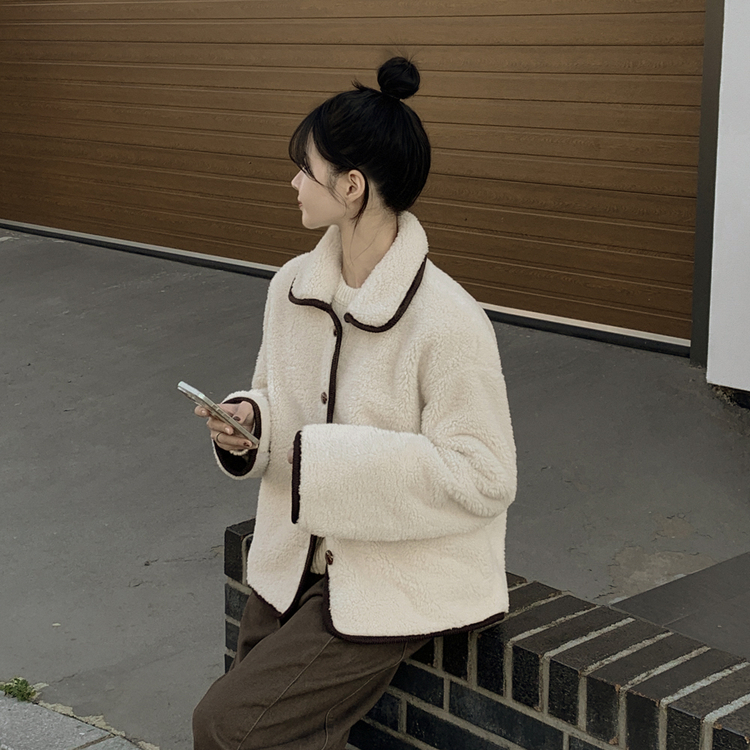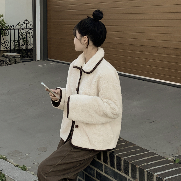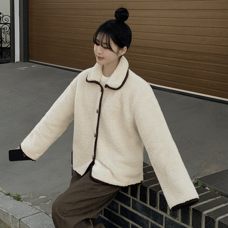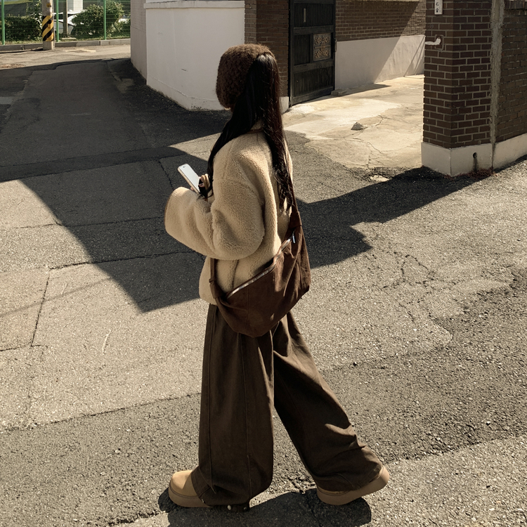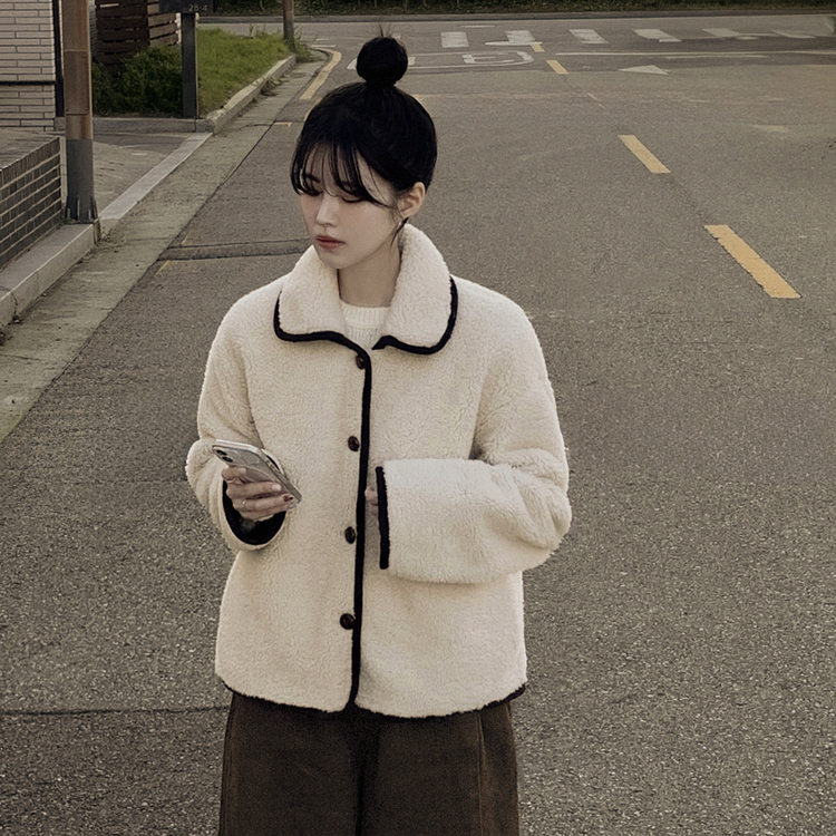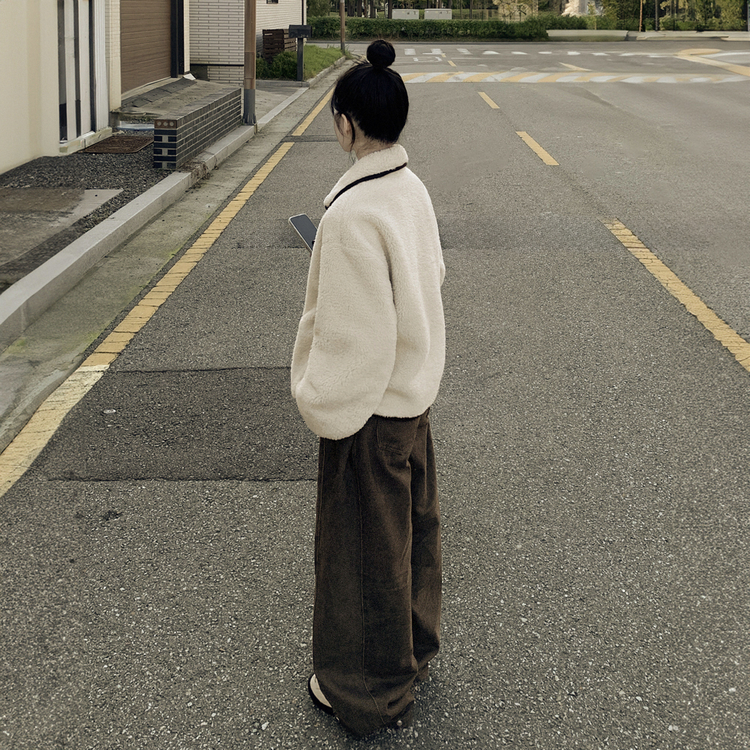 SJK14689 양털 뽀글이 배색 아방핏 스웨이드 무스탕 퍼자켓 후리스 점퍼