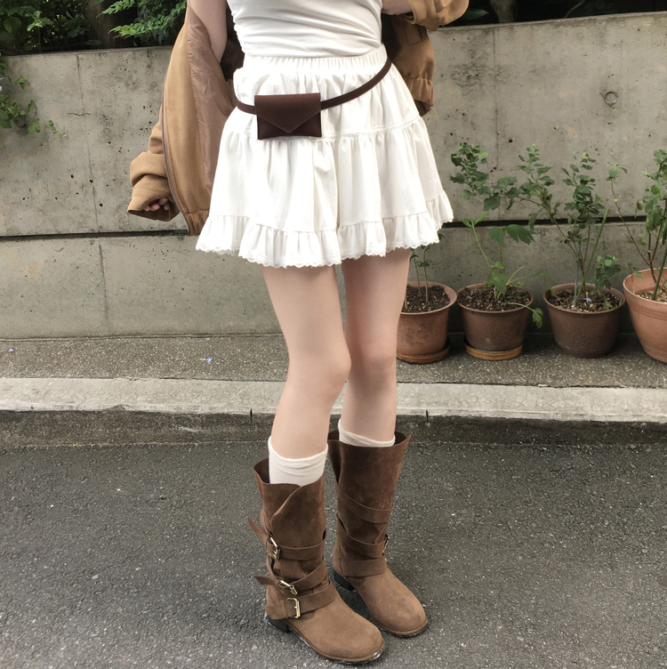 SSK24800 제이드 스웨이드 코듀로이 레이스 캉캉 밴딩 미니 스커트