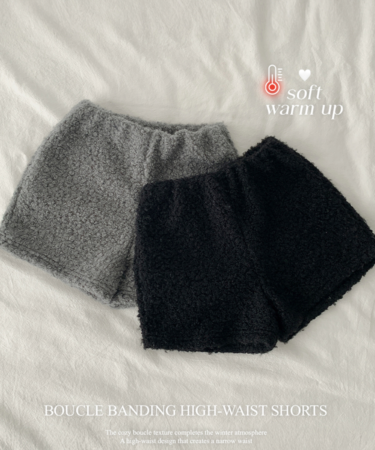 SPS37043 헤라 뽀글이 부클 허리밴딩 하이웨스트 숏팬츠
