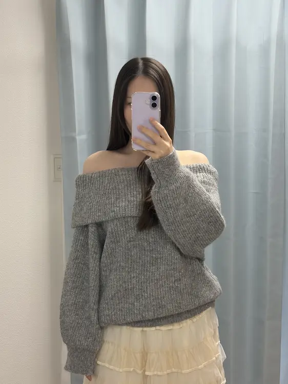 SNT32929 레이티 보카시 여리 오버핏 오프숄더 니트