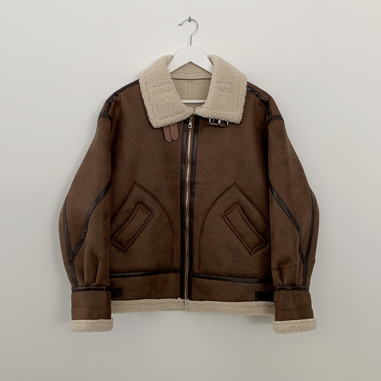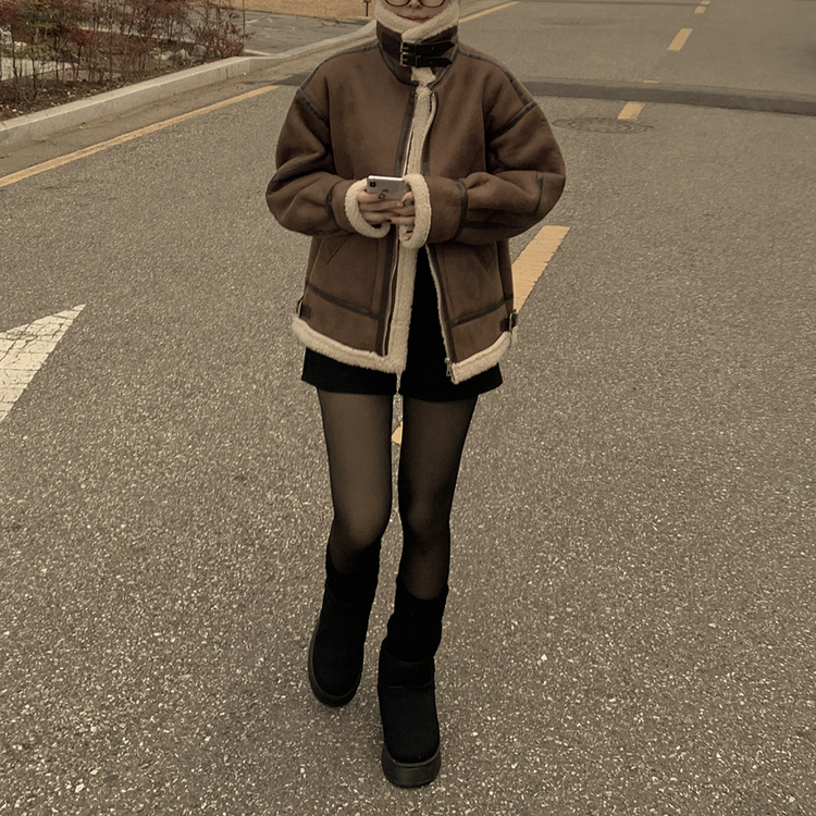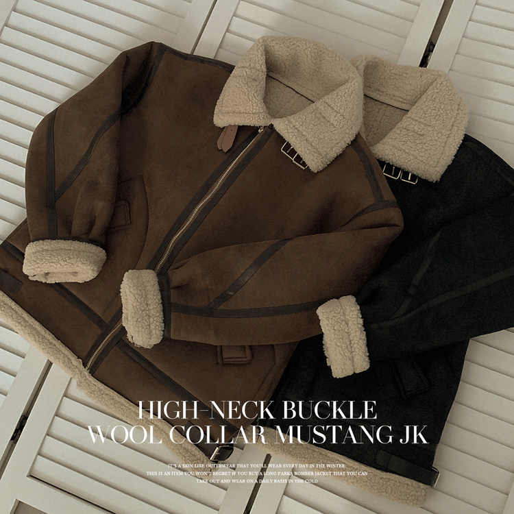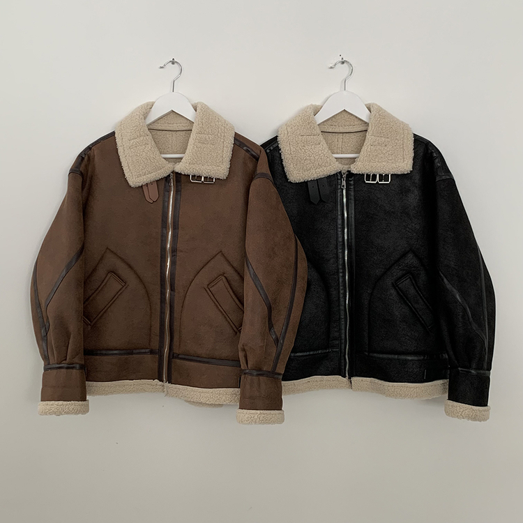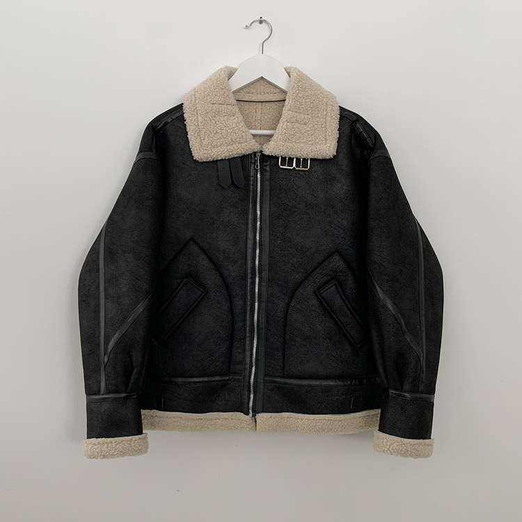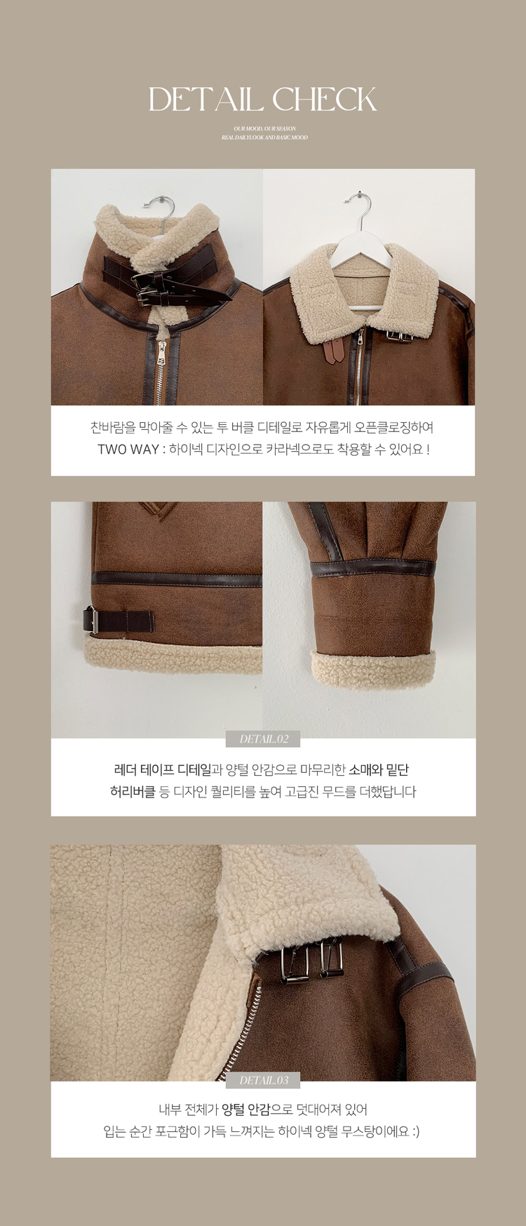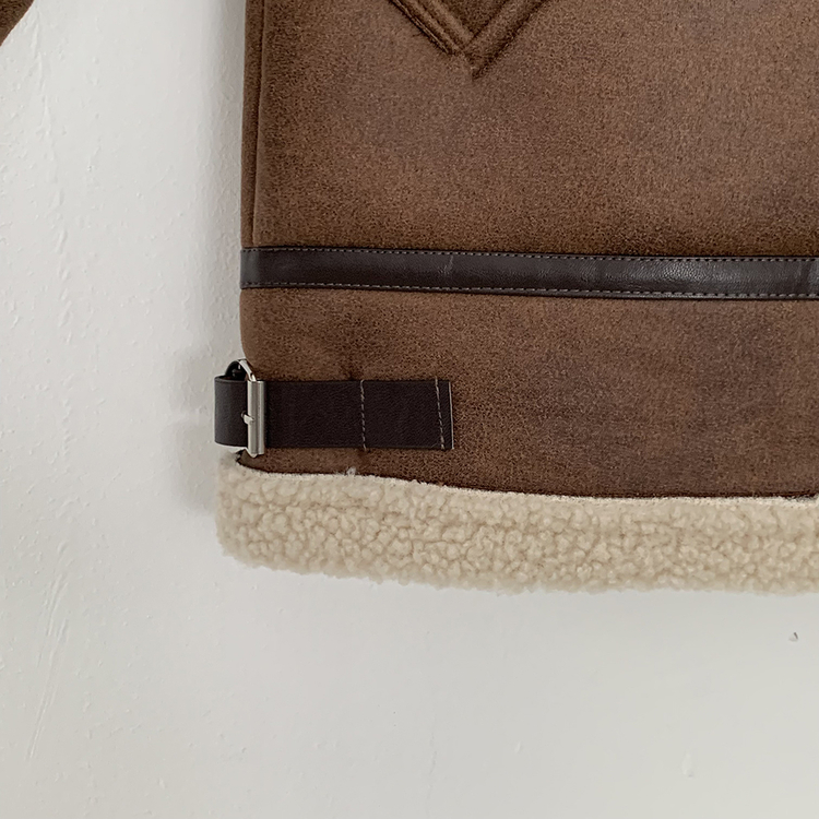 SJP18327 오버핏 양털안감 빈티지 레더 스웨이드 퍼카라 버클 무스탕 자켓