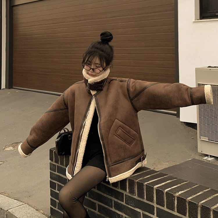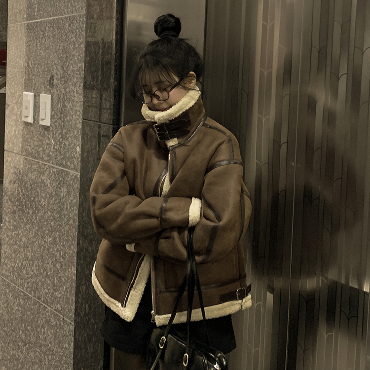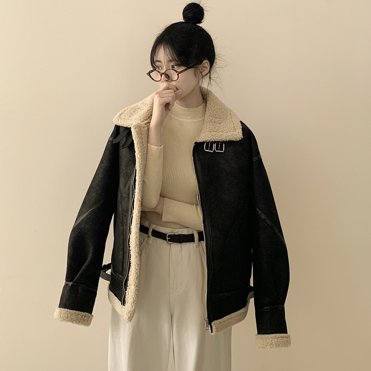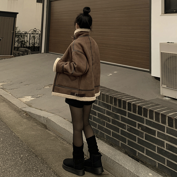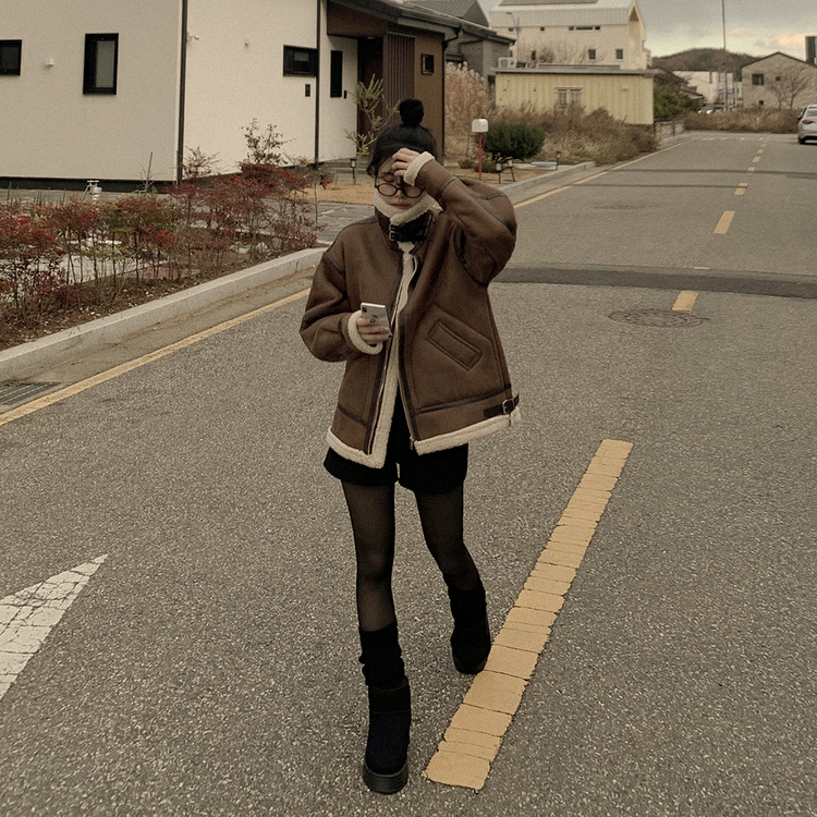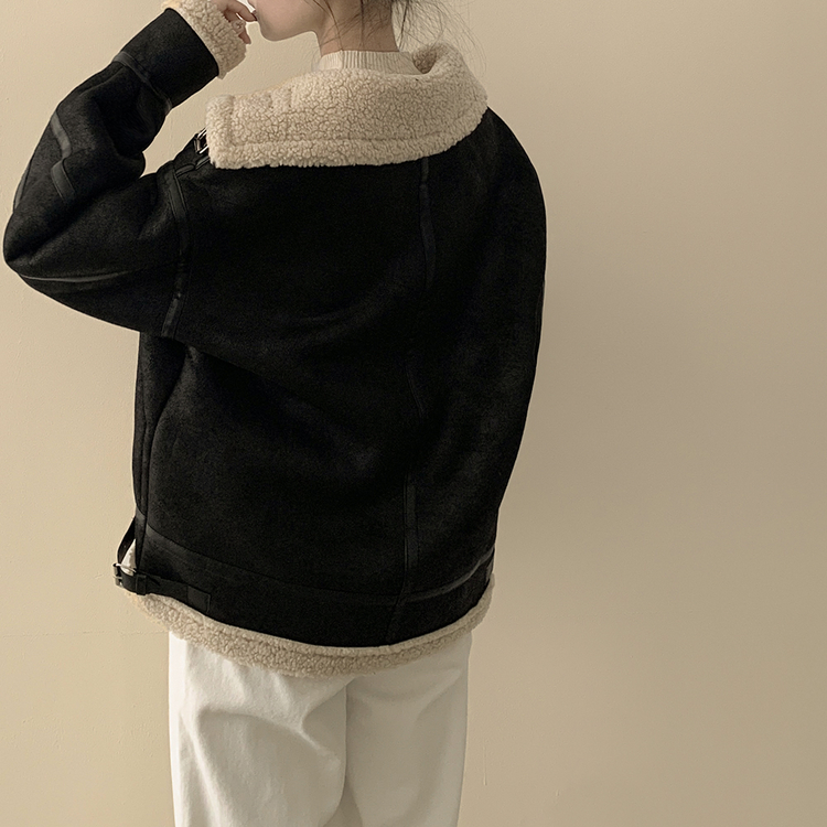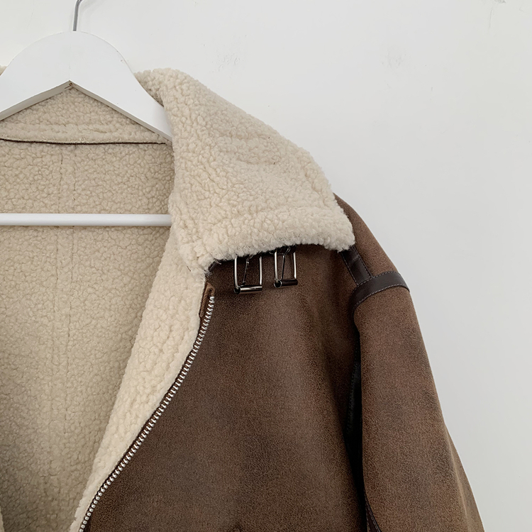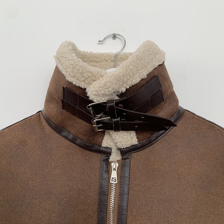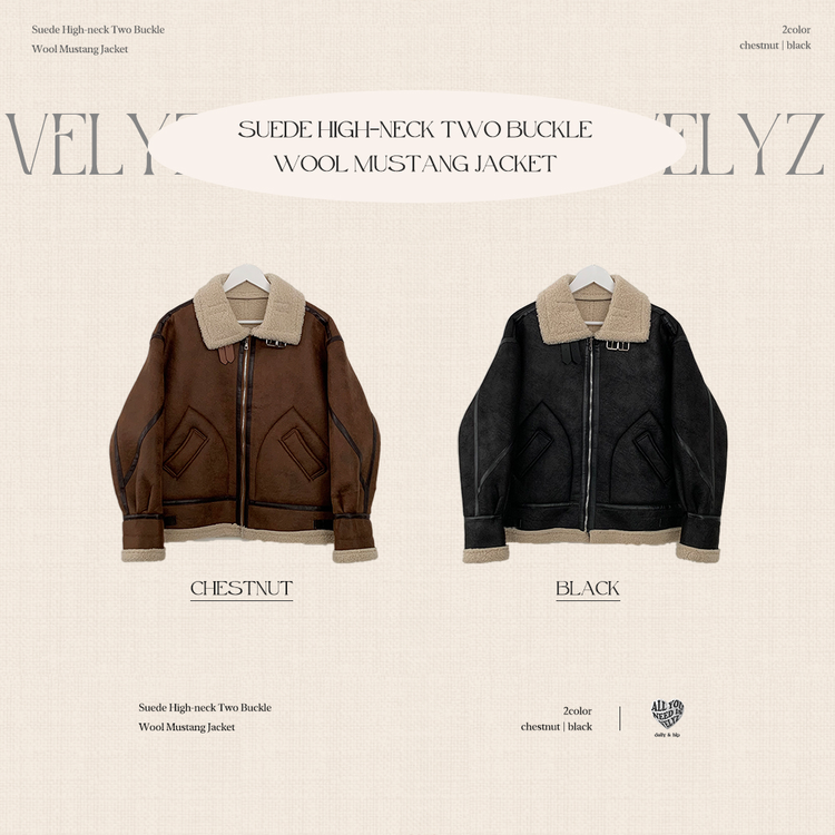 SJP18327 오버핏 양털안감 빈티지 레더 스웨이드 퍼카라 버클 무스탕 자켓