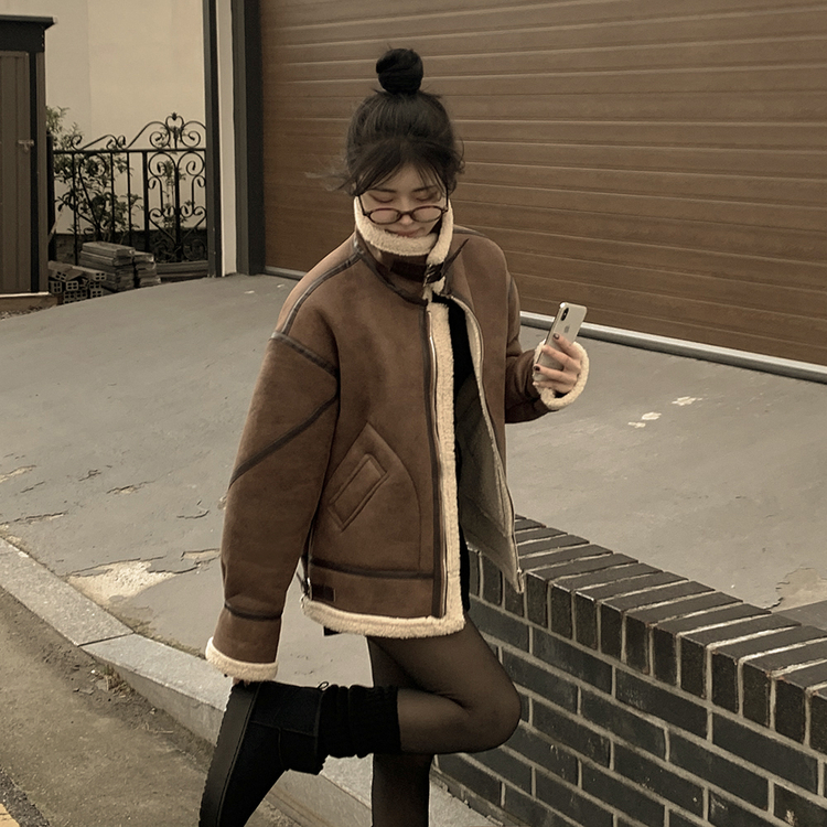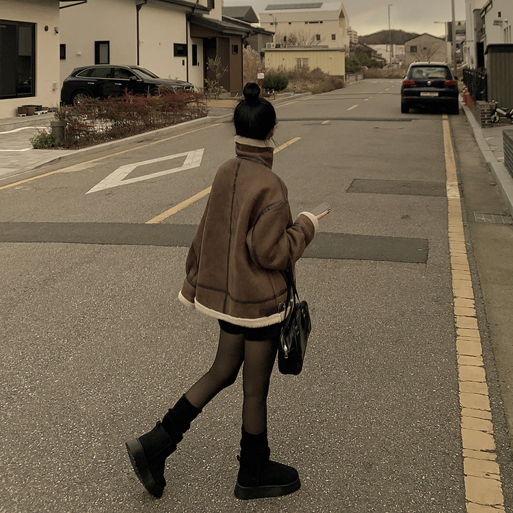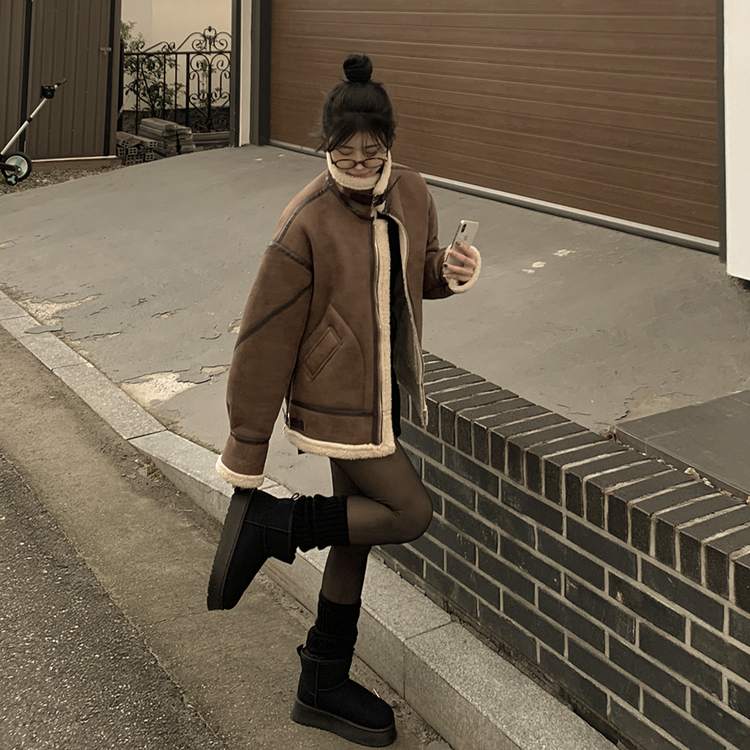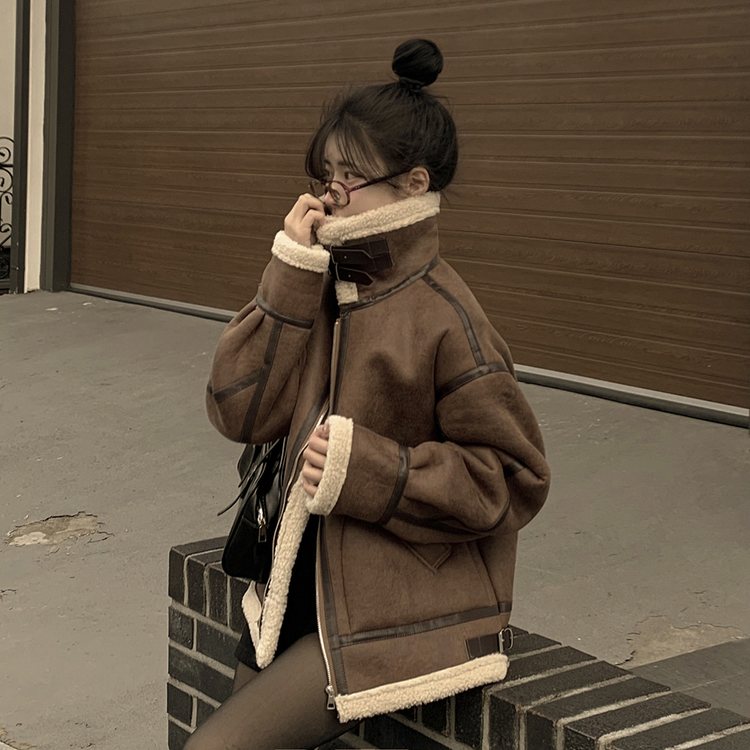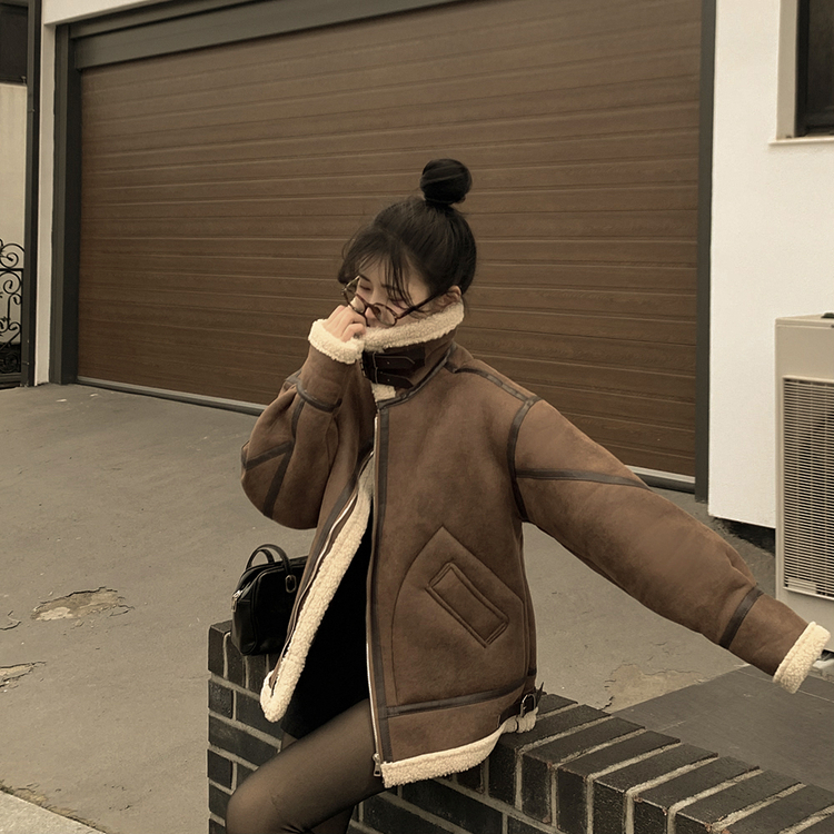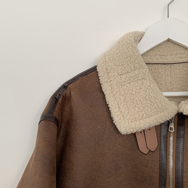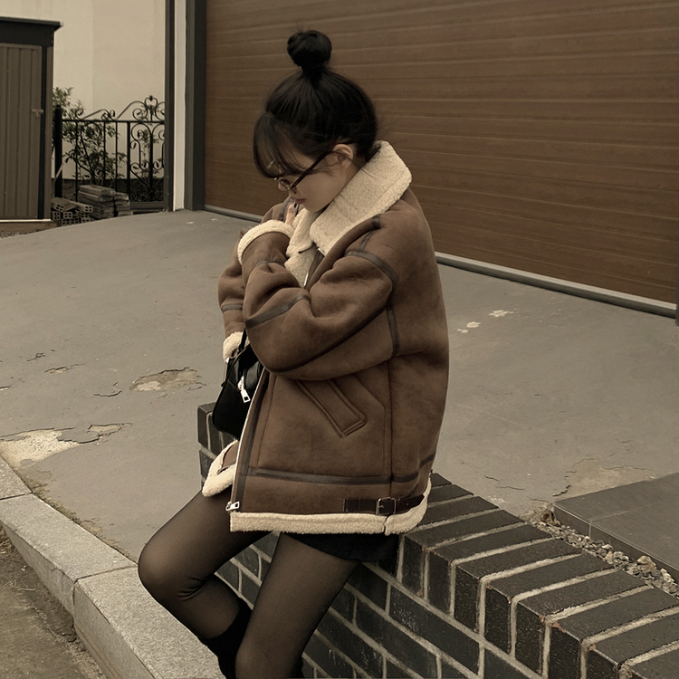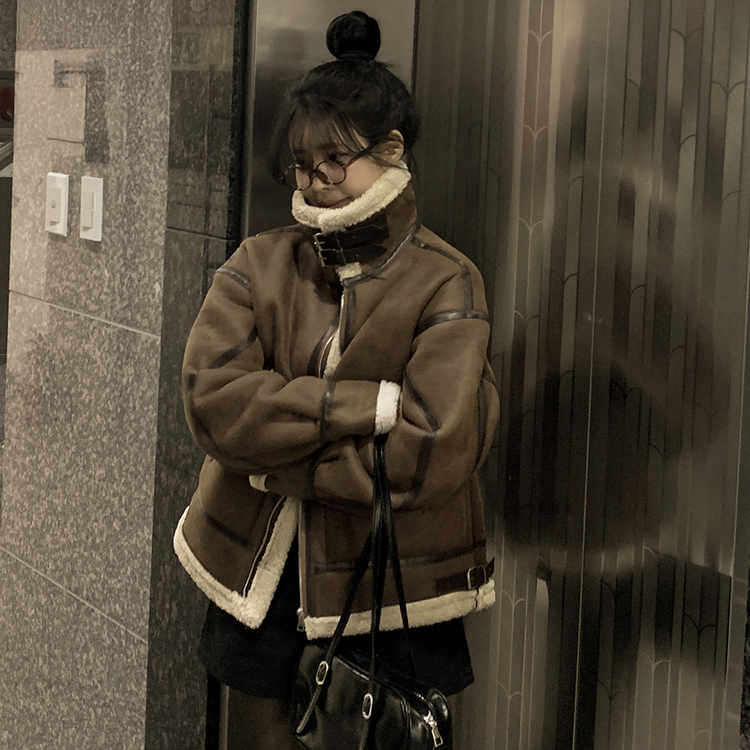 SJP18327 오버핏 양털안감 빈티지 레더 스웨이드 퍼카라 버클 무스탕 자켓