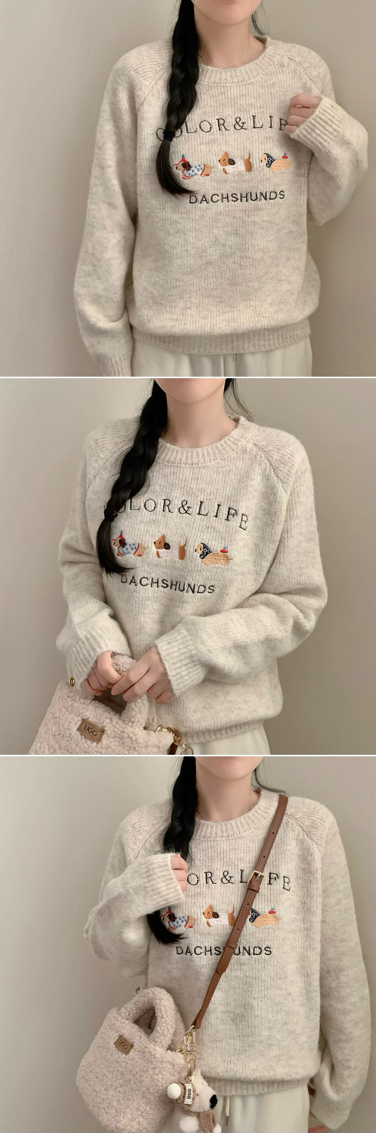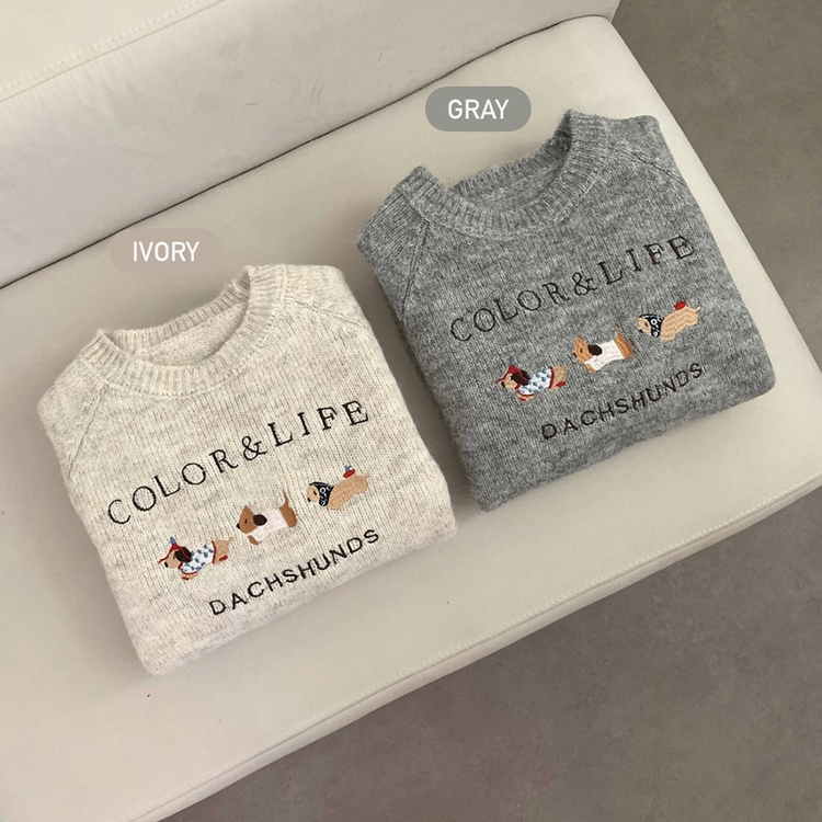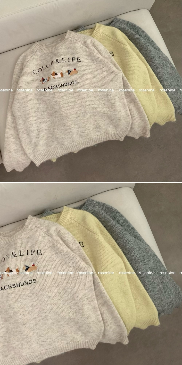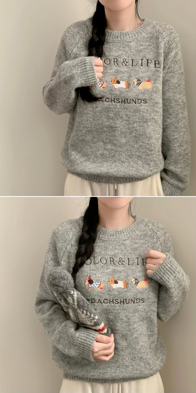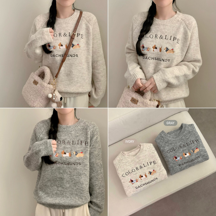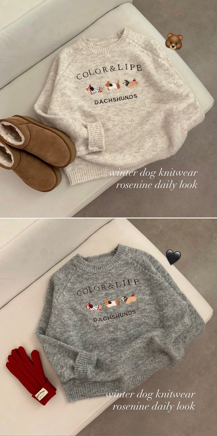 SNT32975 댕댕통통 자수 라운드넥 긴팔 니트 강아지 멍멍이 겨울 상의 겨울옷 크리스마스 연말룩