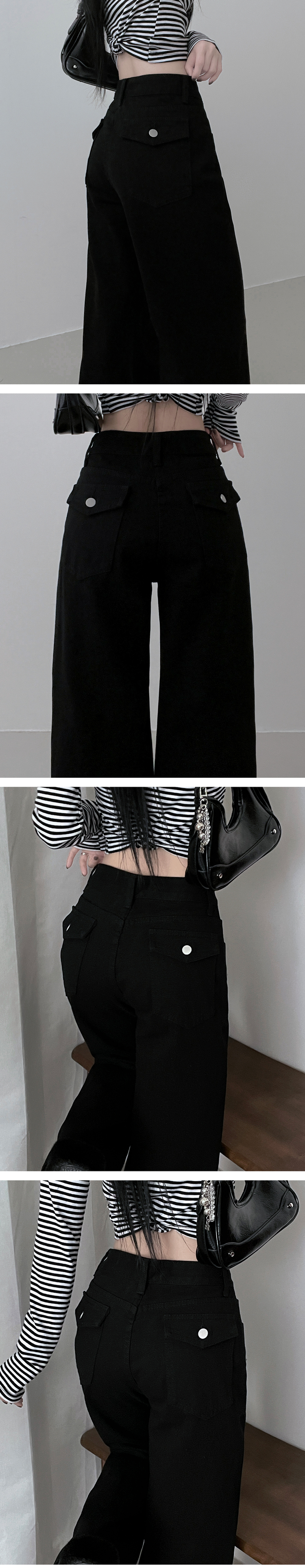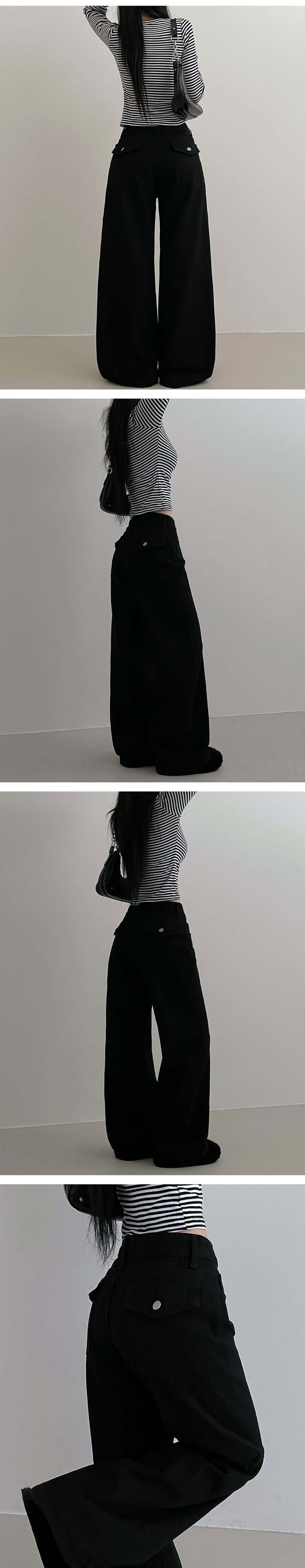 SPS37105 기모버전블랙코튼뒷포켓포인트일자와이드팬츠