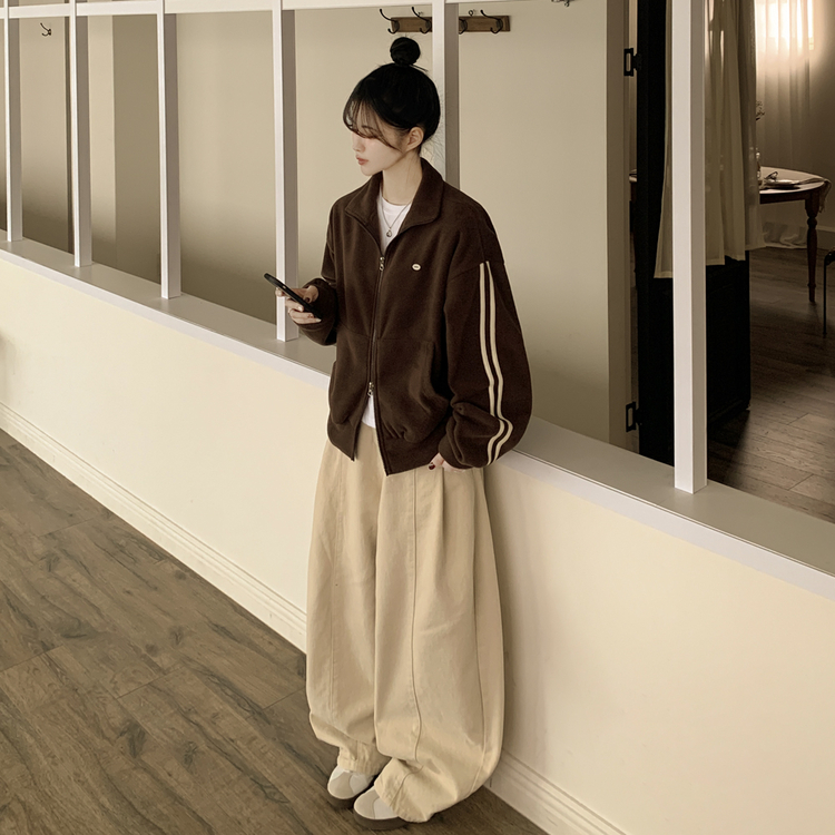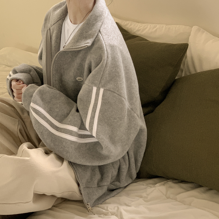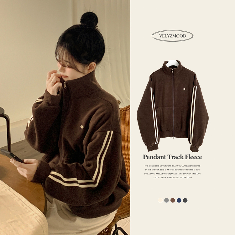 SJP18336 양면 후리스 펜던트 와펜 포인트 트랙 두줄 하이넥 카라 투웨이 오버핏 집업