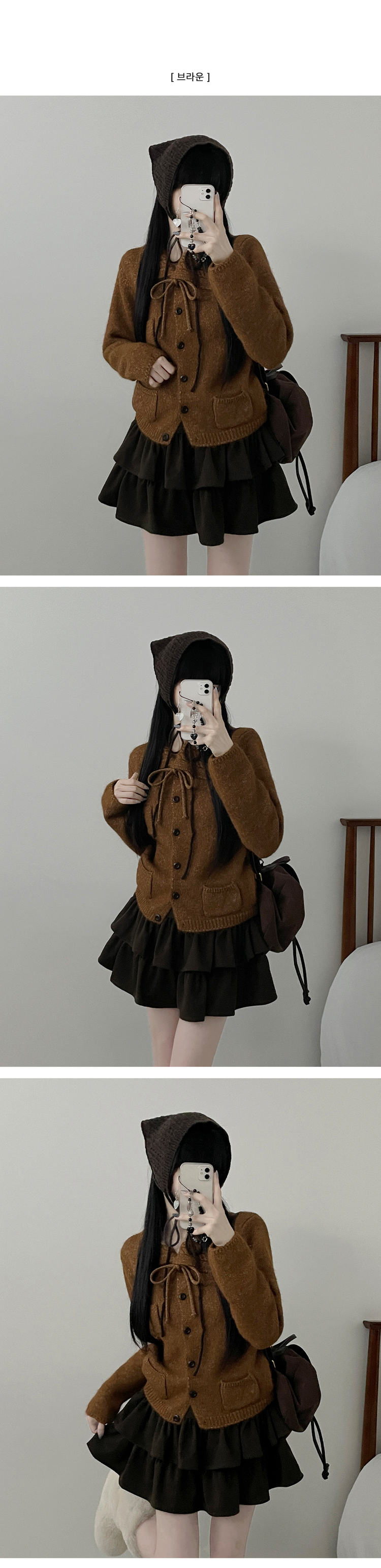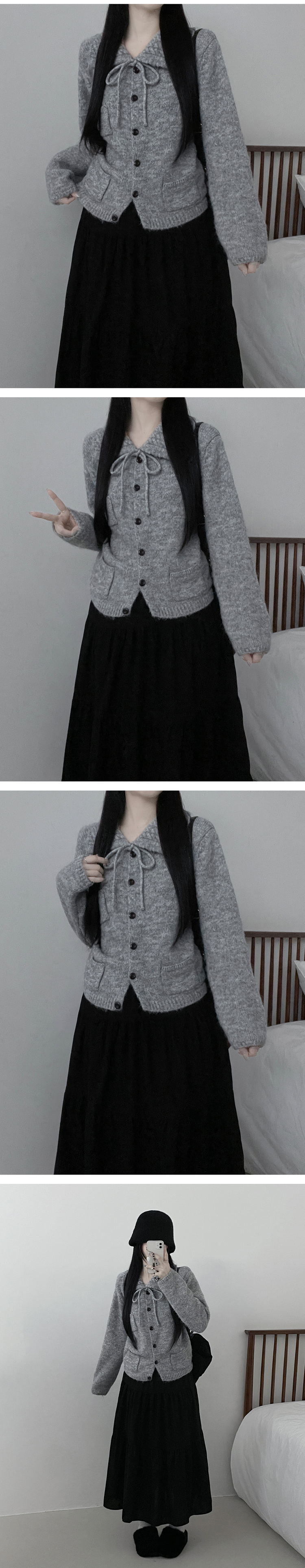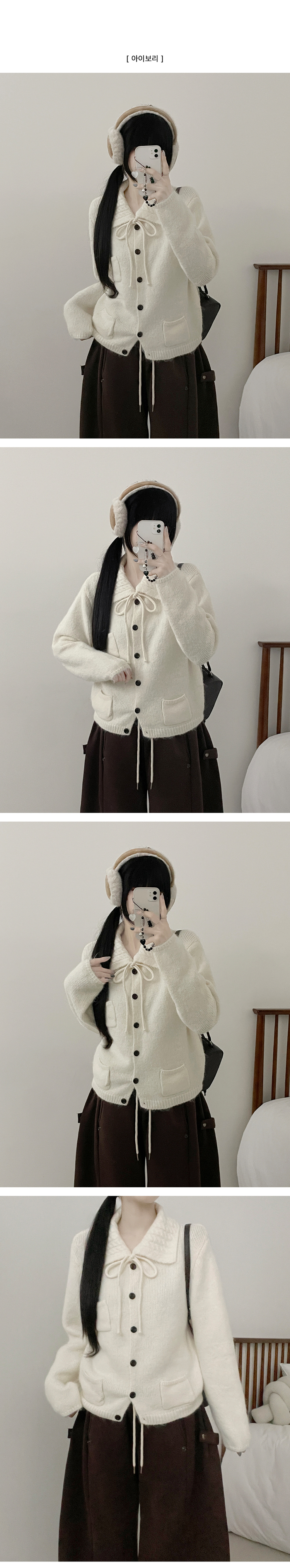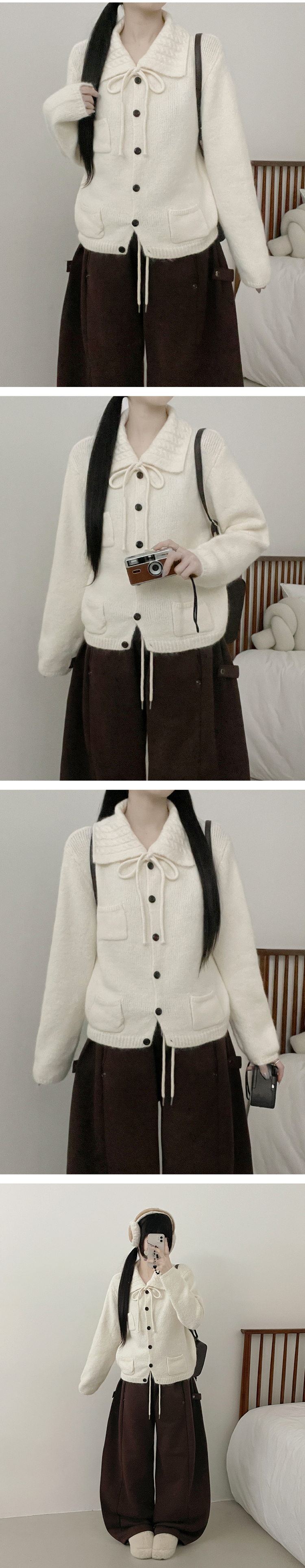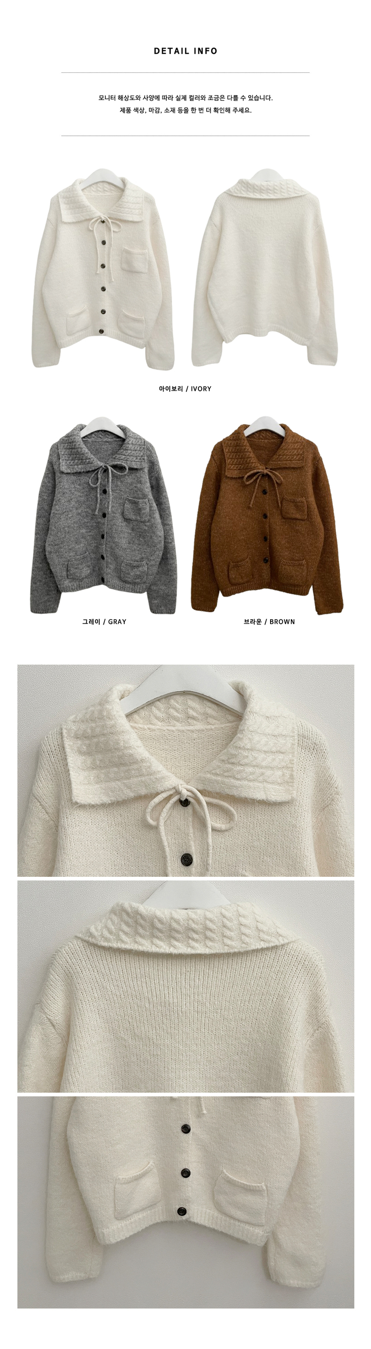 SGD29554 썸포켓꽈배기카라리본스트랩루즈핏니트가디건