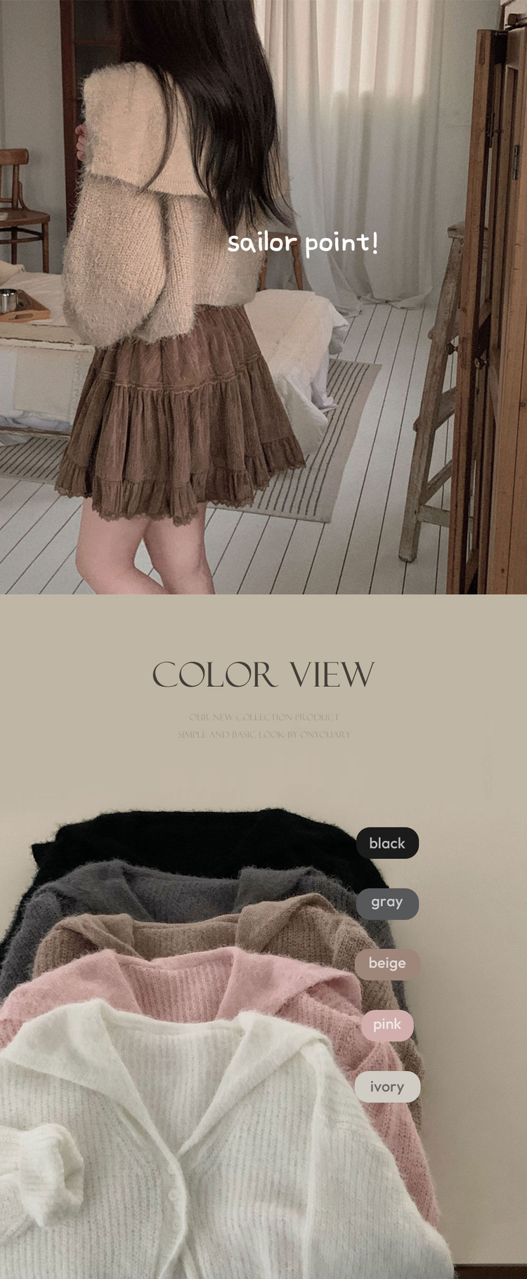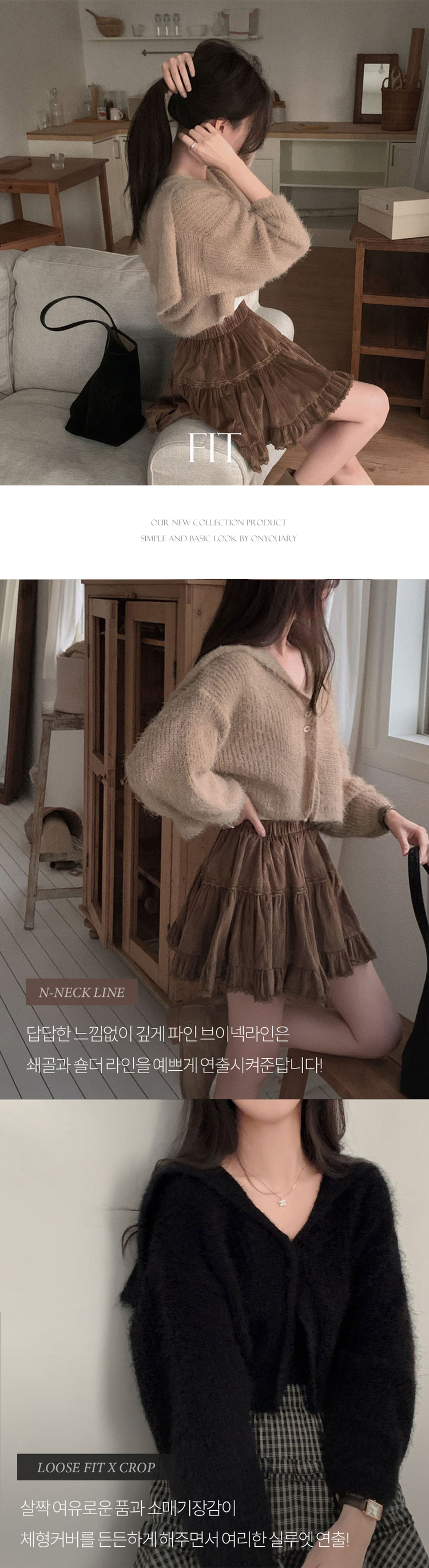 SGD29568 에겐녀 프리패스 솔잎 여리핏 세라 크롭 버튼 가디건