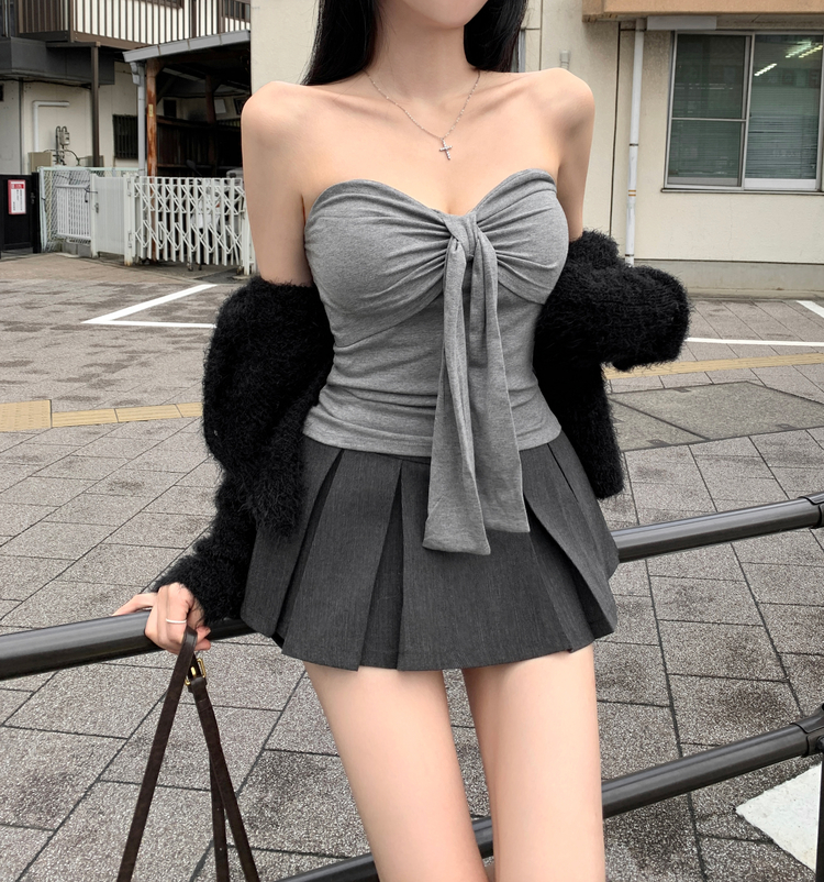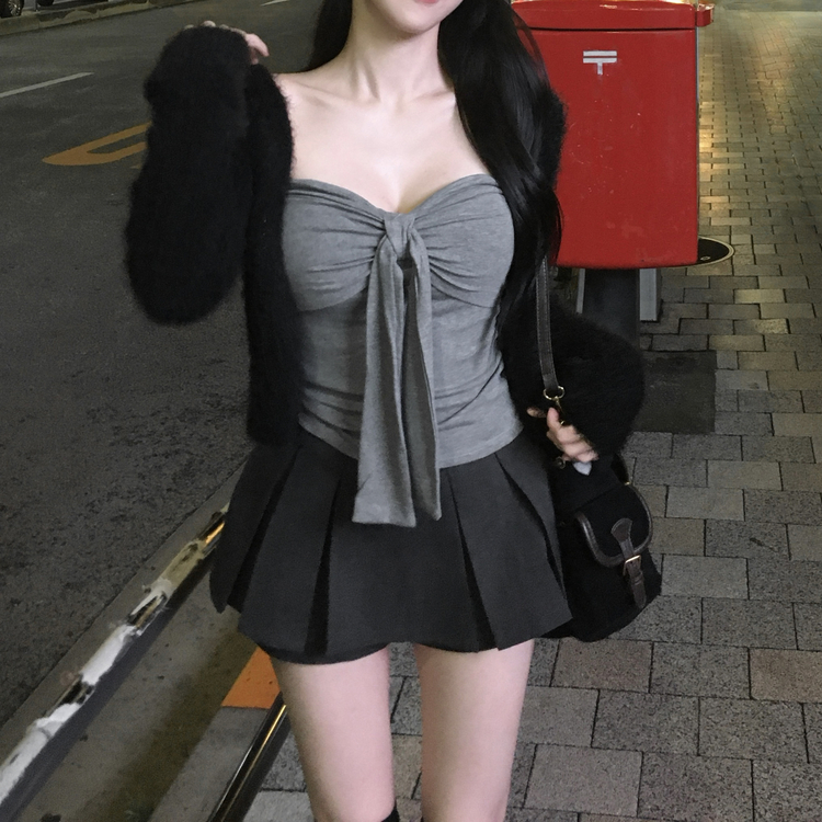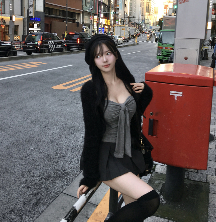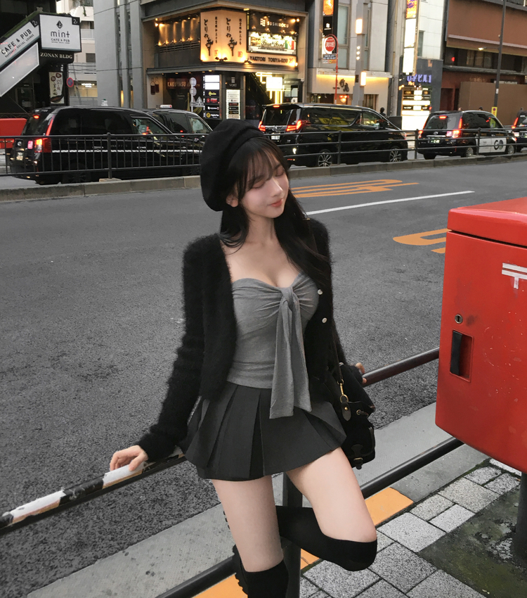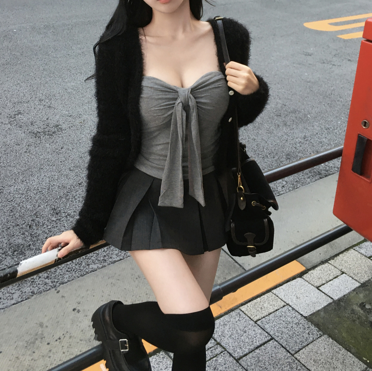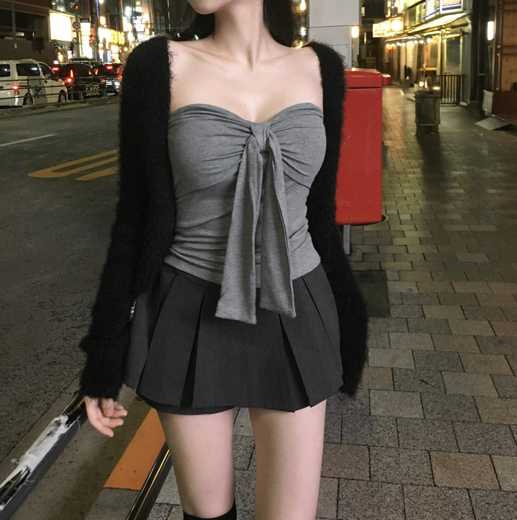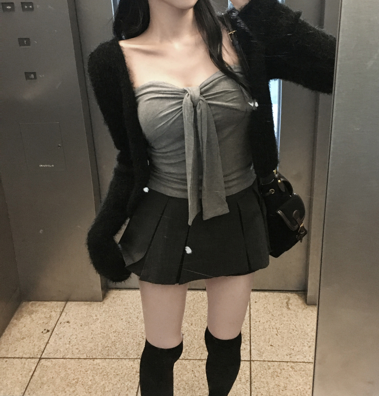 SGD29557 에니프 솔잎 퍼 아크릴 세미 크롭 슬림핏 가디건