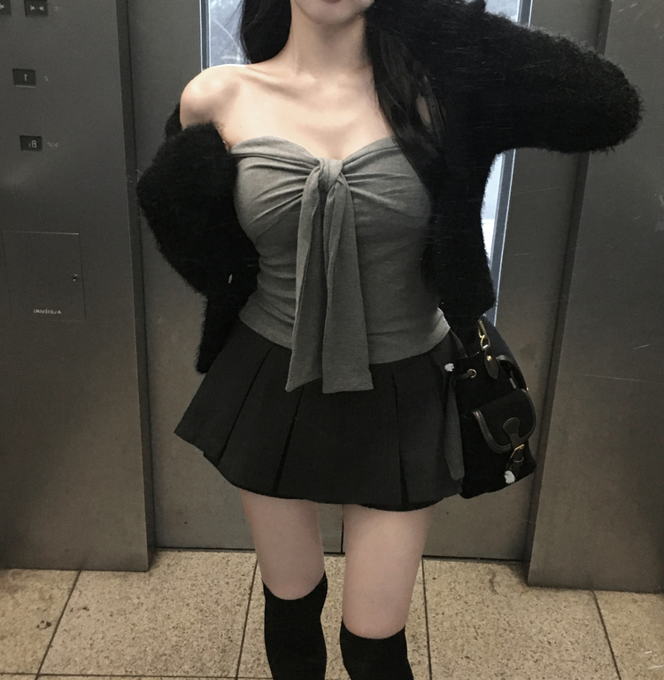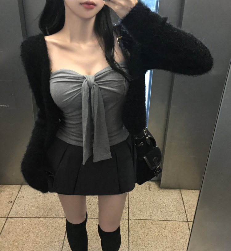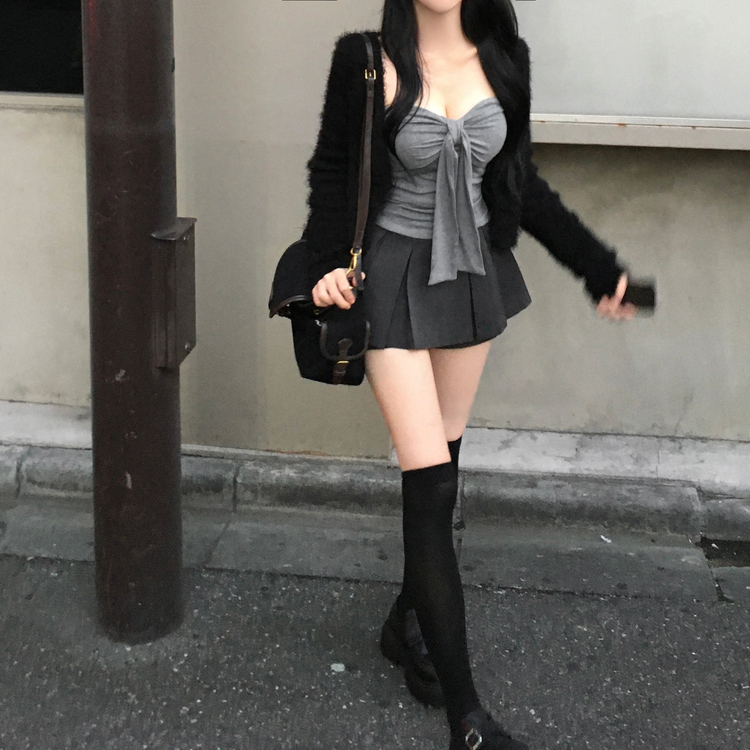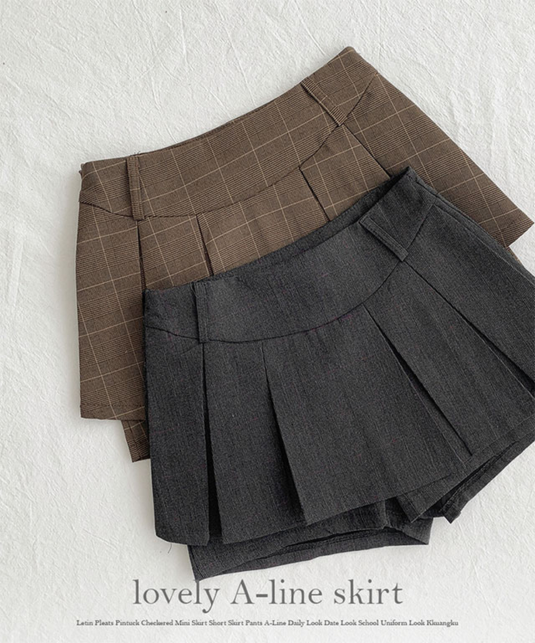 SSK24834 레틴 플리츠 핀턱 체크 미니 스커트