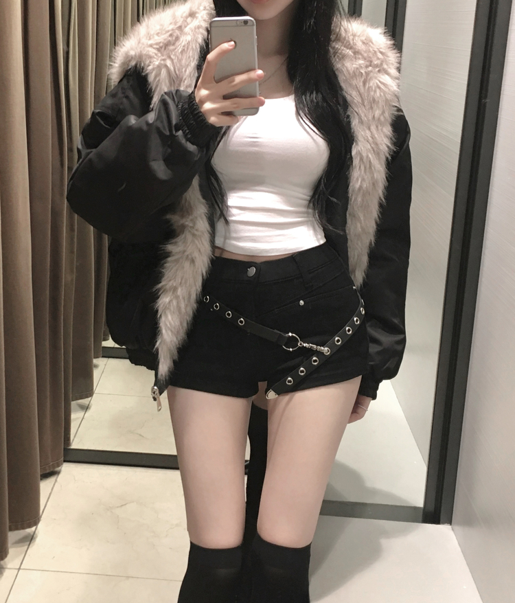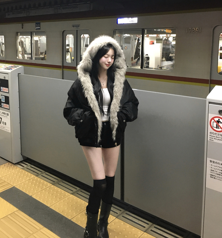 SJP18347 헤이미 부들 퍼 절개 누빔 도톰 패딩 점퍼