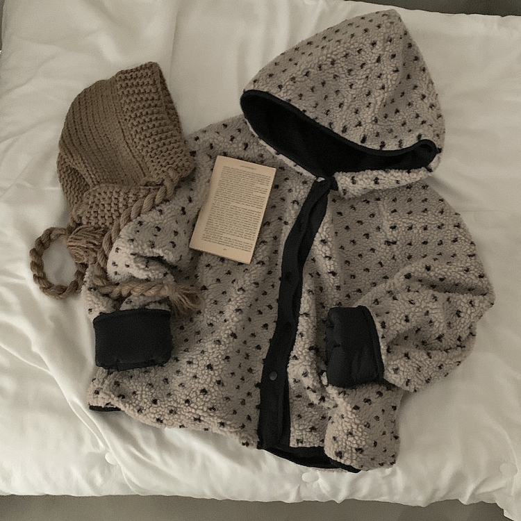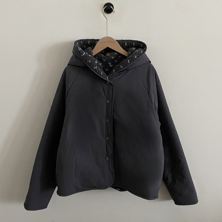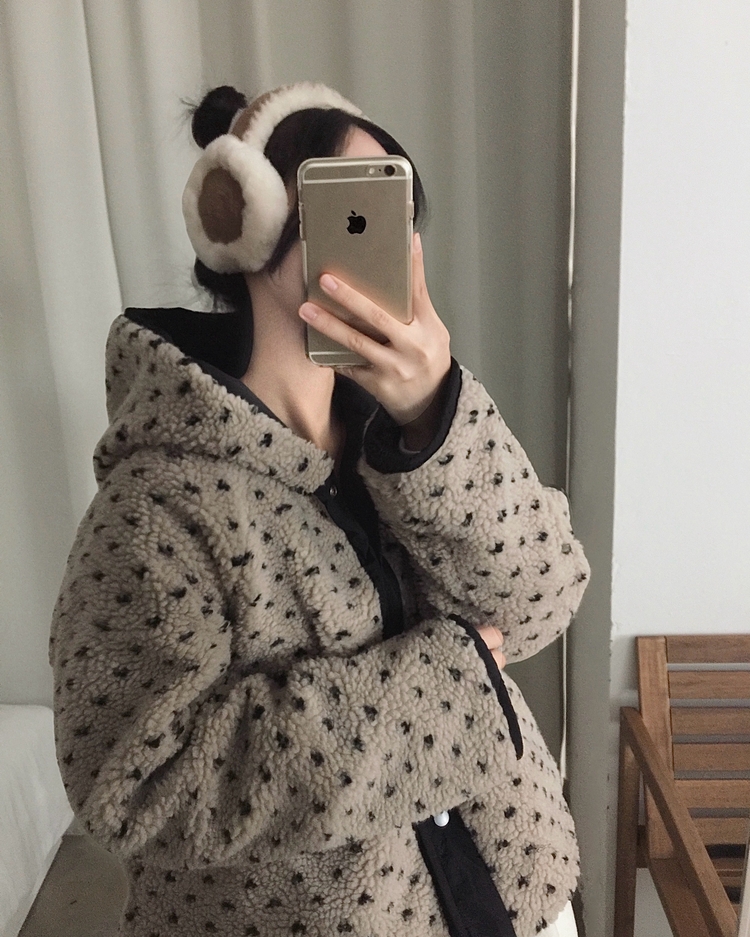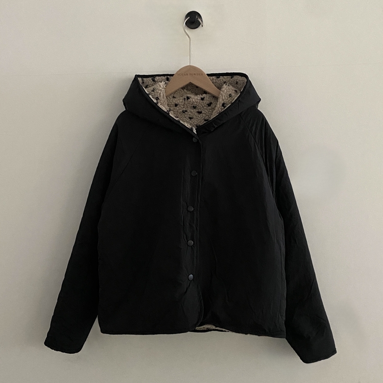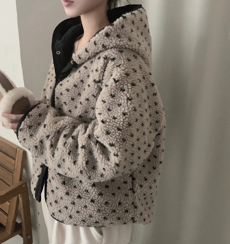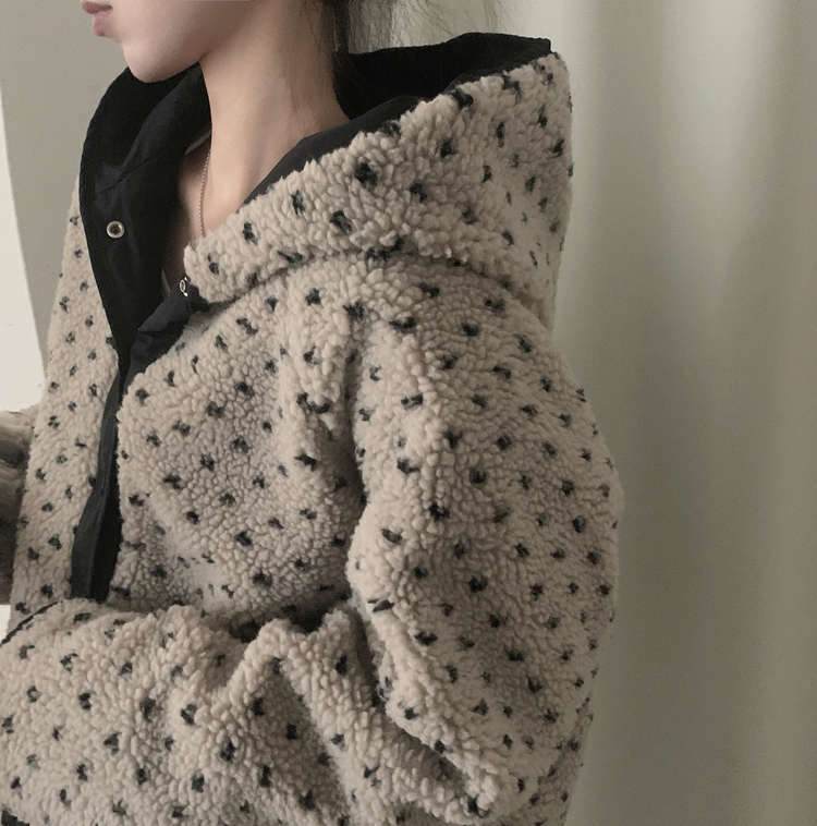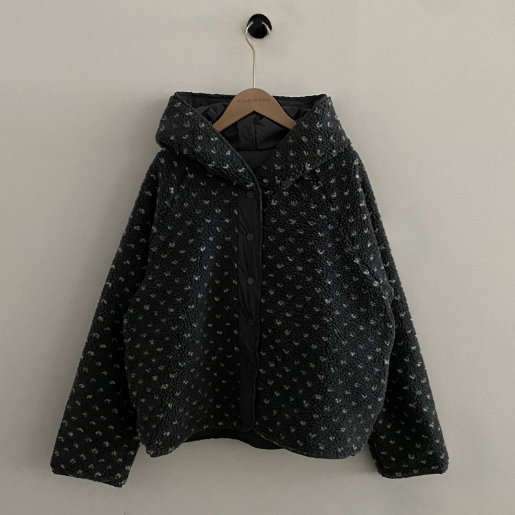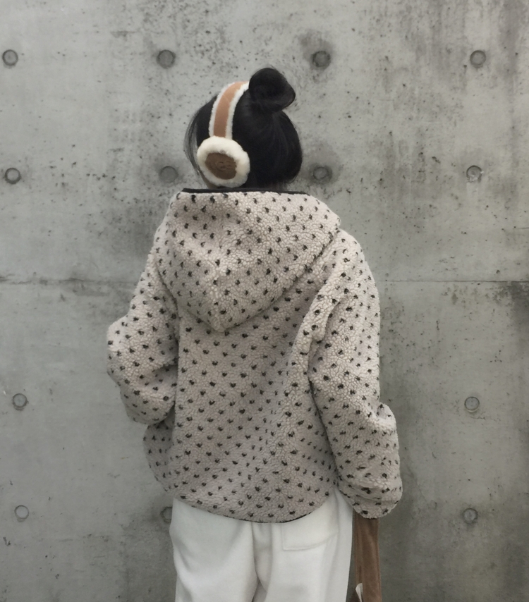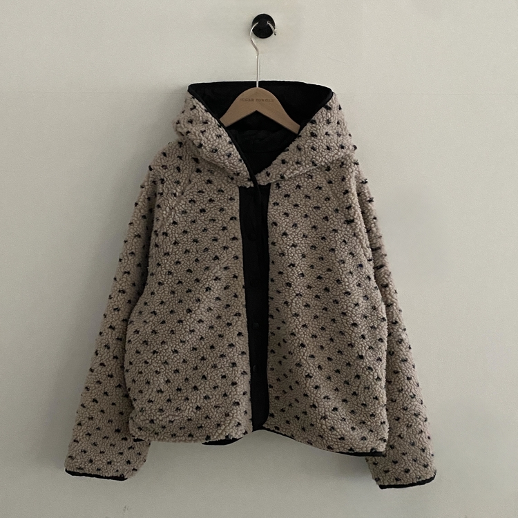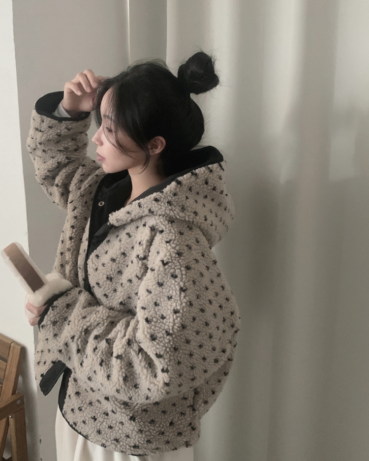 SJP18375 스노우볼 후리스 뽀글이 양털 도트 배색 리버시블 양면 후드 오버핏 패딩 점퍼