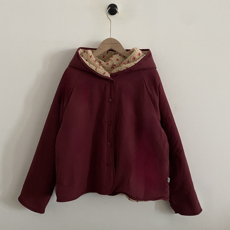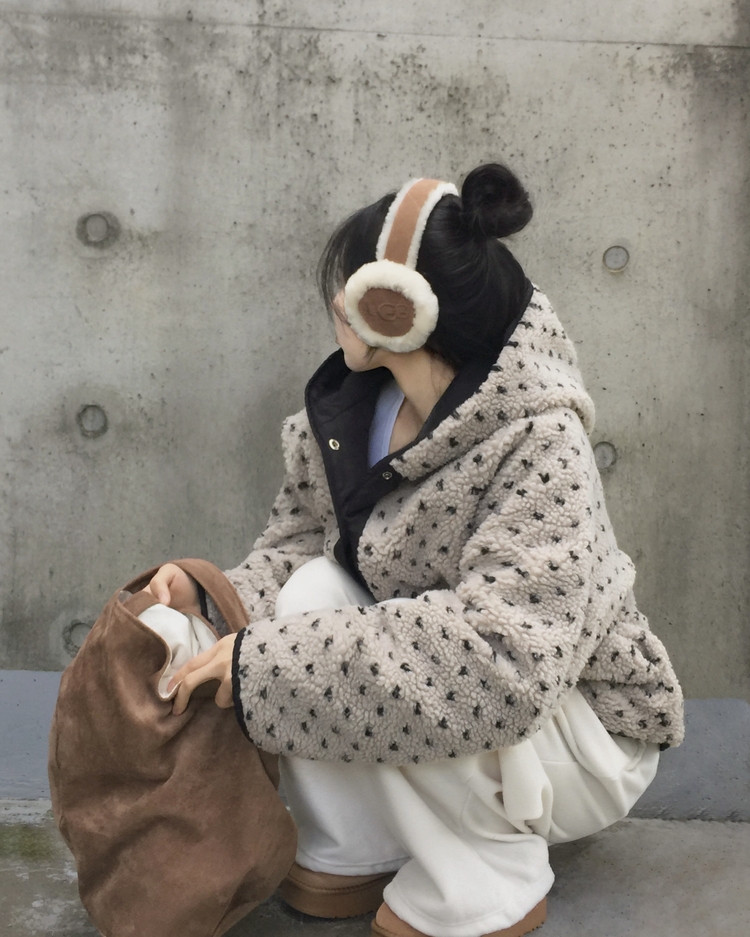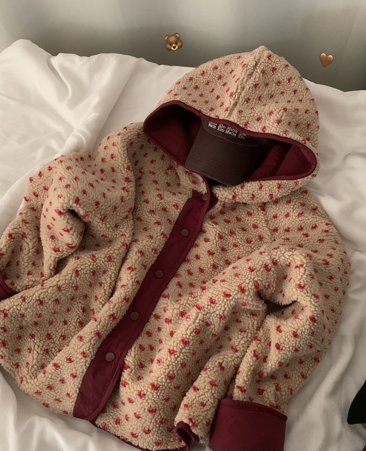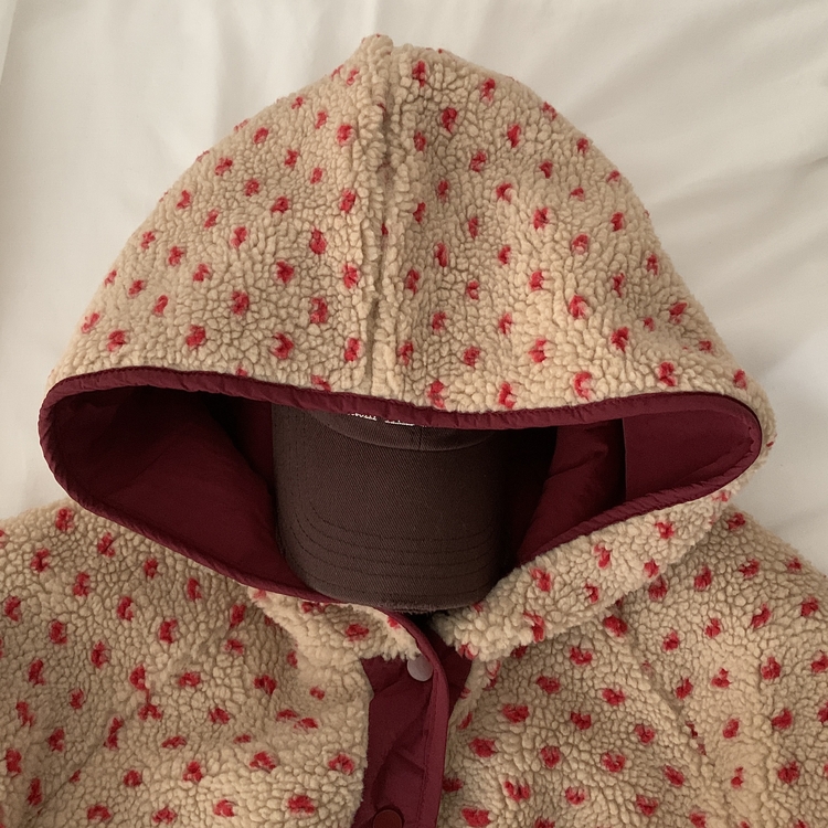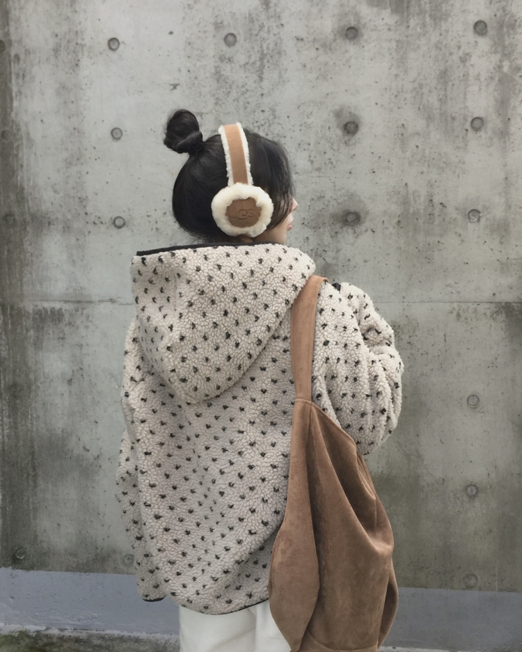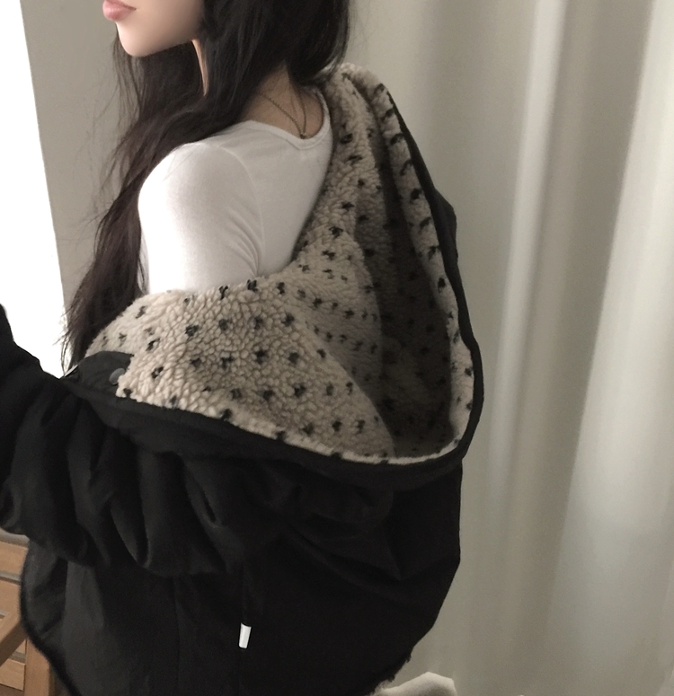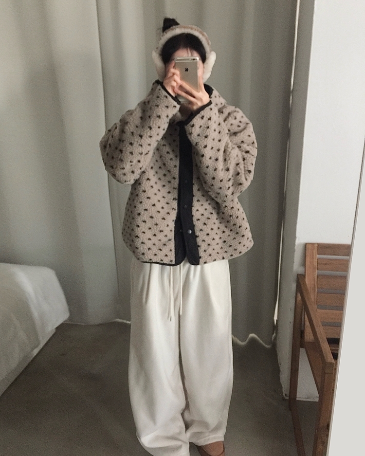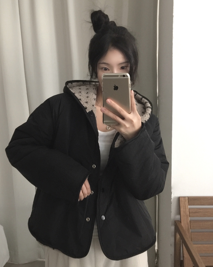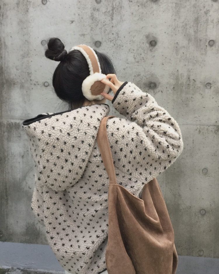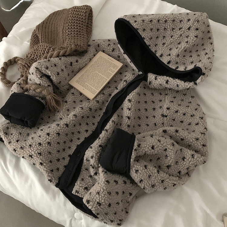 SJP18375 스노우볼 후리스 뽀글이 양털 도트 배색 리버시블 양면 후드 오버핏 패딩 점퍼