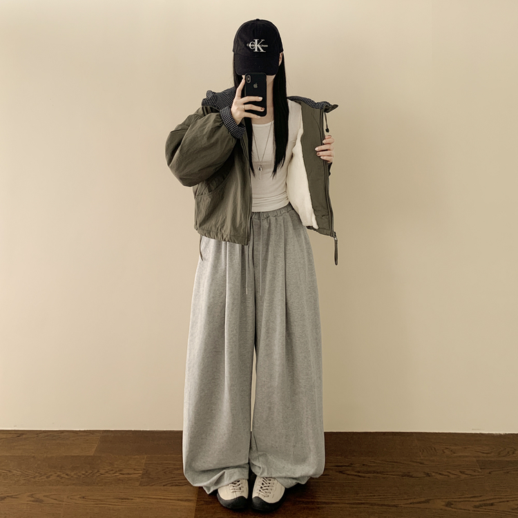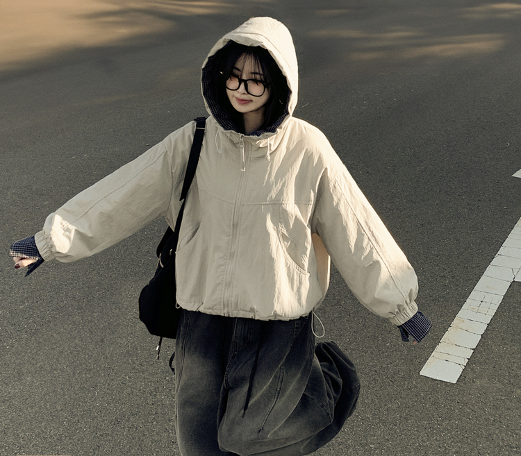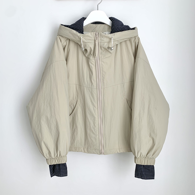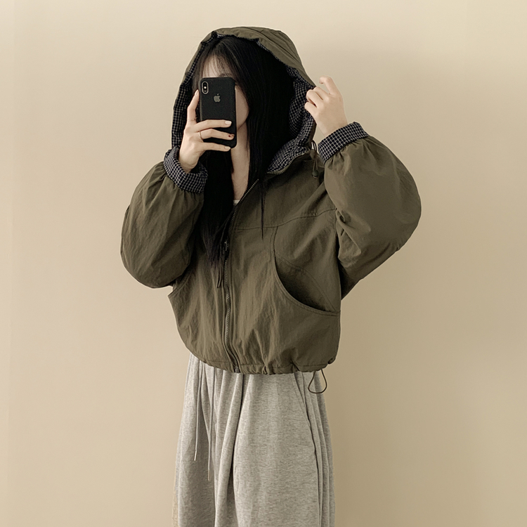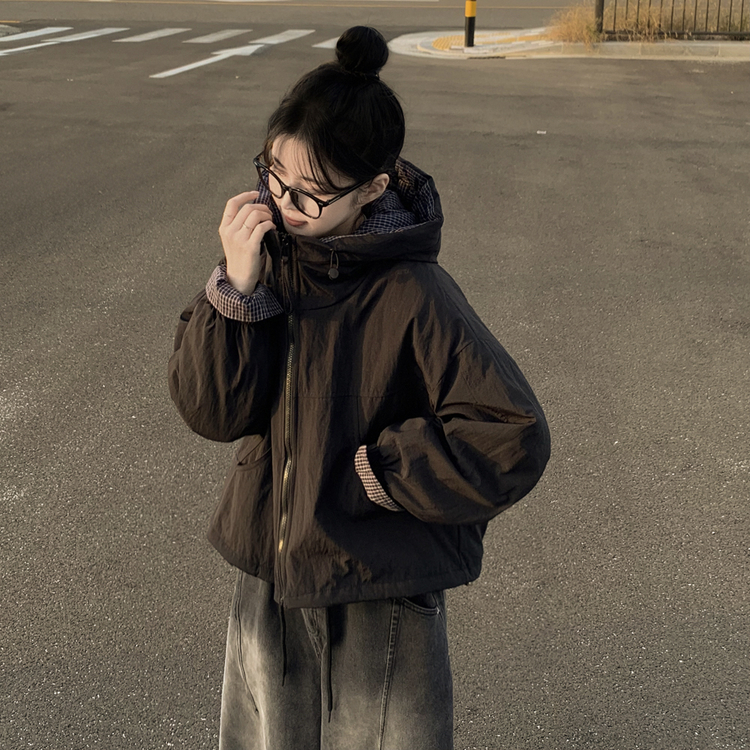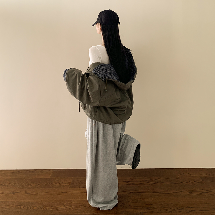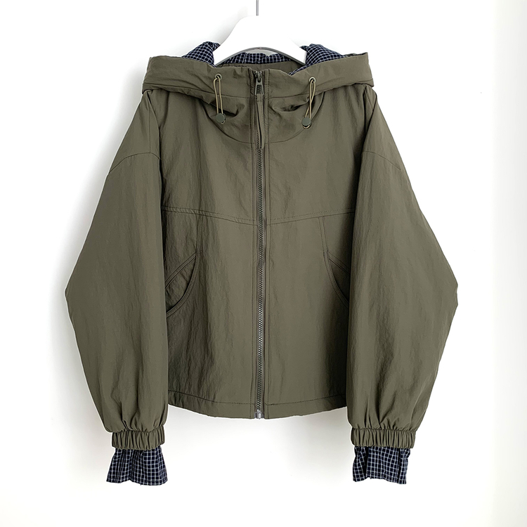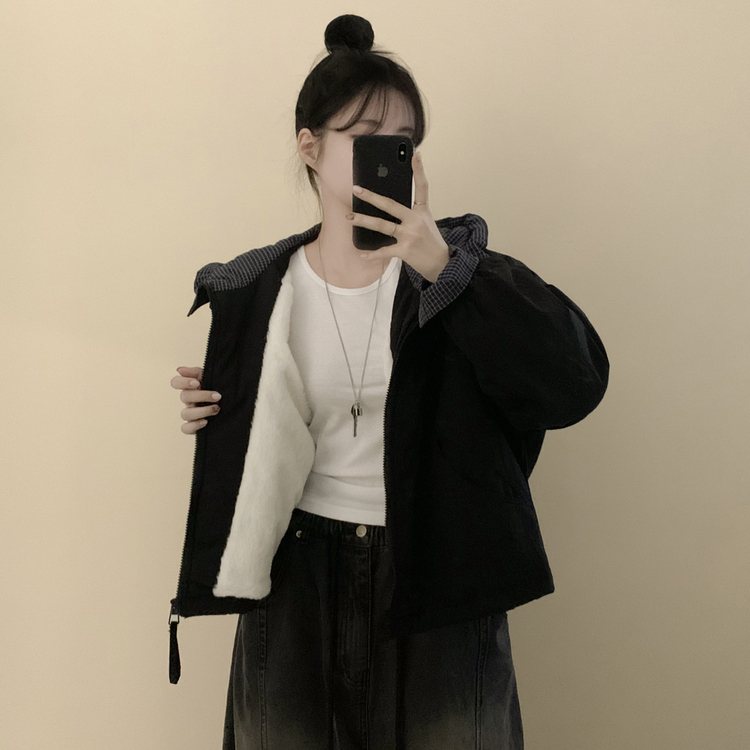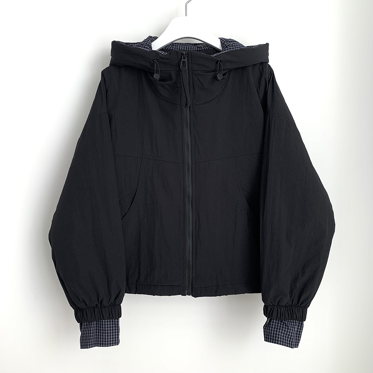 SJP18385 체크배색 양털 퍼후리스 누빔 퀄팅 오버핏 스트링 겨울점퍼 후드패딩 숏야상 자켓