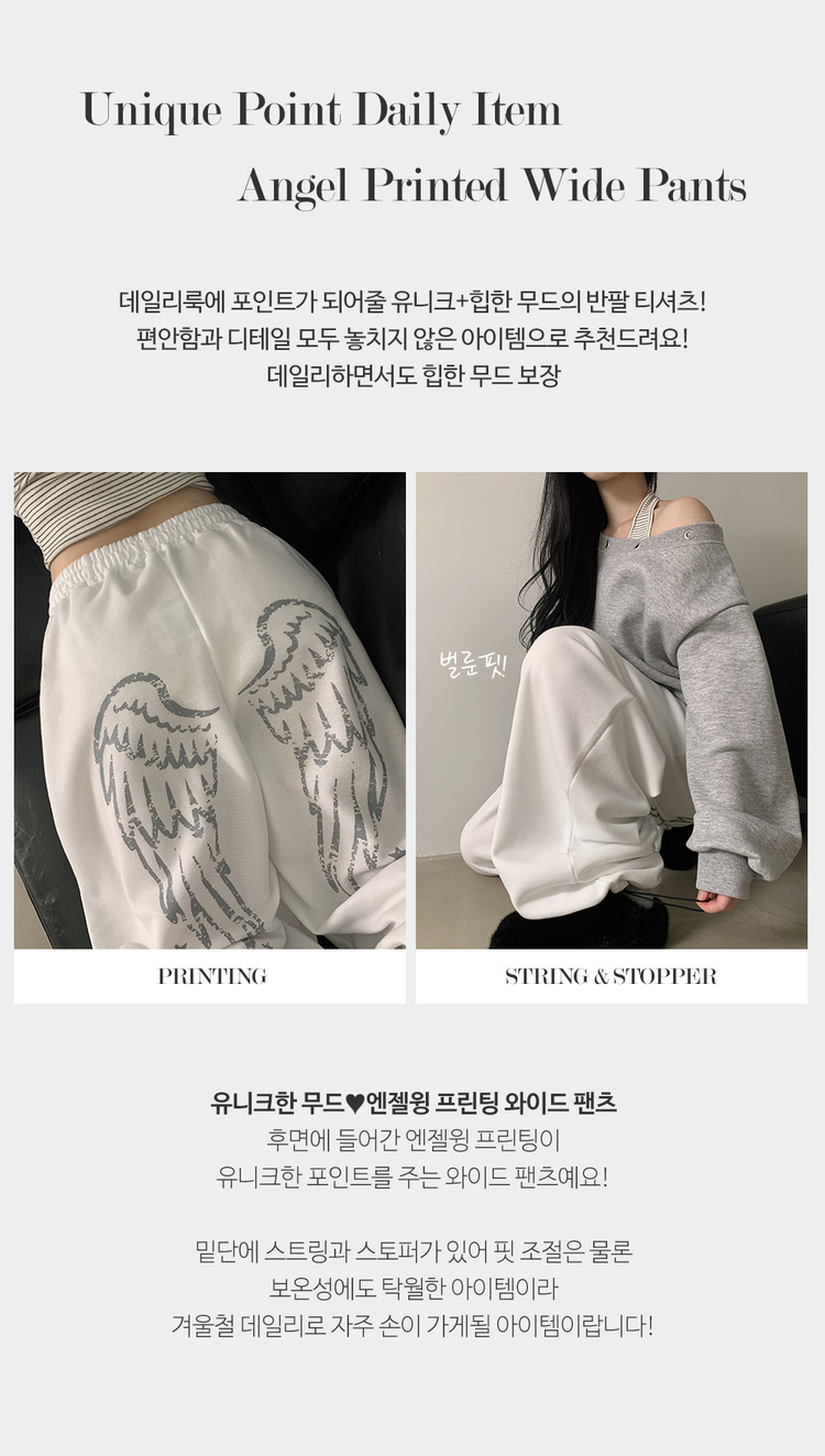 STR5457 엔디 벌룬핏 엔젤 기모 와이드 트레이닝 팬츠