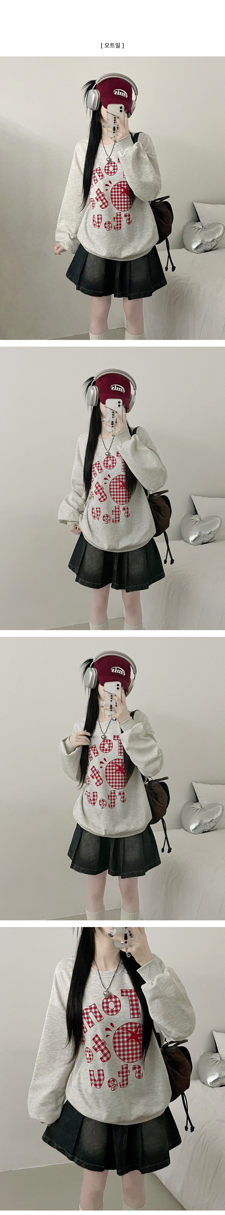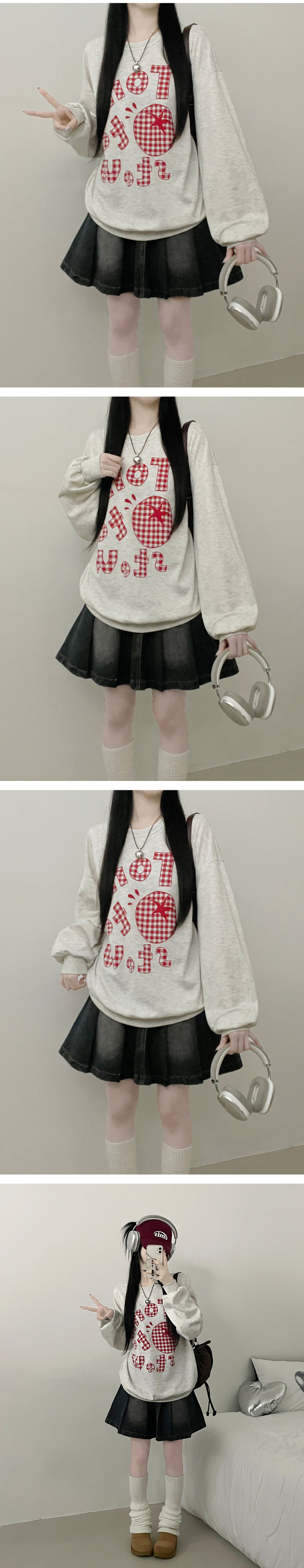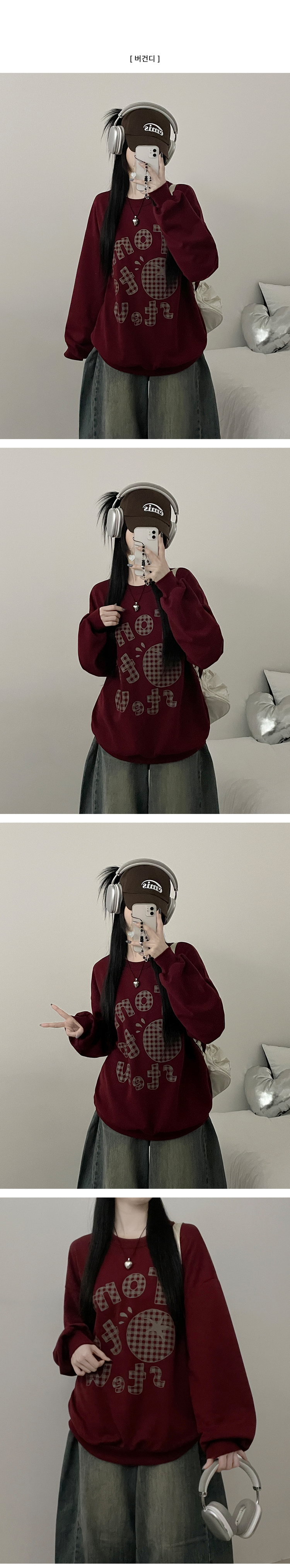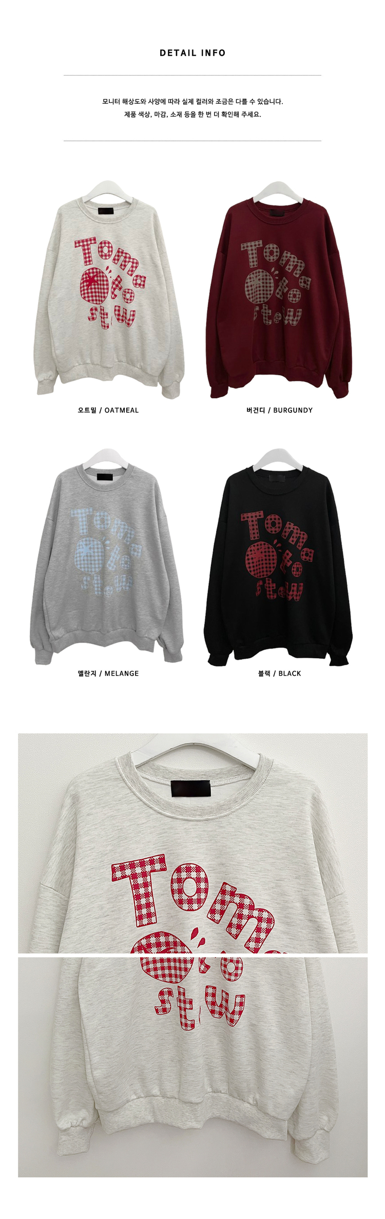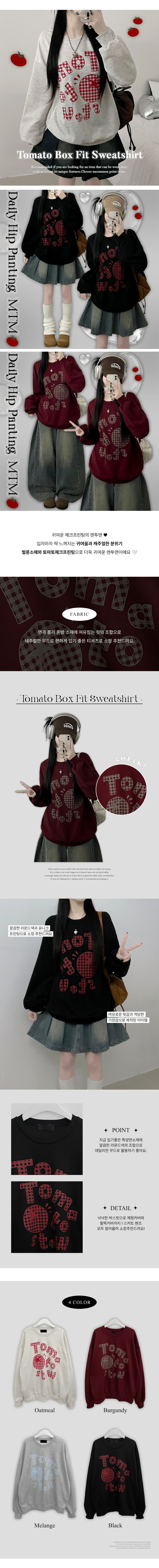 STS73254 기모버전스윗토마토체크레터링프린팅벌룬박스핏맨투맨