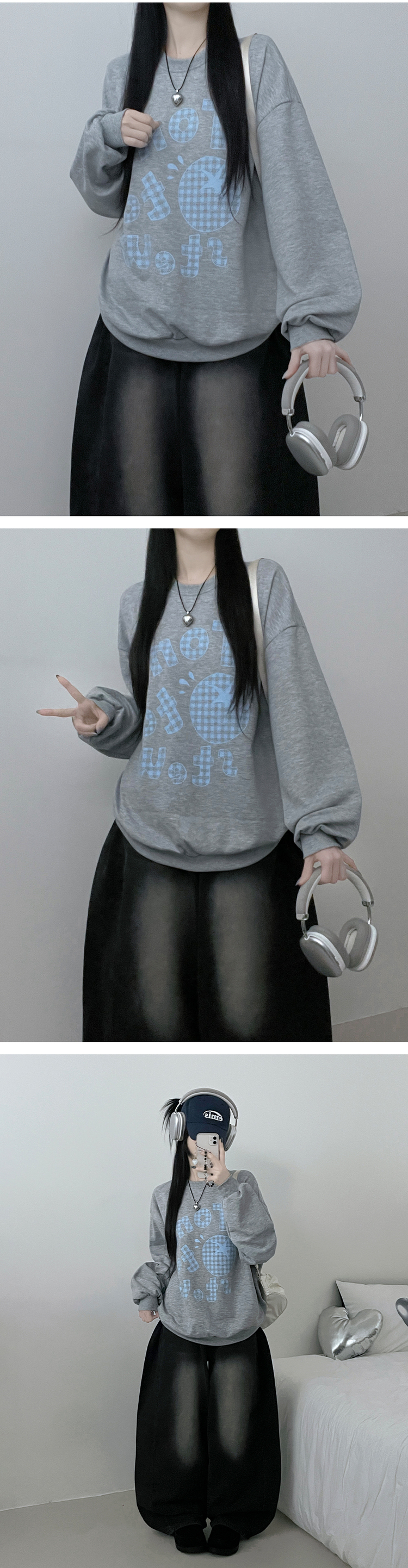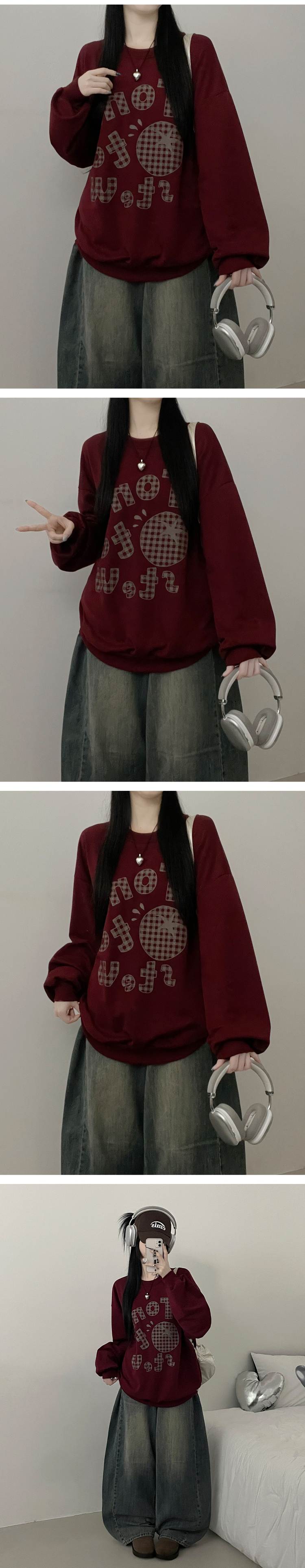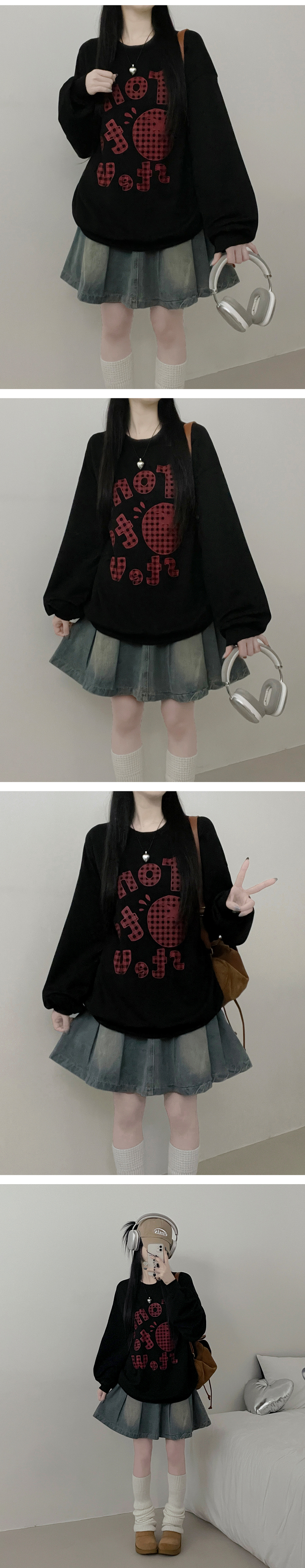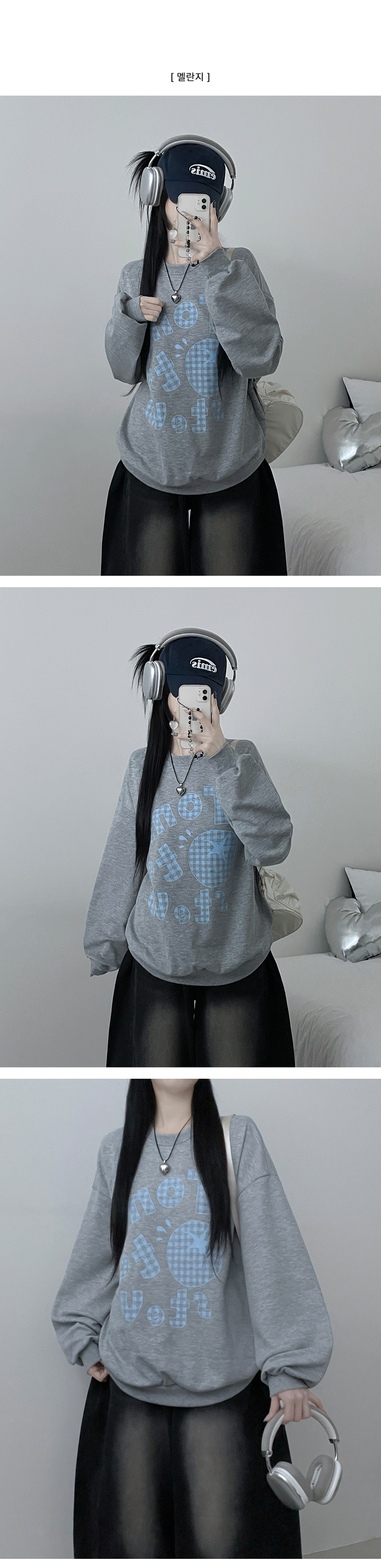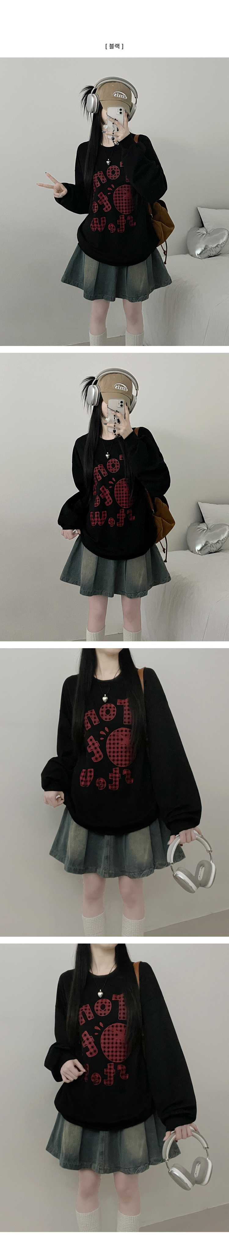 STS73254 기모버전스윗토마토체크레터링프린팅벌룬박스핏맨투맨
