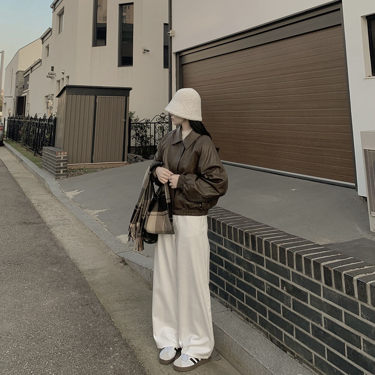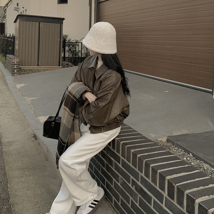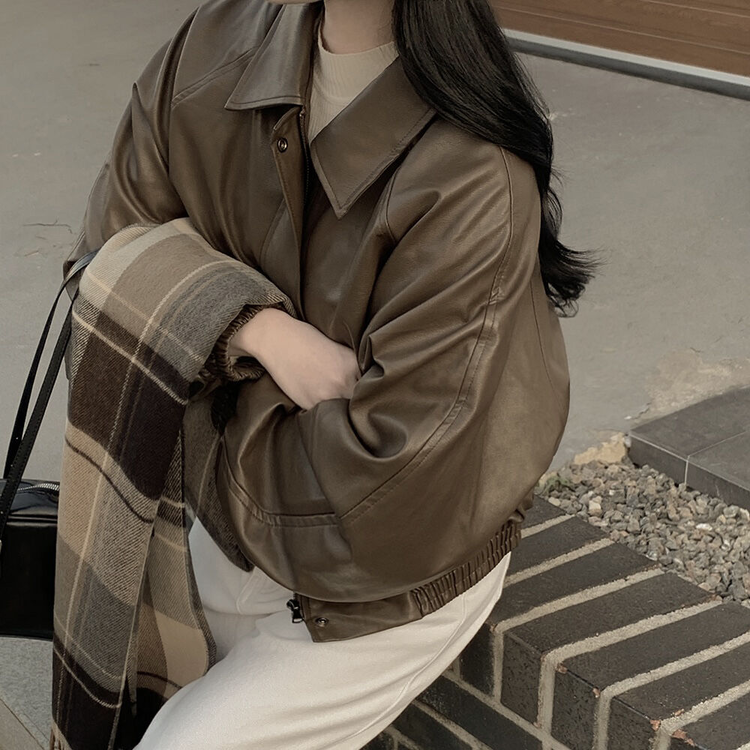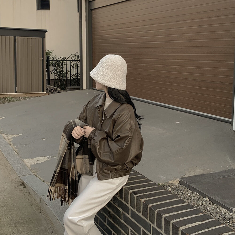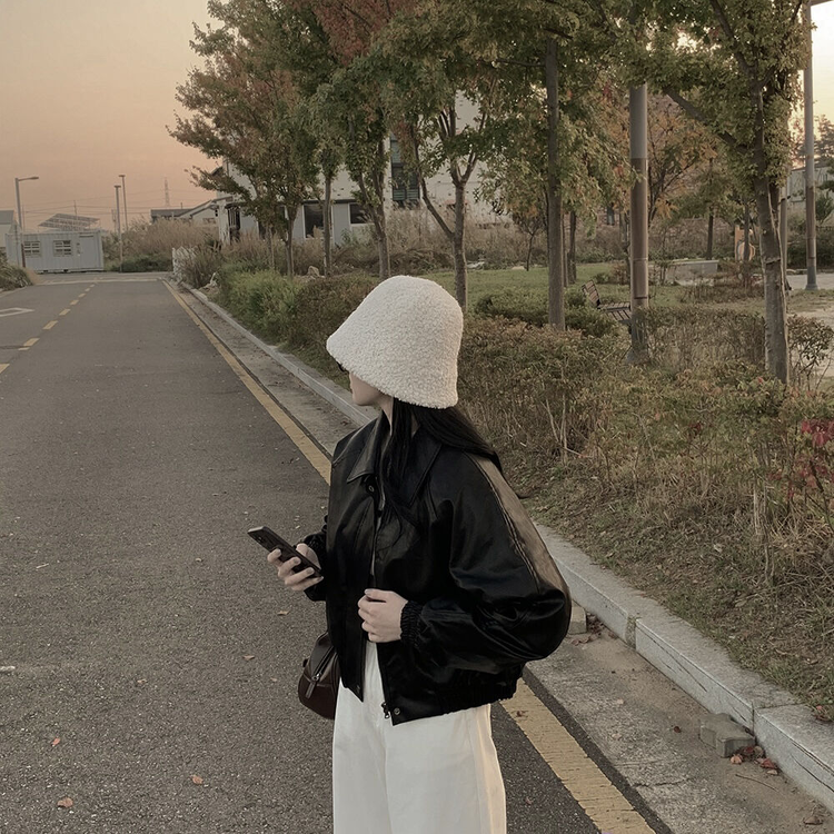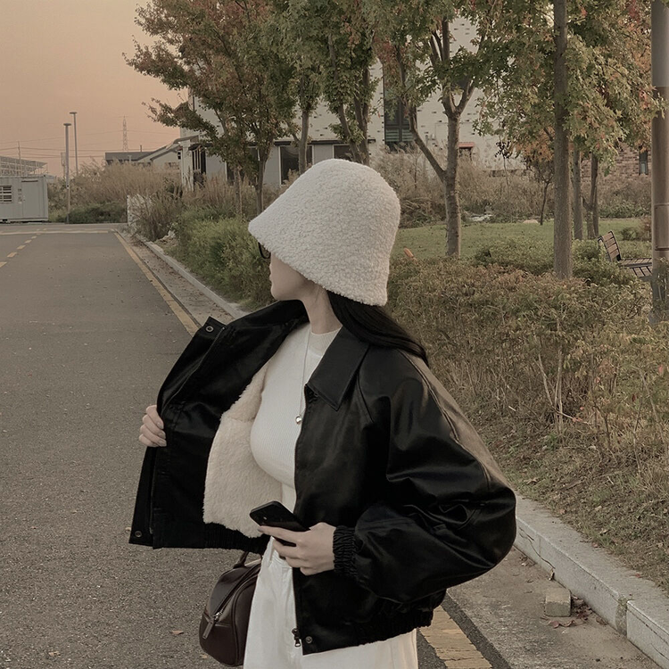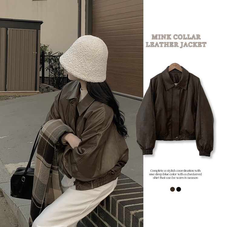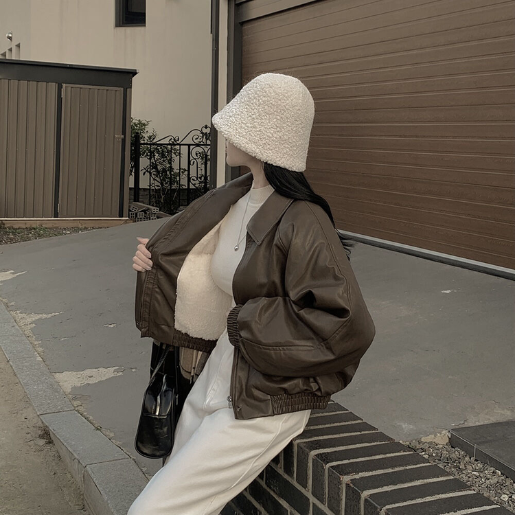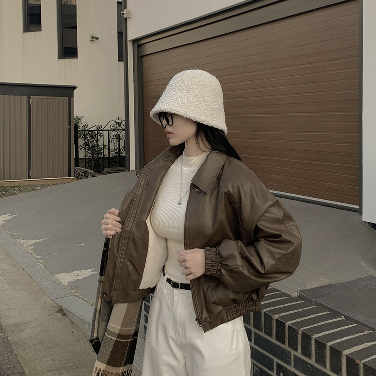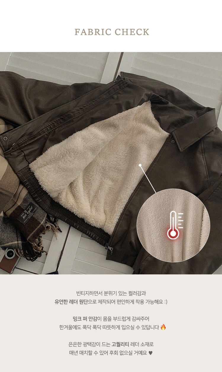 SJP18458 레더 아방핏 겨울 크롭자켓 양털 퍼안감 가죽점퍼