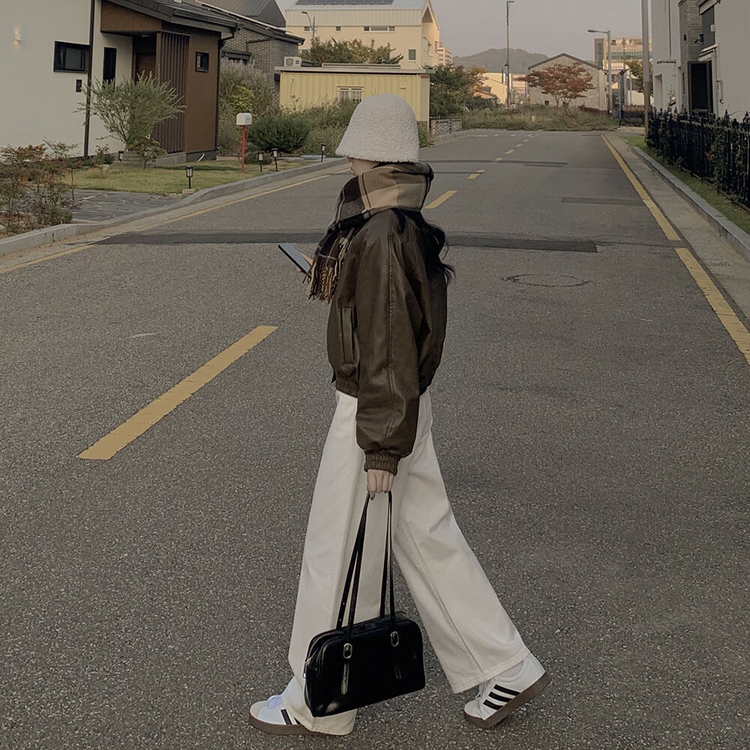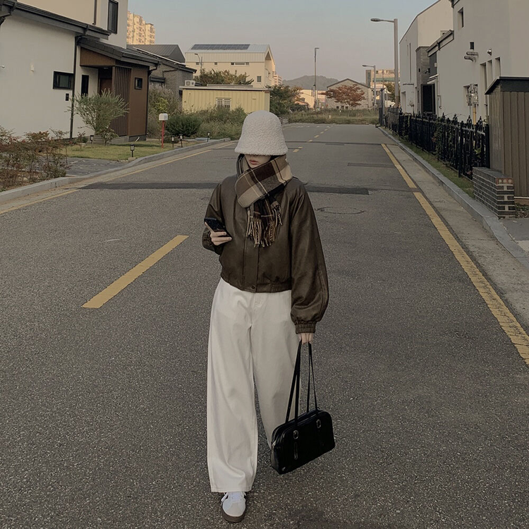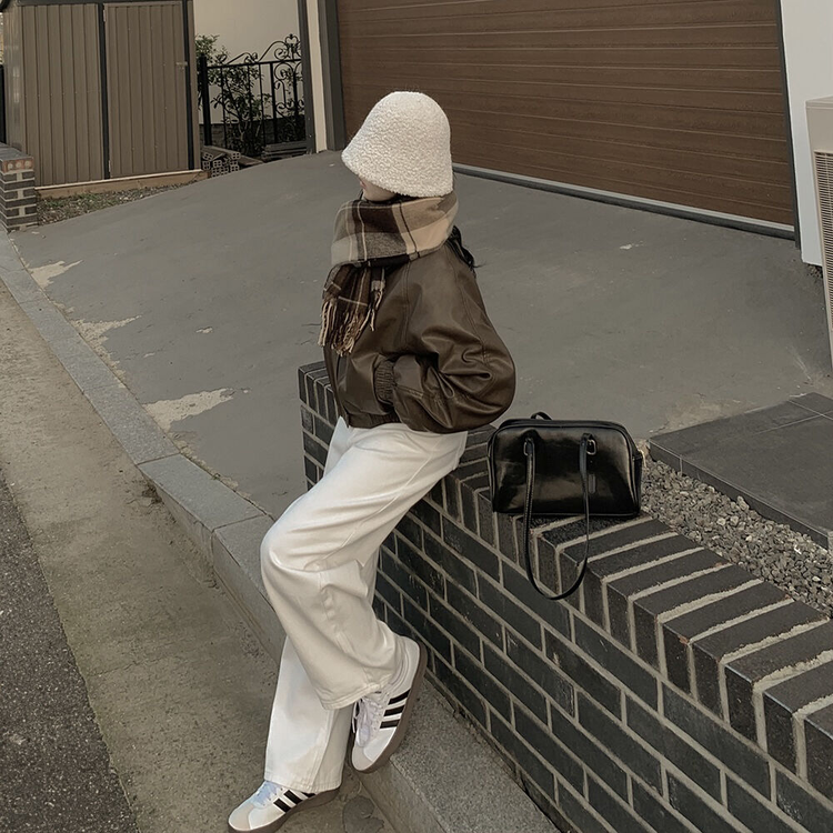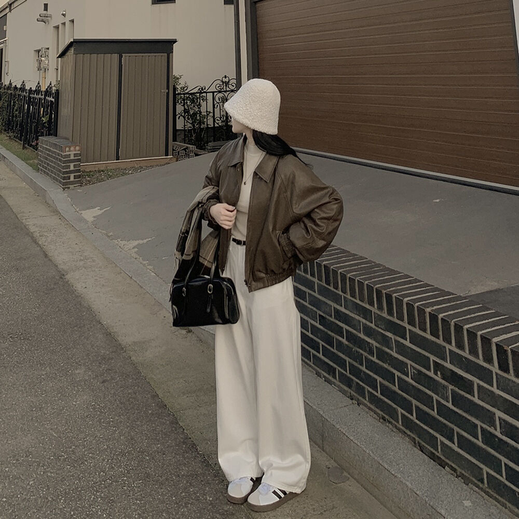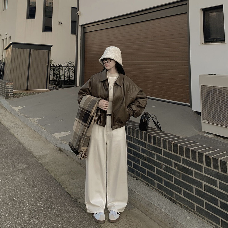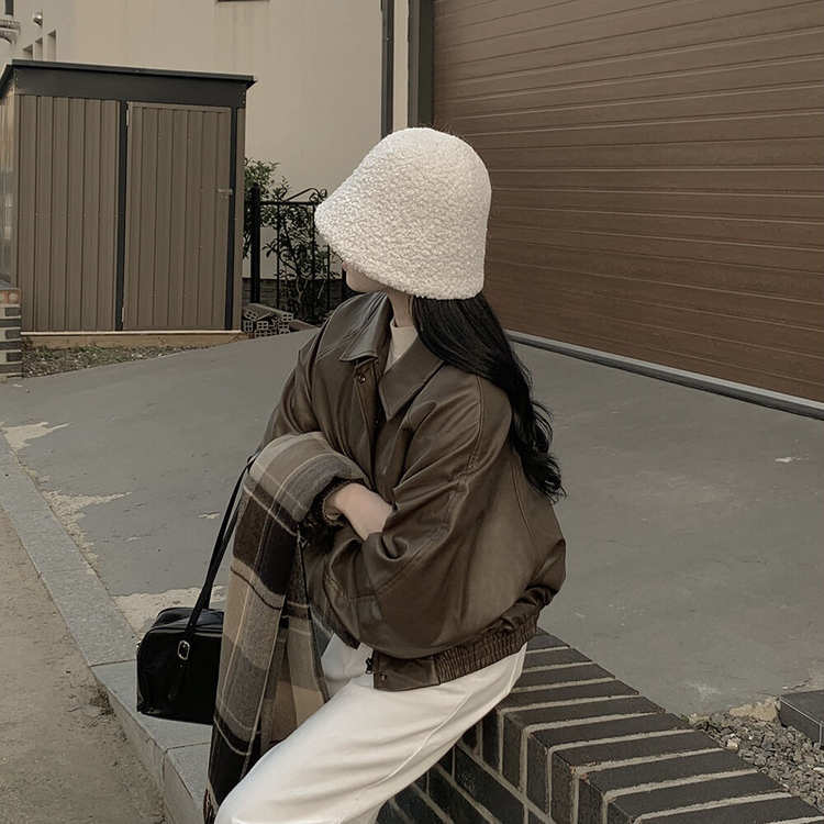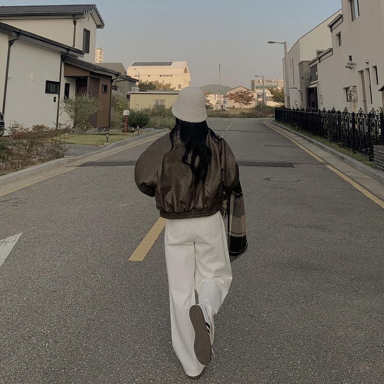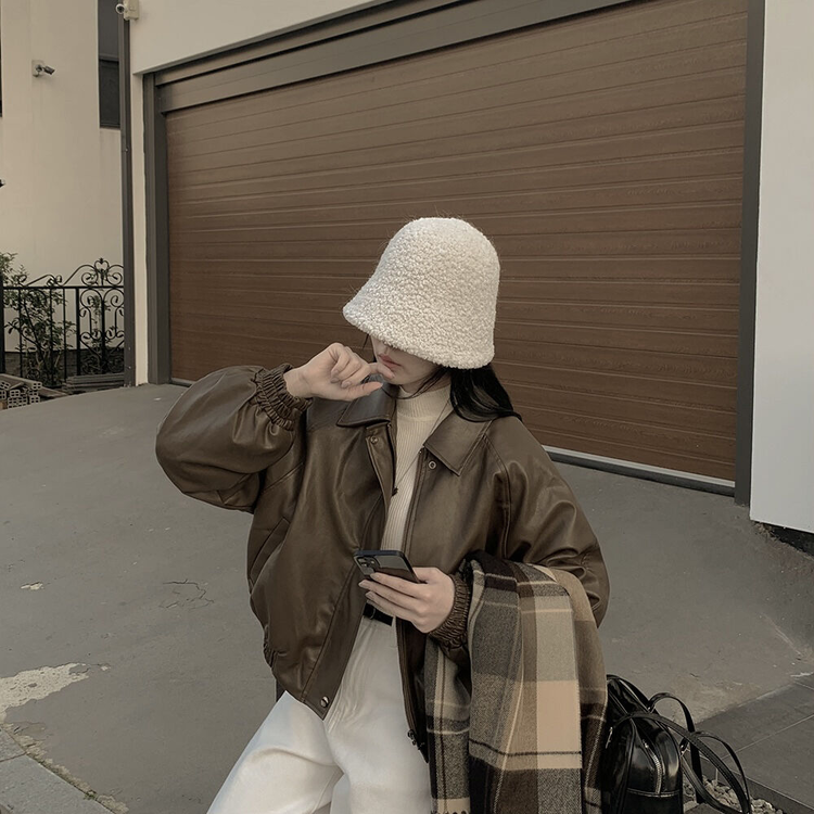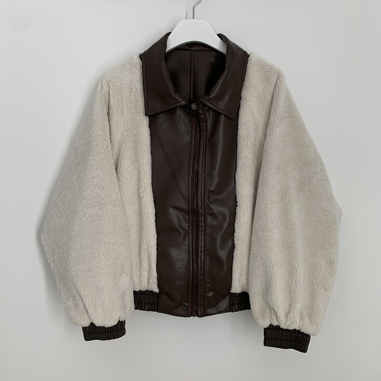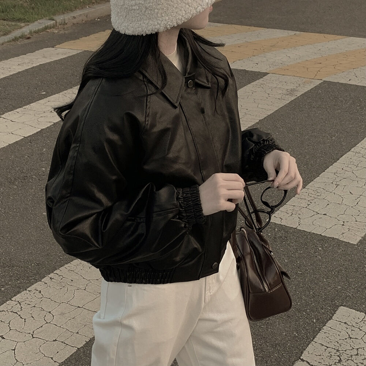 SJP18458 레더 아방핏 겨울 크롭자켓 양털 퍼안감 가죽점퍼